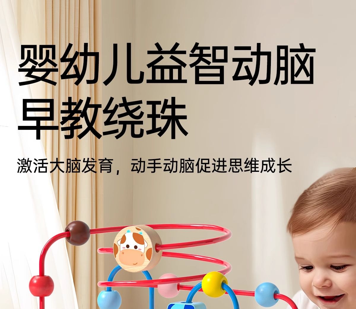 婴儿童绕珠积木串珠6个月宝宝玩具0一1岁到3益智力2蒙氏早教专注