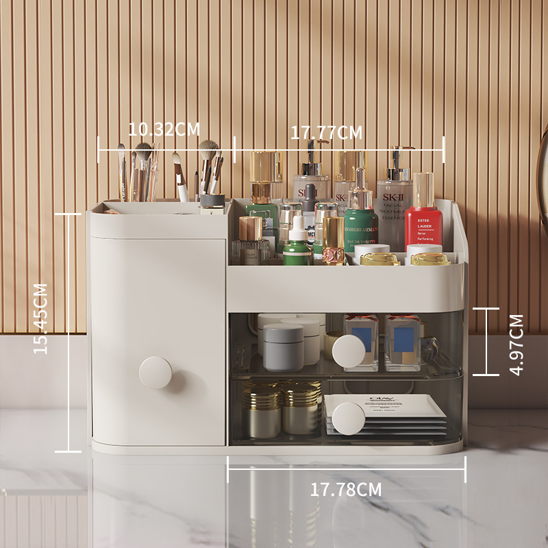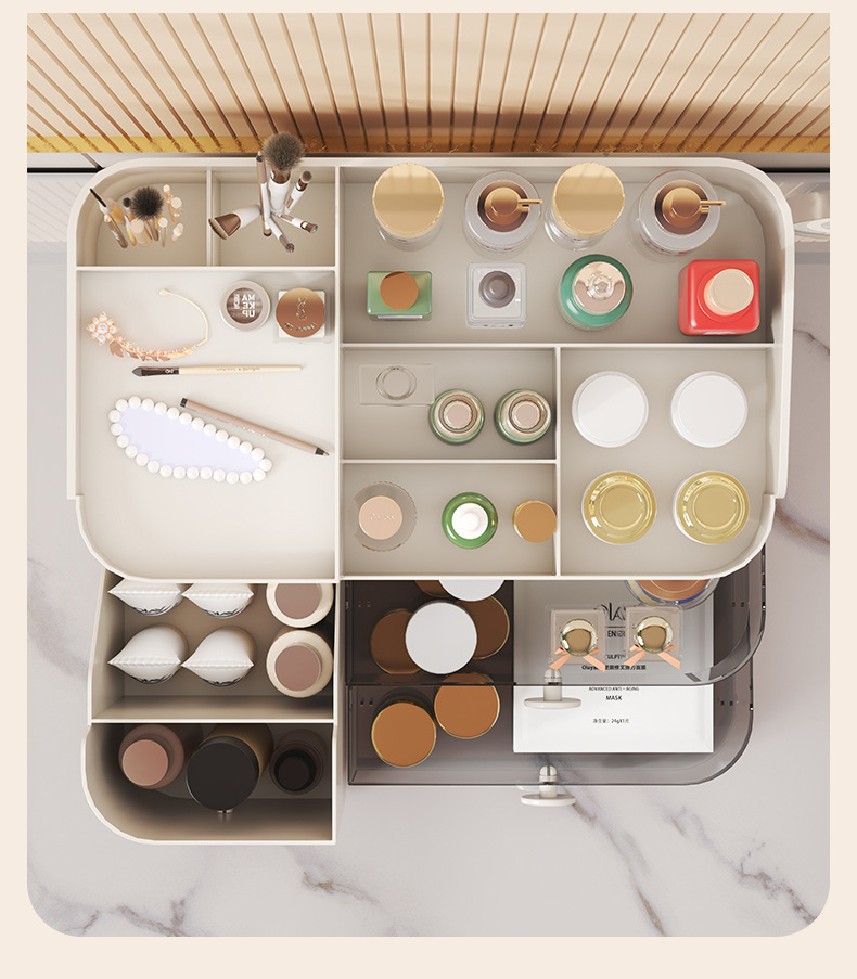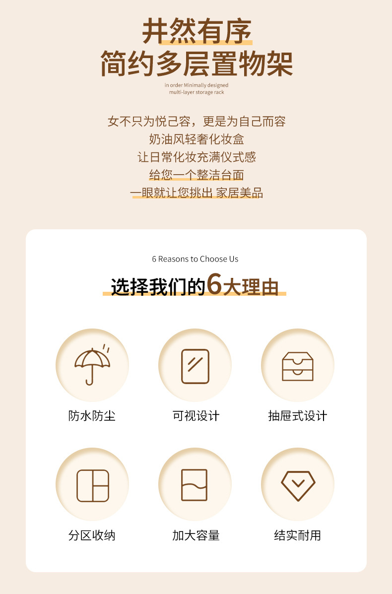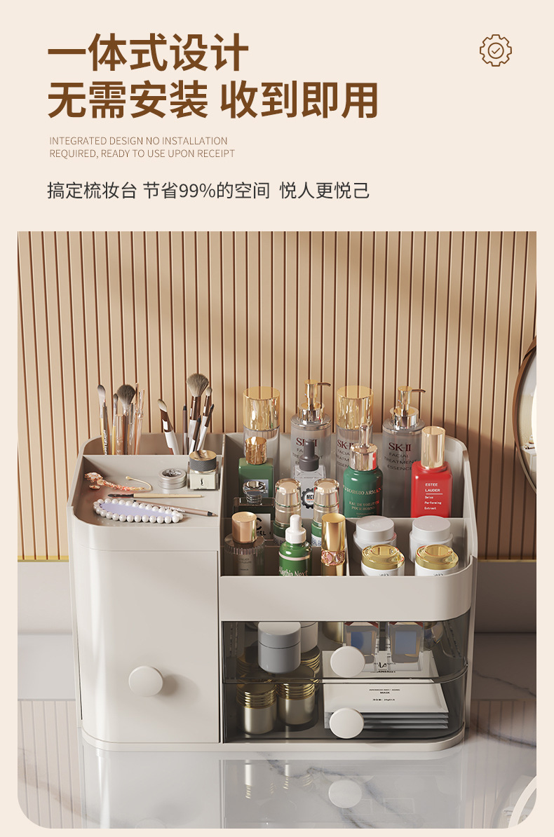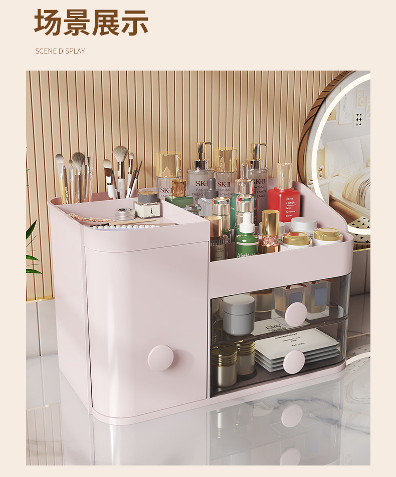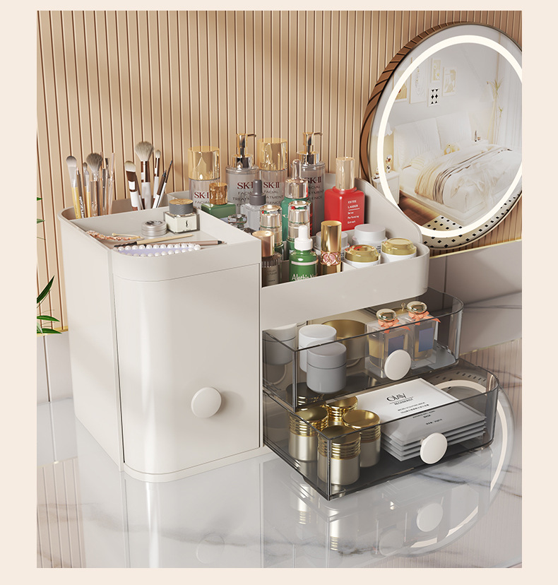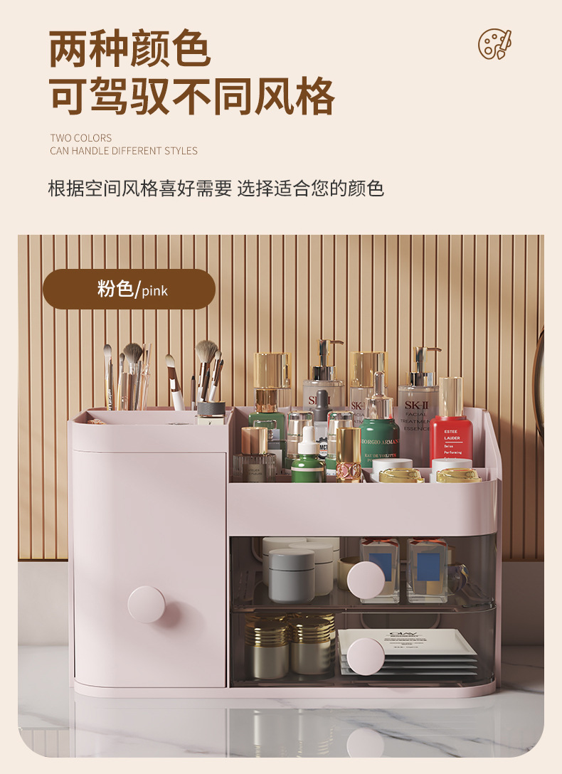 化妆品收纳盒桌面防尘护肤品大容量梳妆台抽屉式口红透明置物架