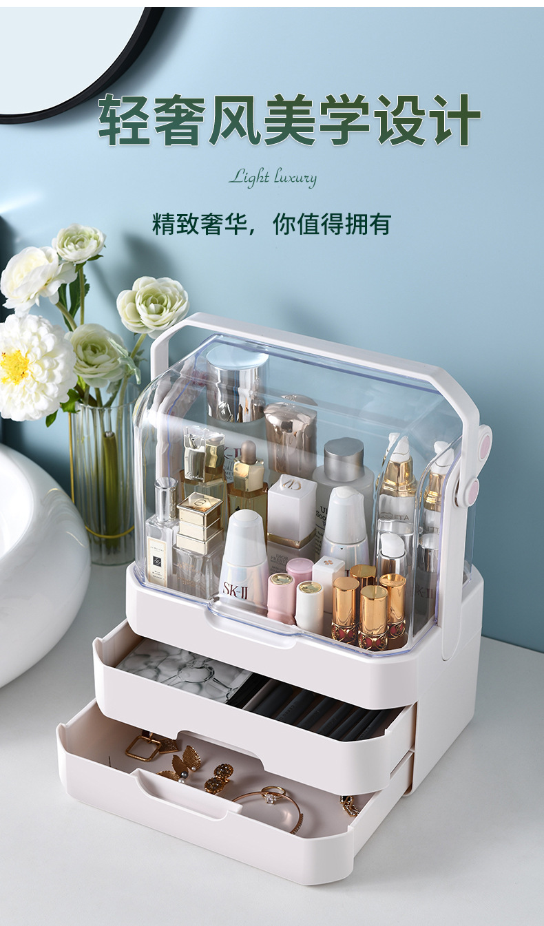 化妆收纳柜桌面防尘大容量收纳箱多层网红护肤品化妆盒梳妆台整理