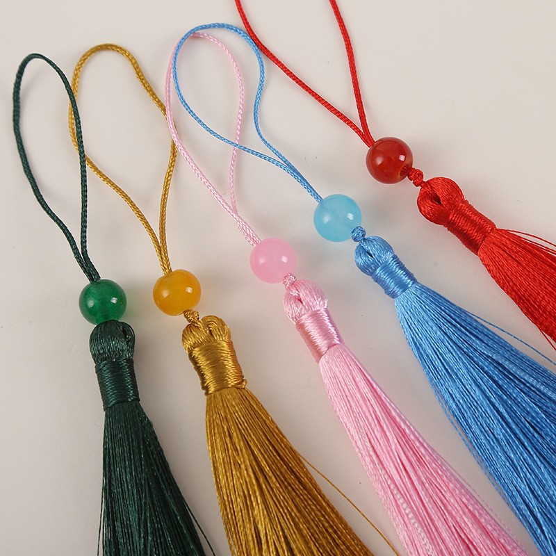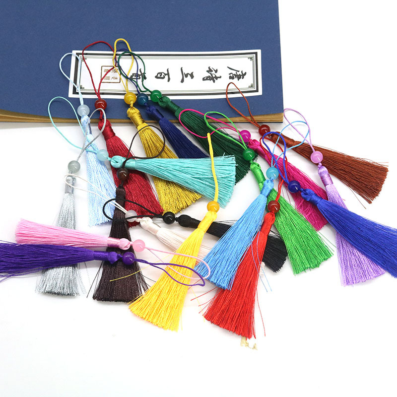 8cm彩色玉珠金色小流苏扇子书签穗子服饰配件饰品装饰流苏批发