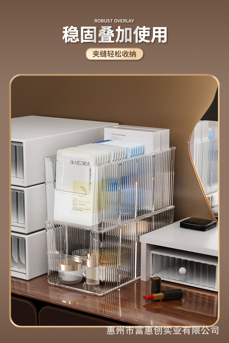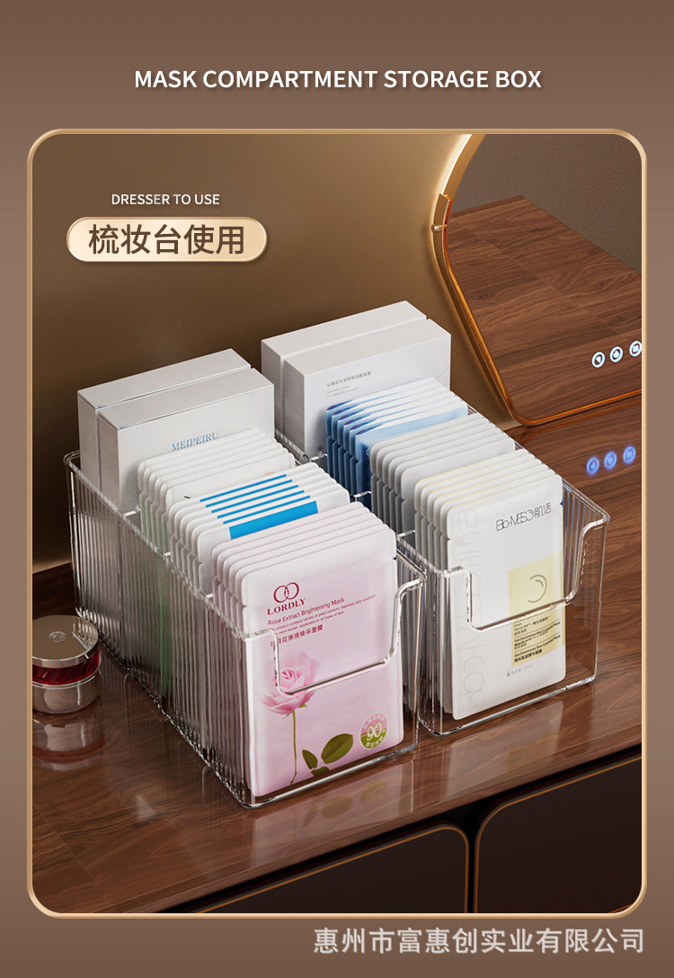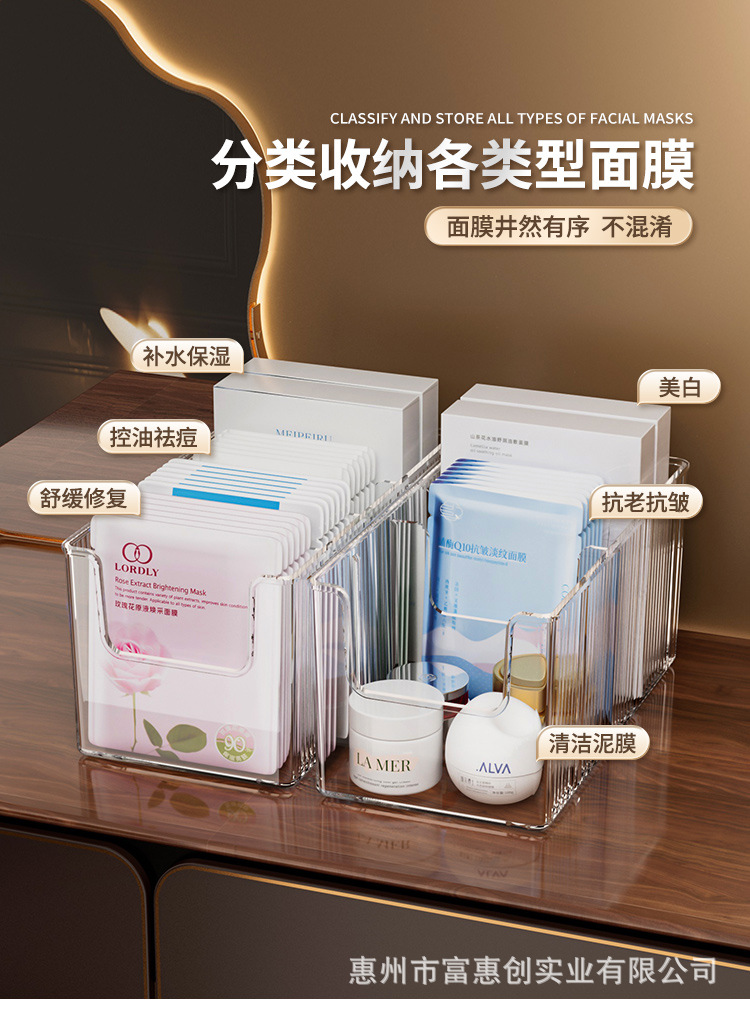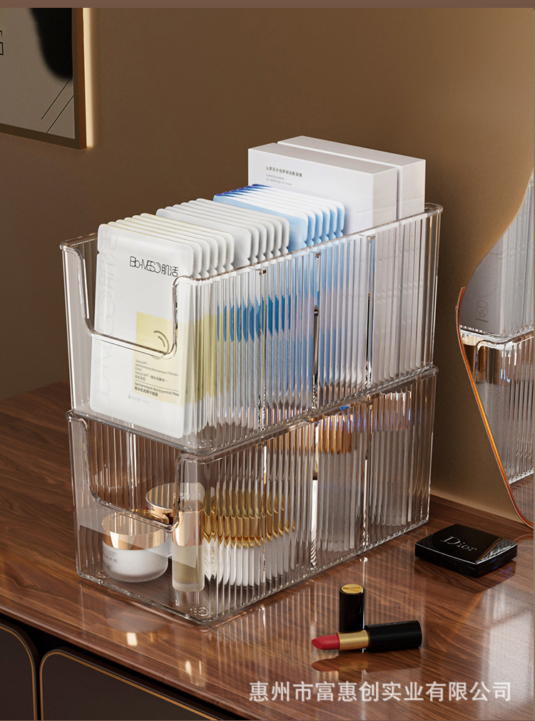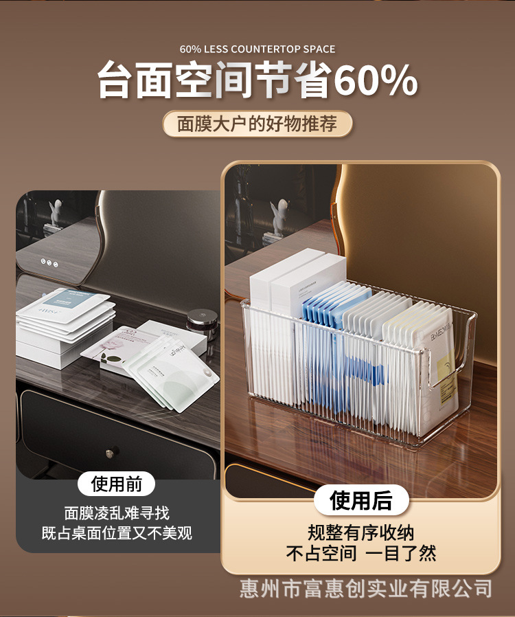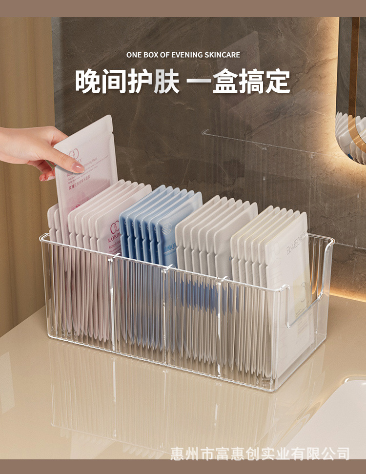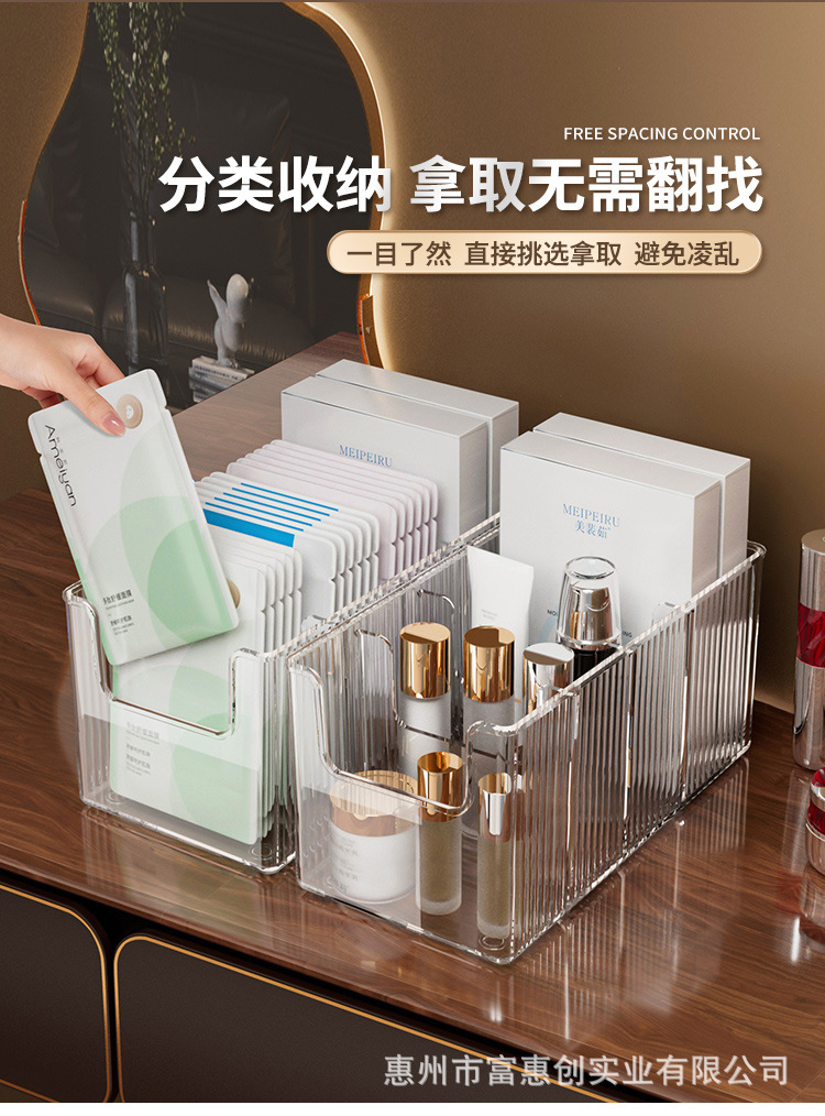 面膜收纳盒亚克力梳妆台透明分格盒桌面化妆品大容量护肤品置物架