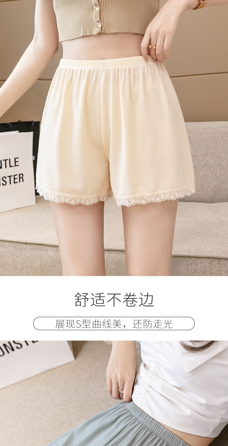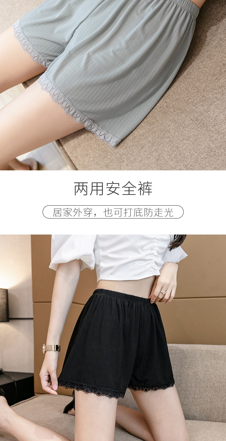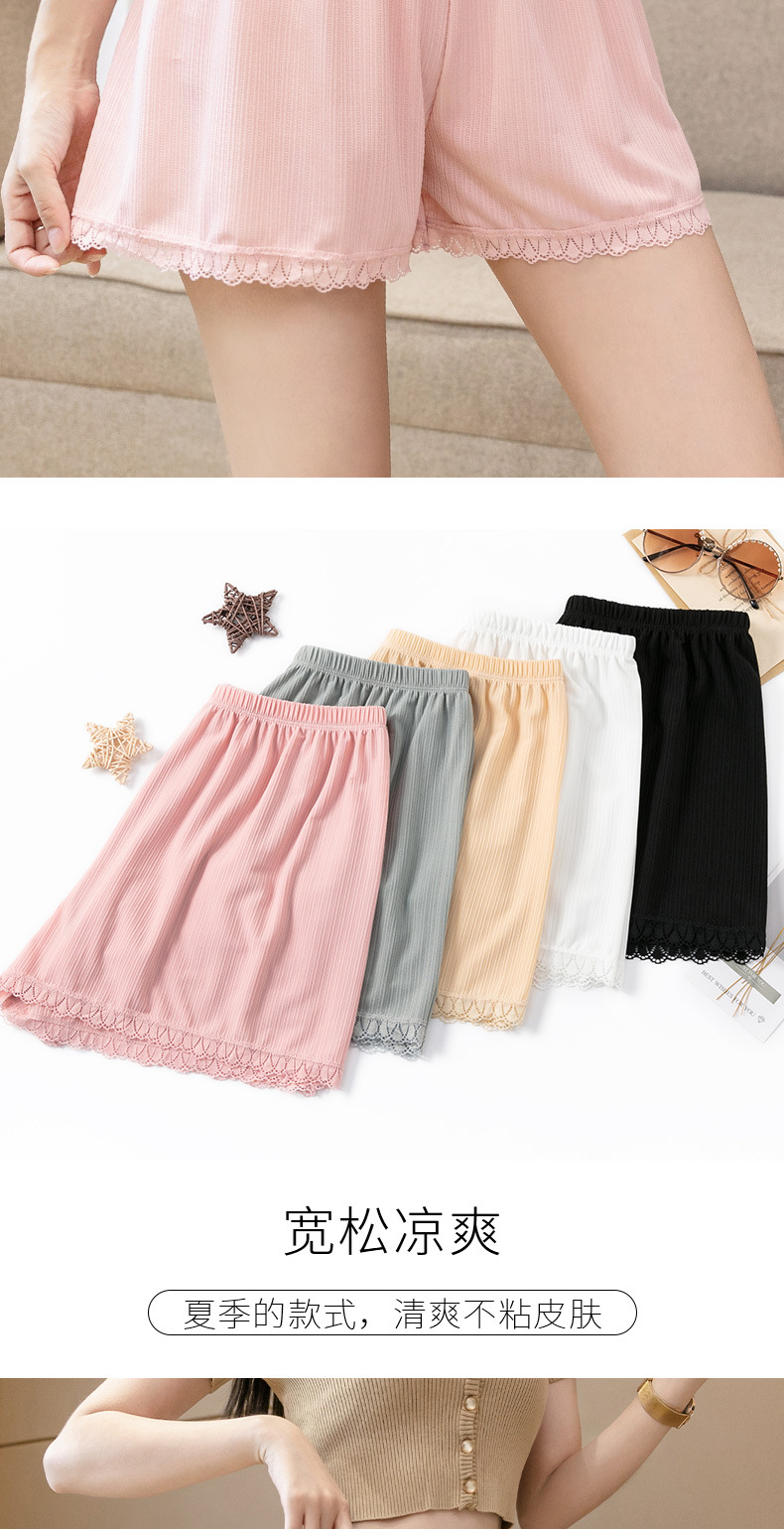 宽松冰丝安全裤女大码防走光可外穿薄款打底短裤蕾丝高腰保险裤女