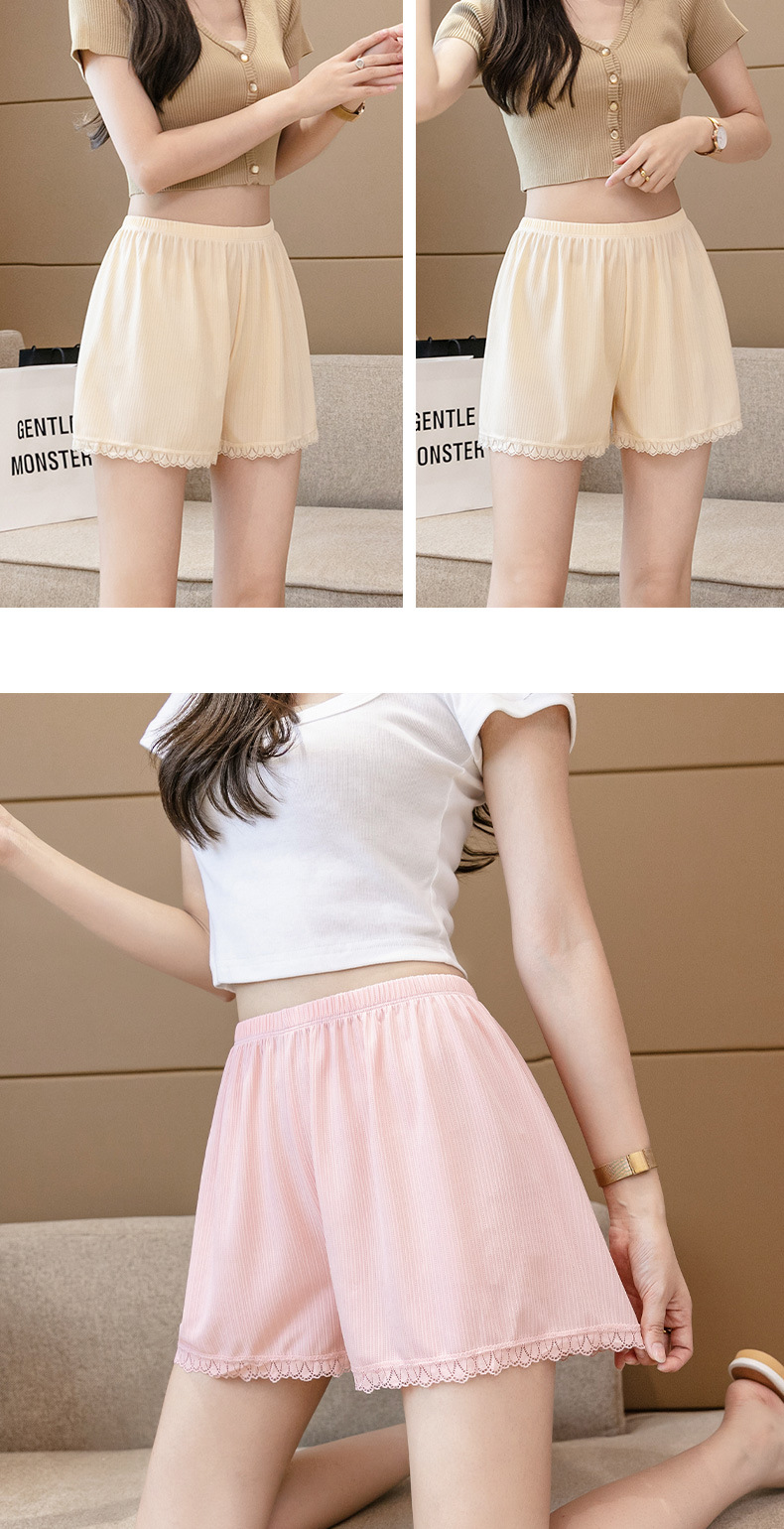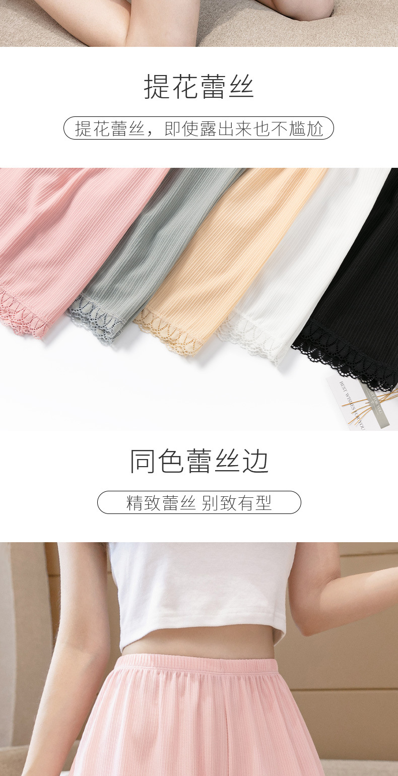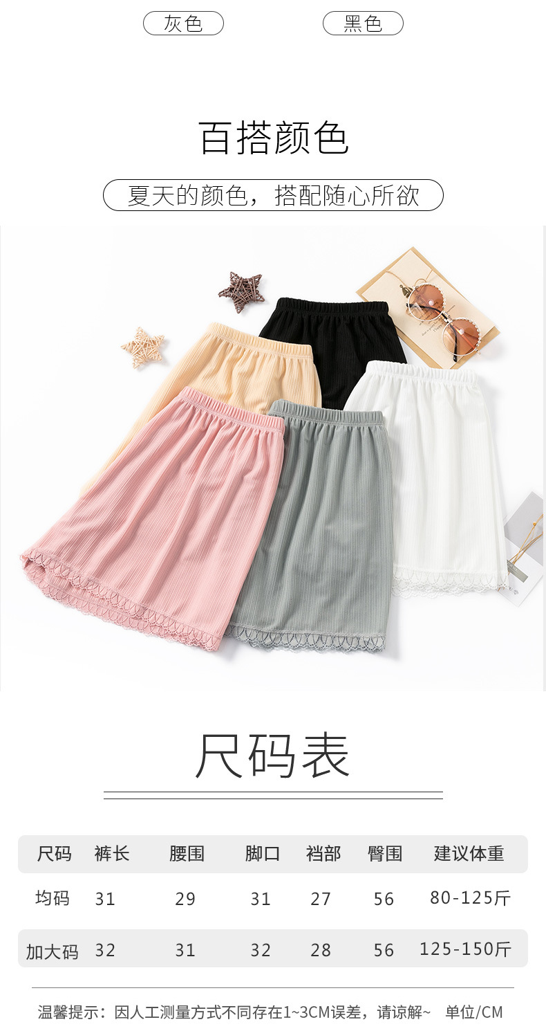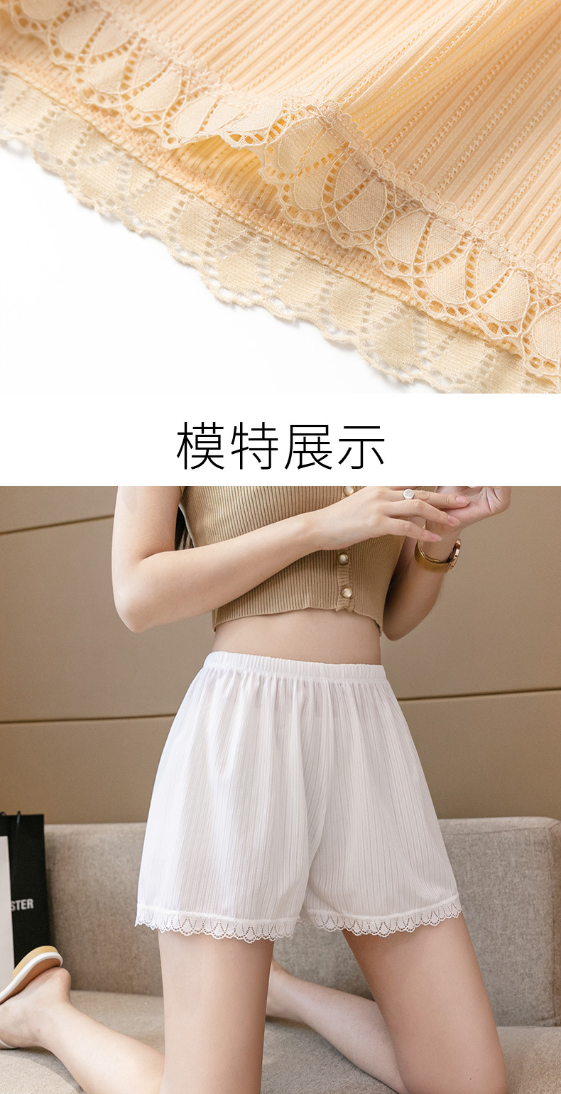 宽松冰丝安全裤女大码防走光可外穿薄款打底短裤蕾丝高腰保险裤女