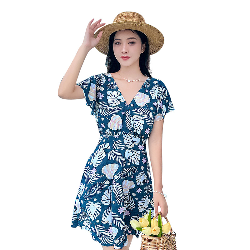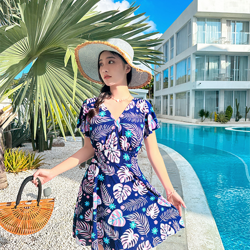 2023新款泳衣女连体裙式大码保守遮肚显瘦韩国ins风温泉泳衣批发