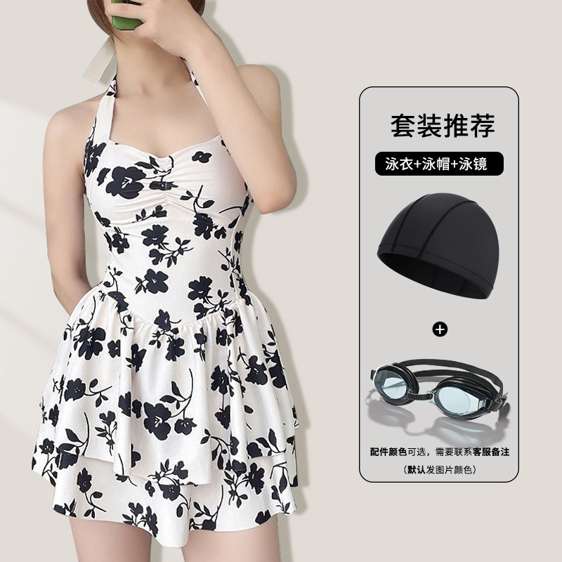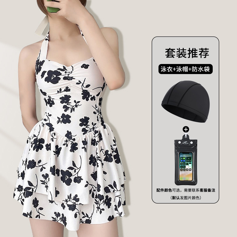 泳衣女连体爆款虞美人保守性感显瘦遮肚泡温泉游泳衣裙式泳装批发
