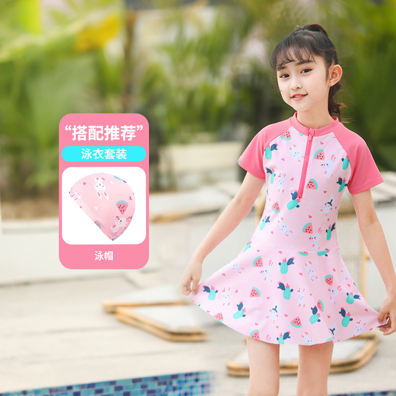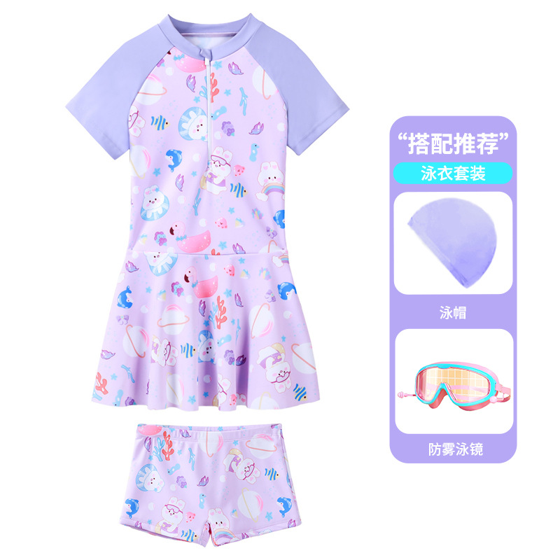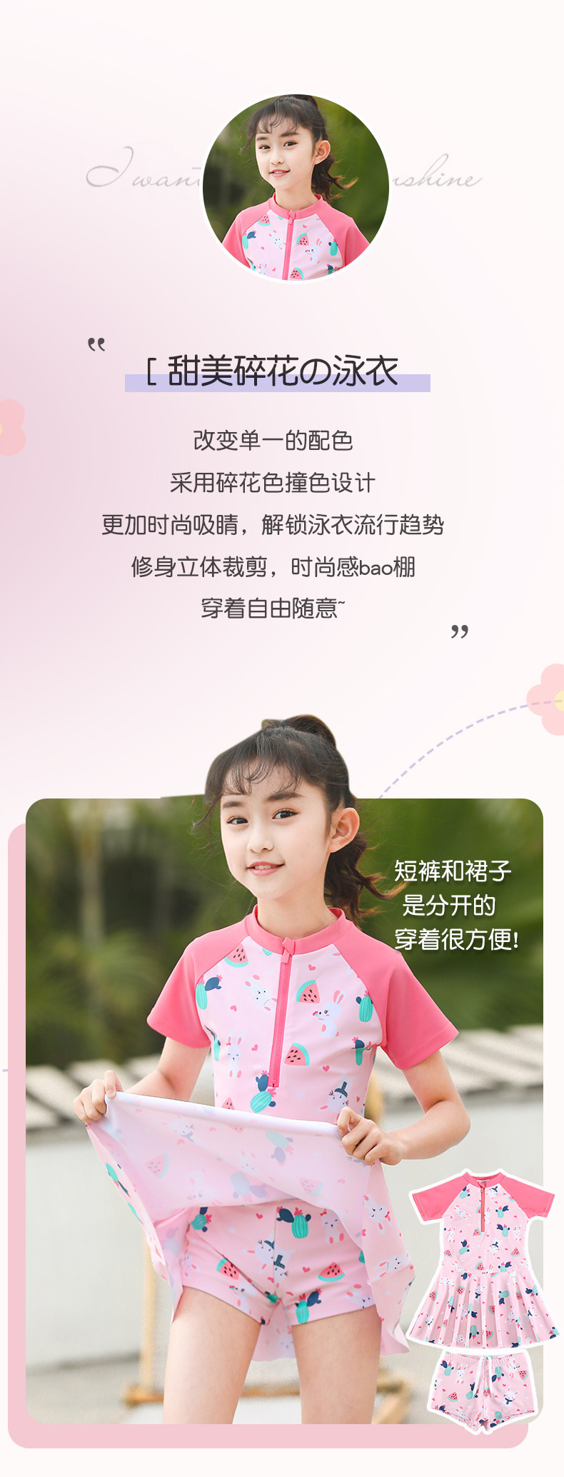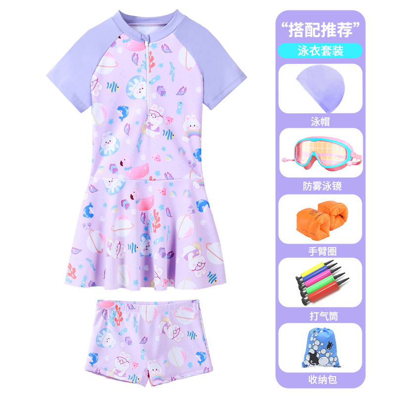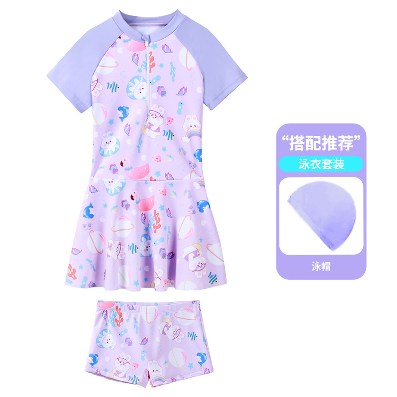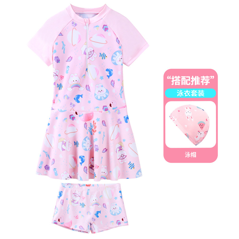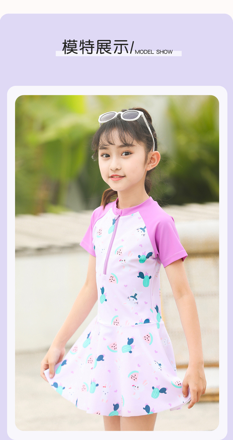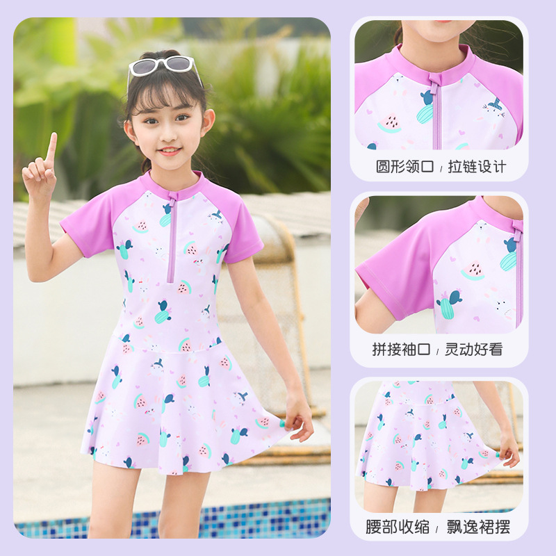 儿童泳衣女孩洋气中大童连衣裙分体平角裤泳装女童训练专用游泳衣