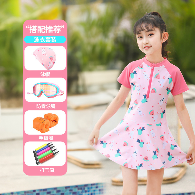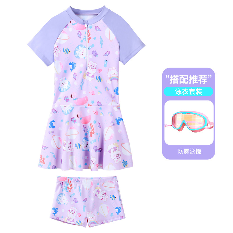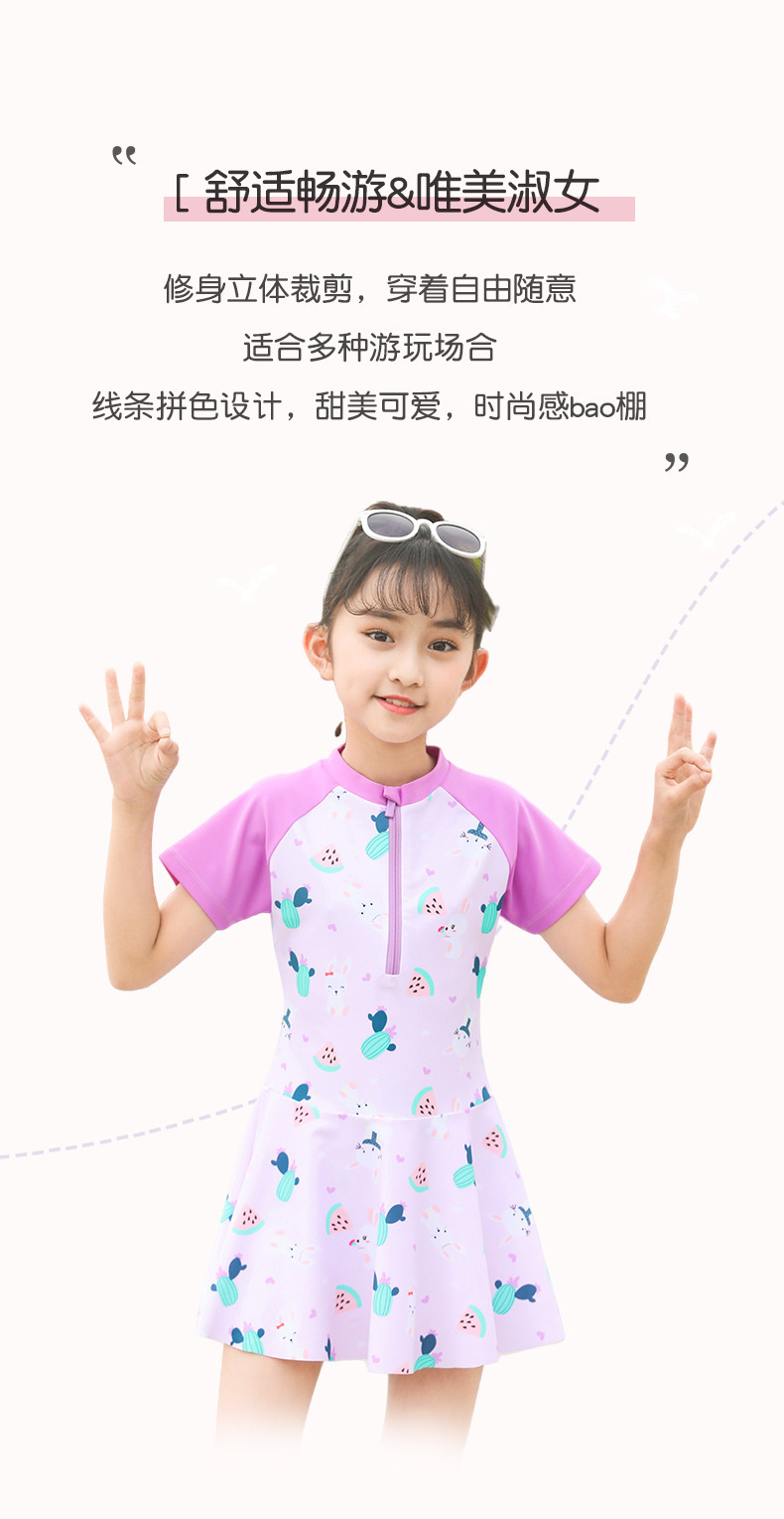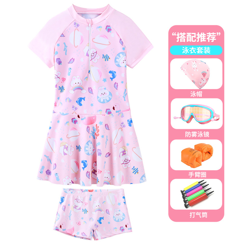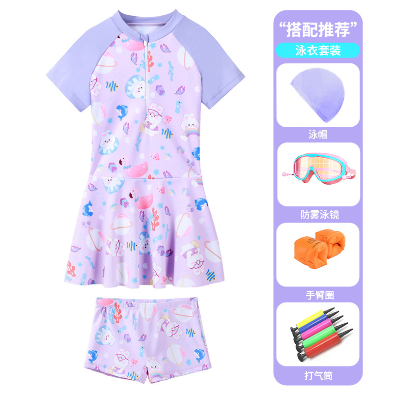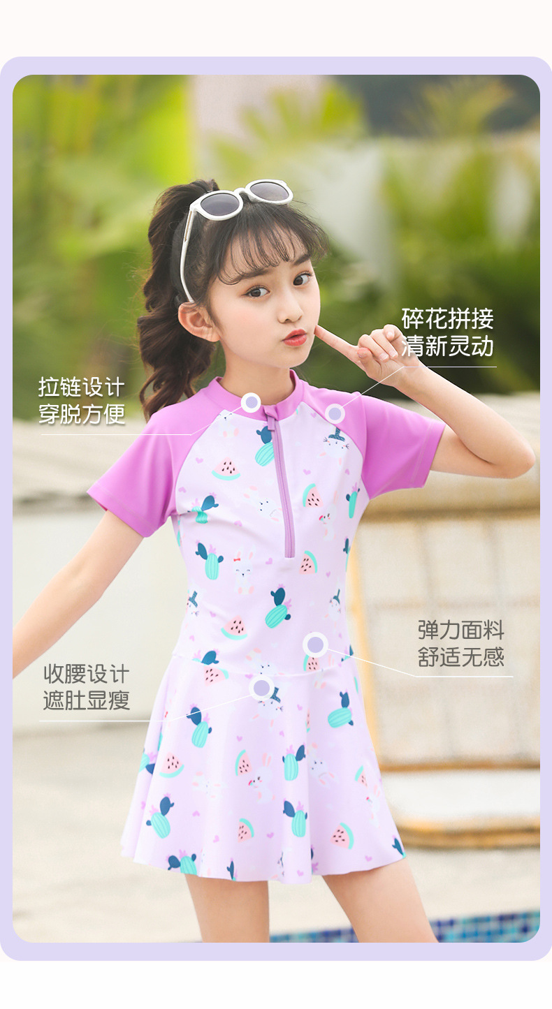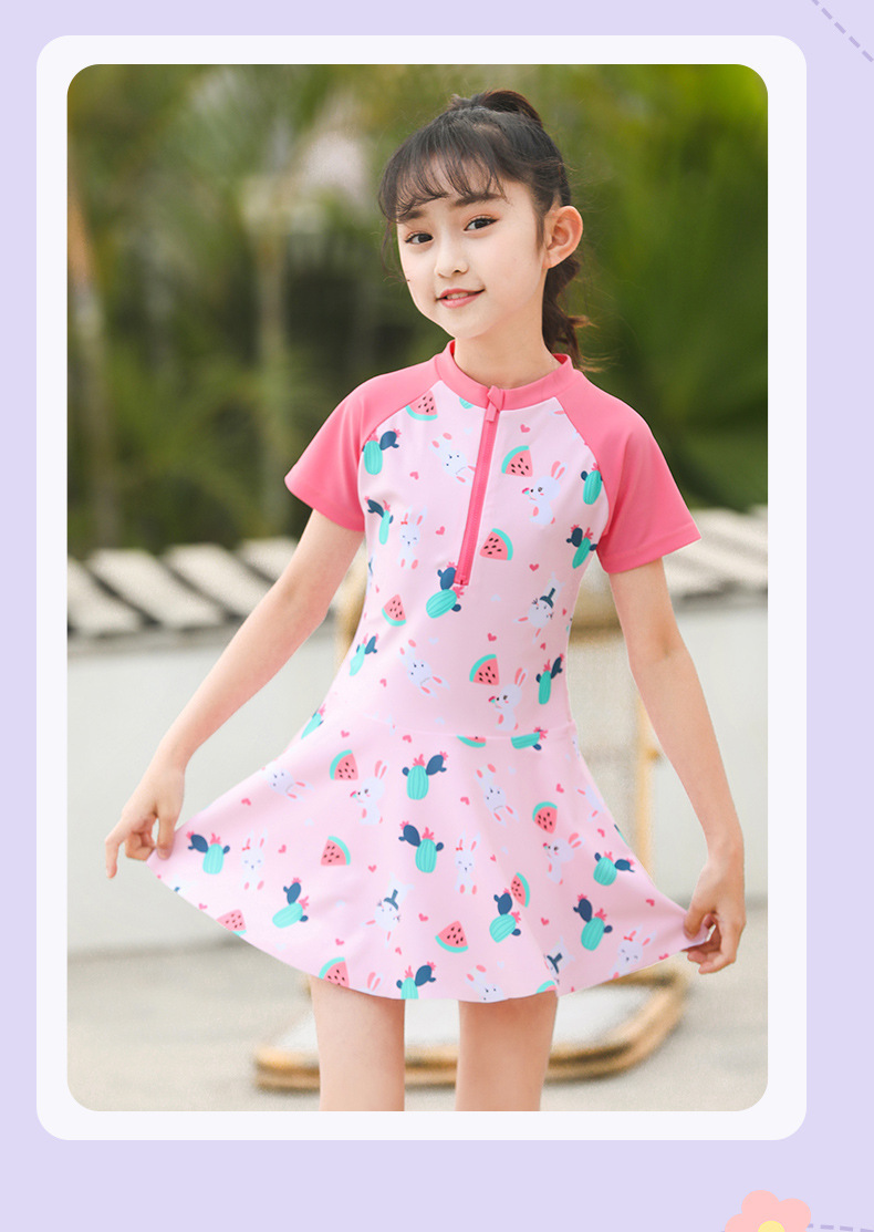 儿童泳衣女孩洋气中大童连衣裙分体平角裤泳装女童训练专用游泳衣