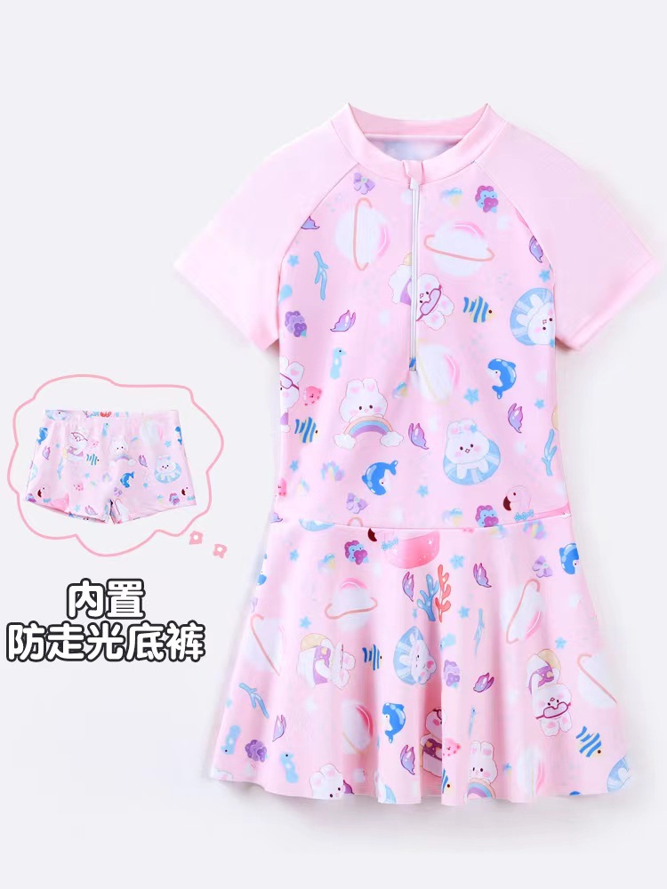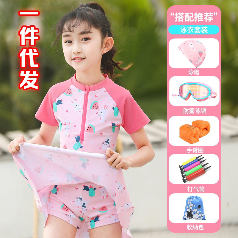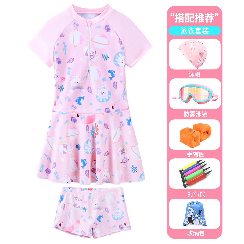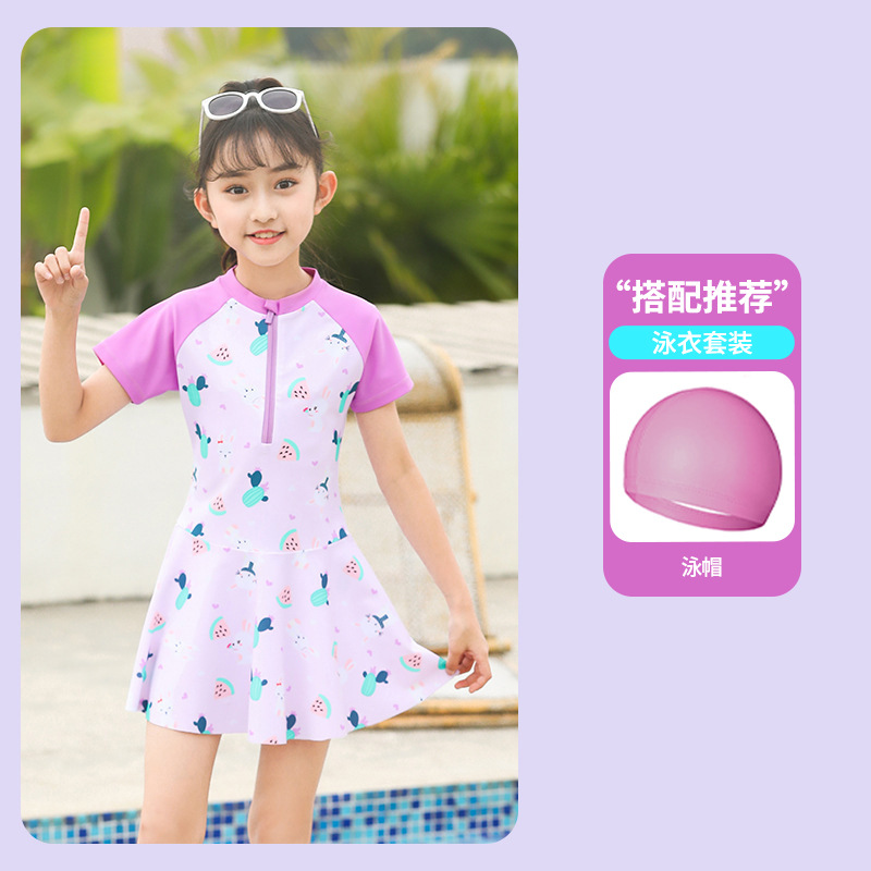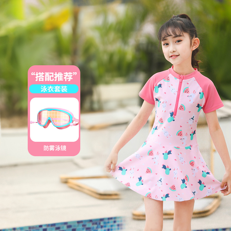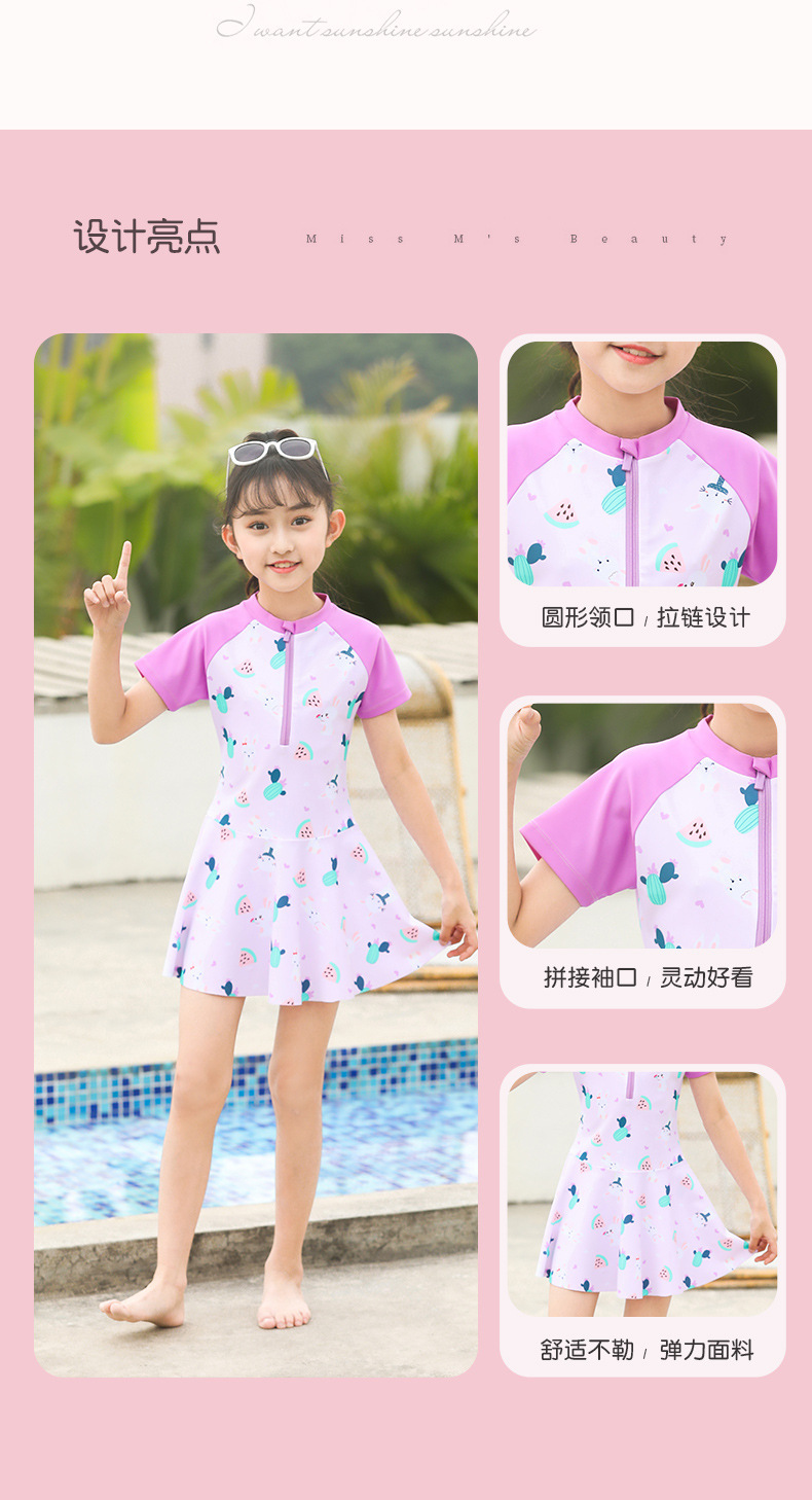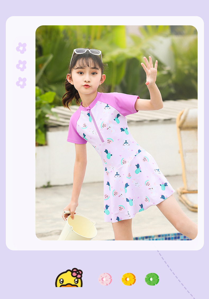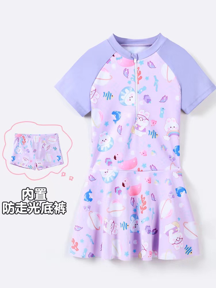 儿童泳衣女孩洋气中大童连衣裙分体平角裤泳装女童训练专用游泳衣