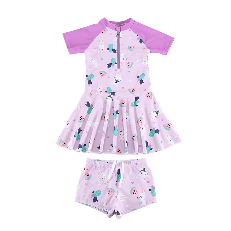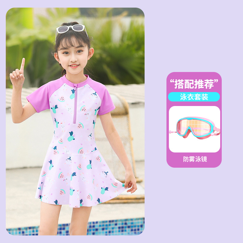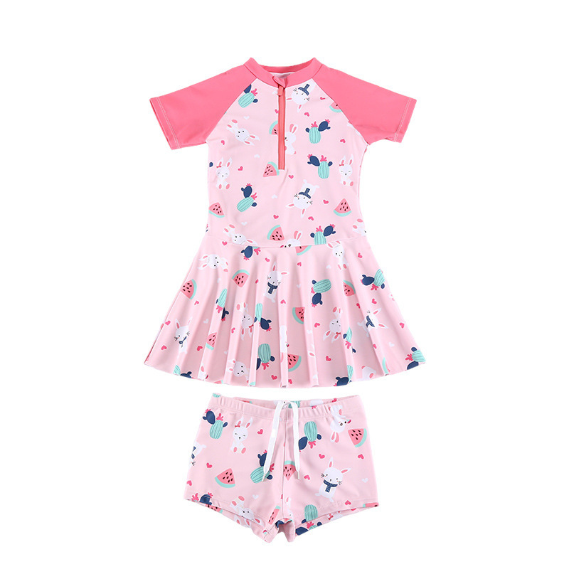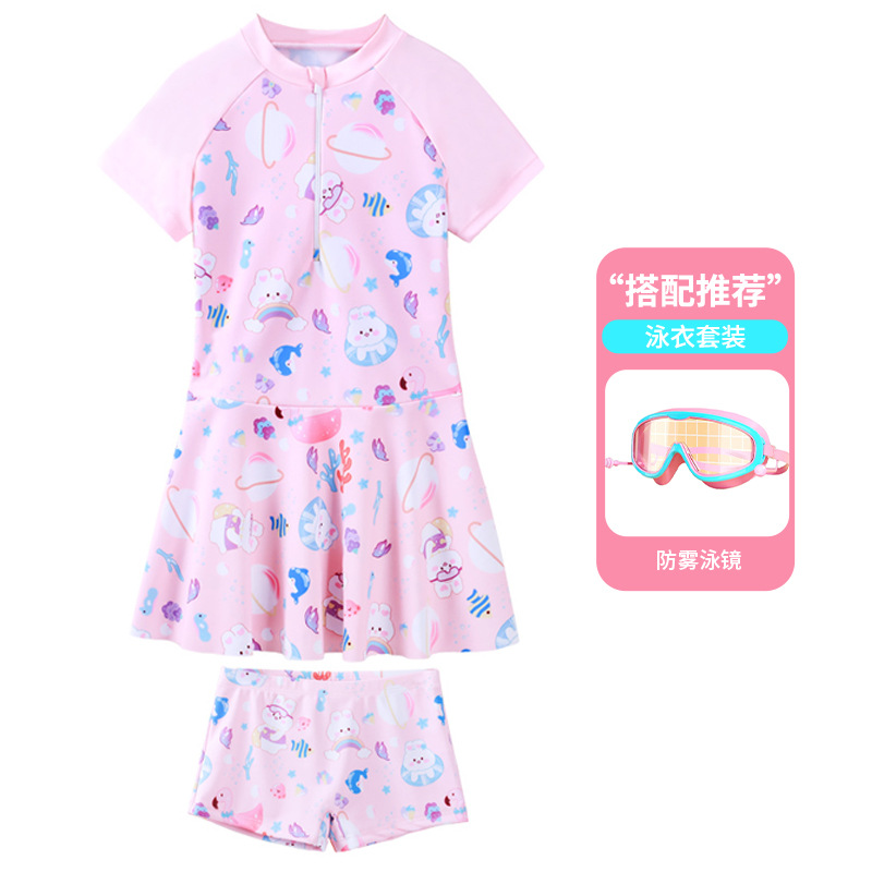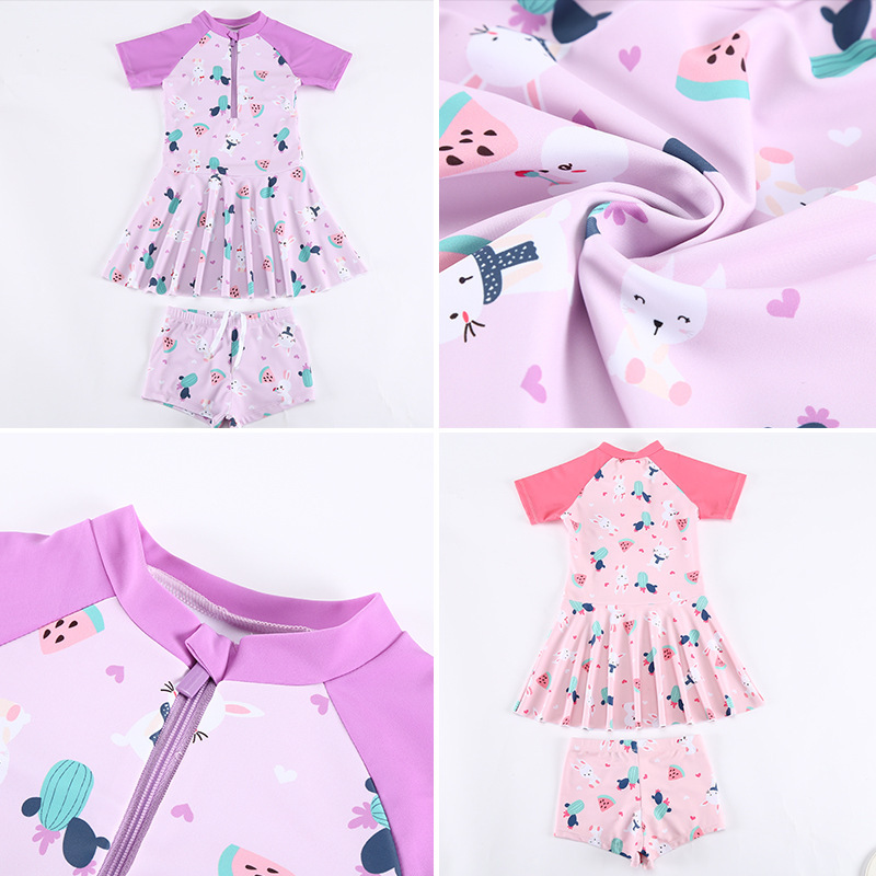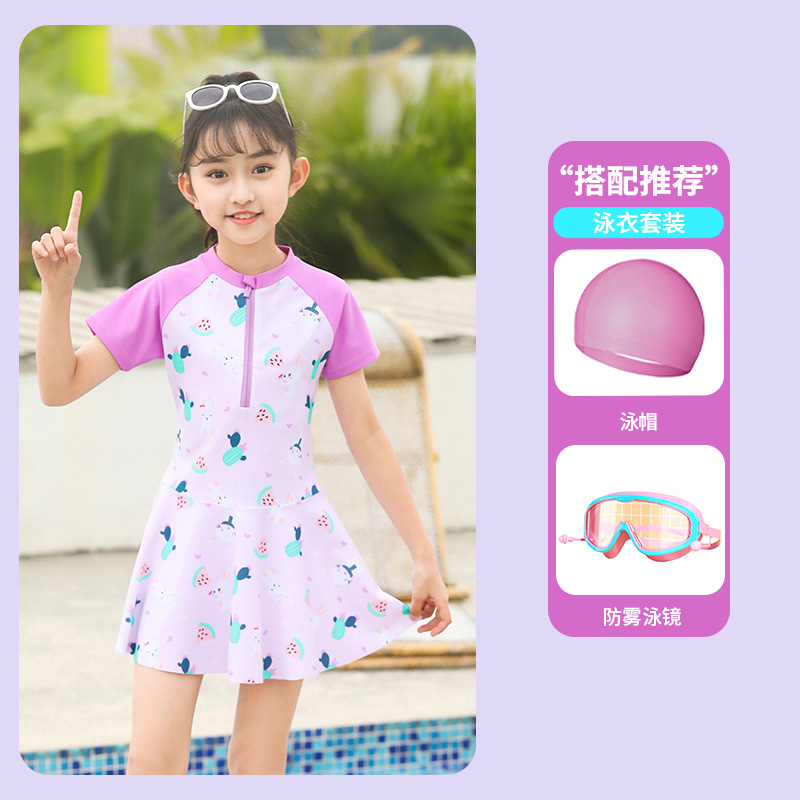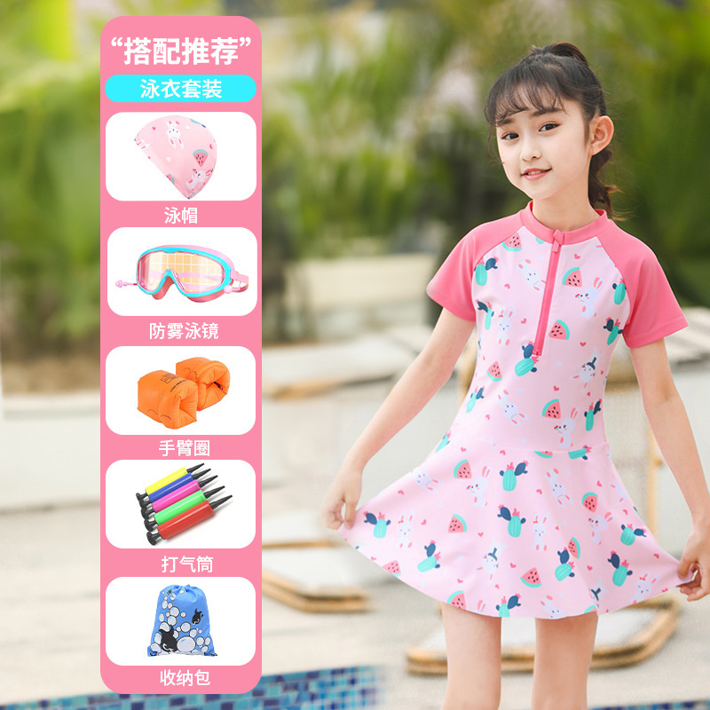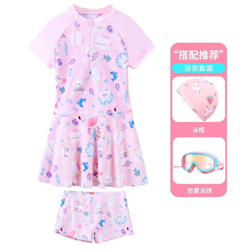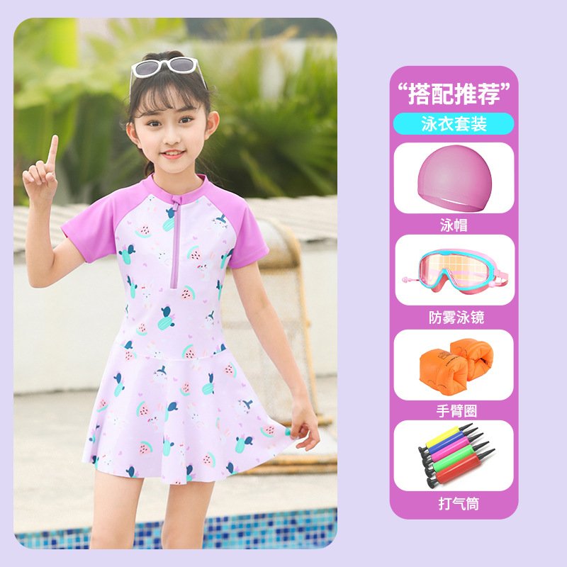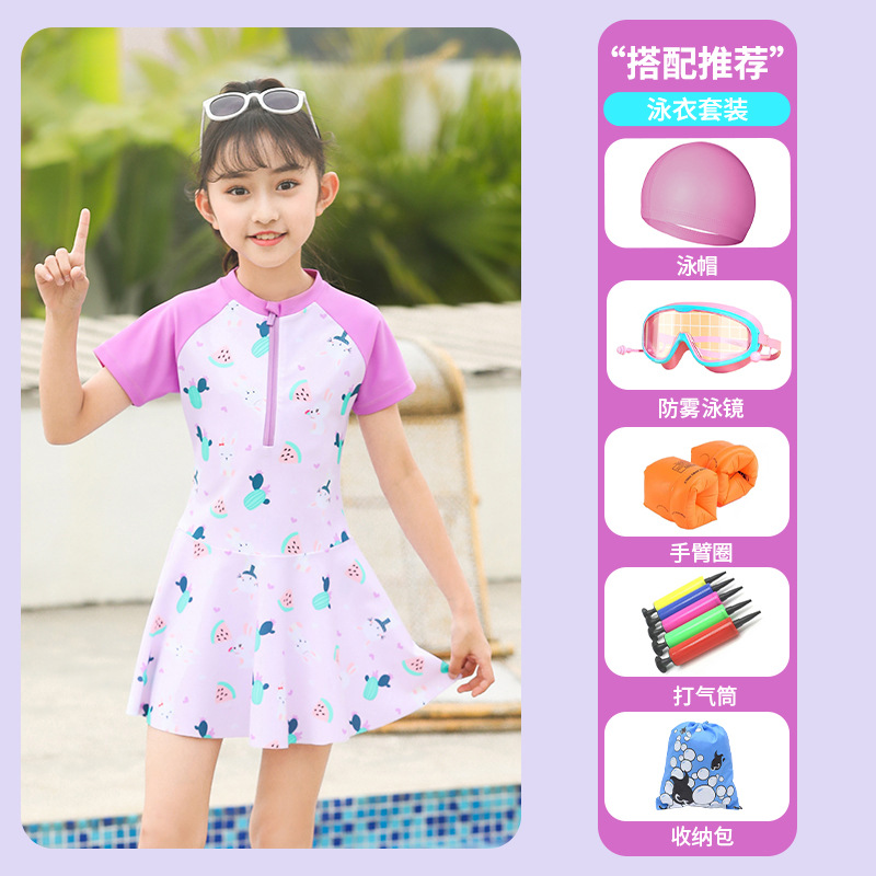 儿童泳衣女孩洋气中大童连衣裙分体平角裤泳装女童训练专用游泳衣