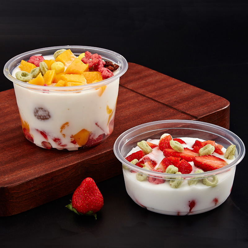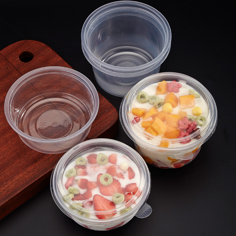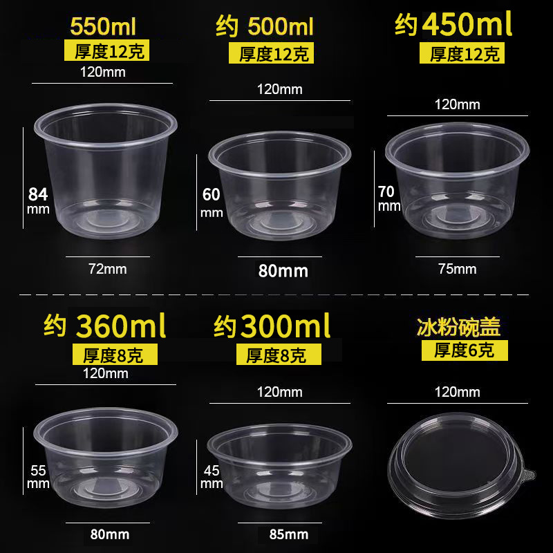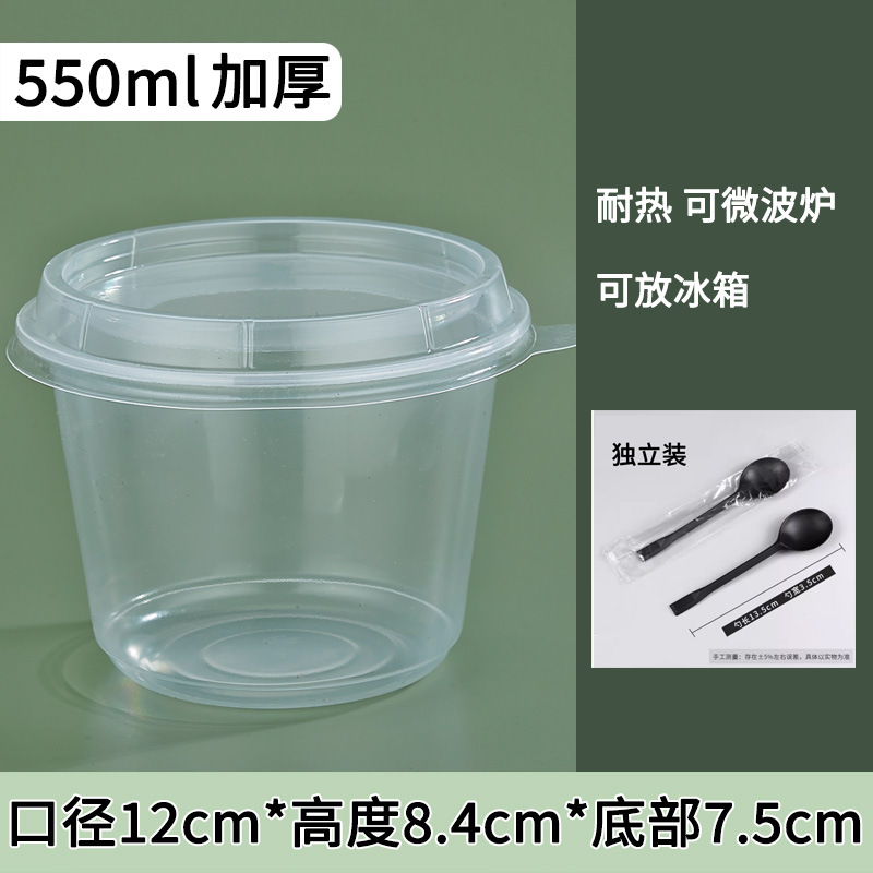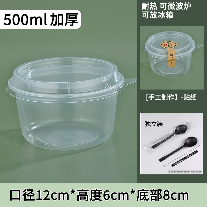 冰粉甜品打包专用餐盒一次性加厚带盖塑料商用水果圆形汤碗外卖碗