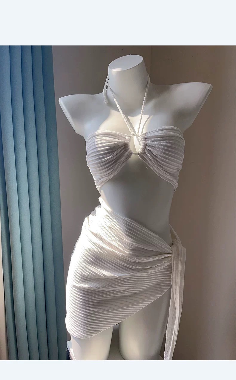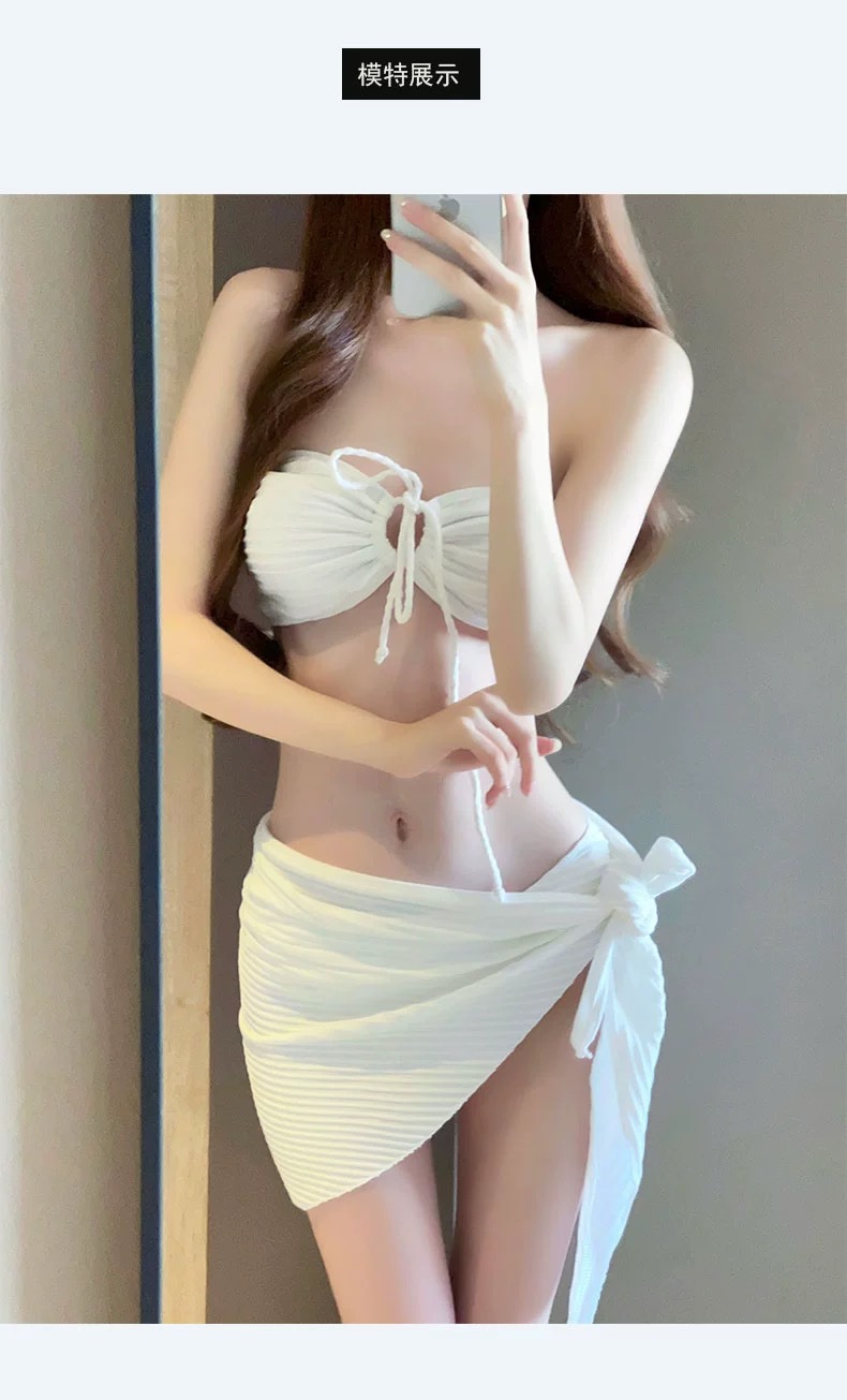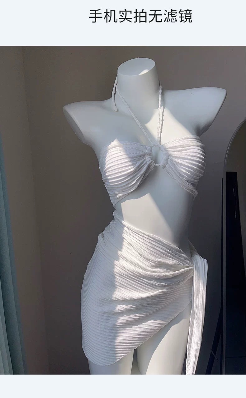 比基尼泳衣女三件套海边度假三角性感高级感显白玫红泡温泉泳衣女