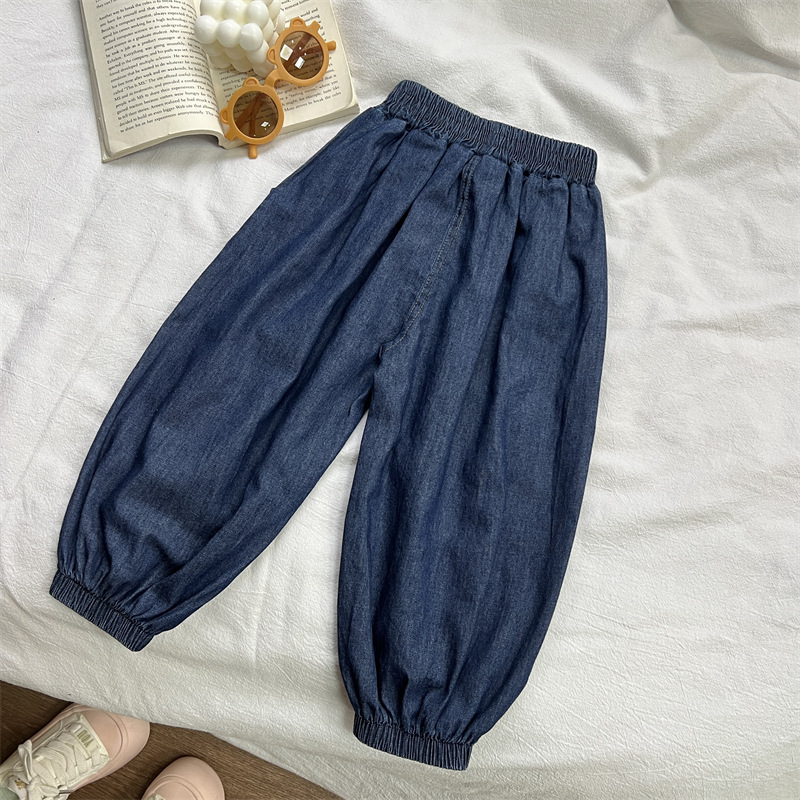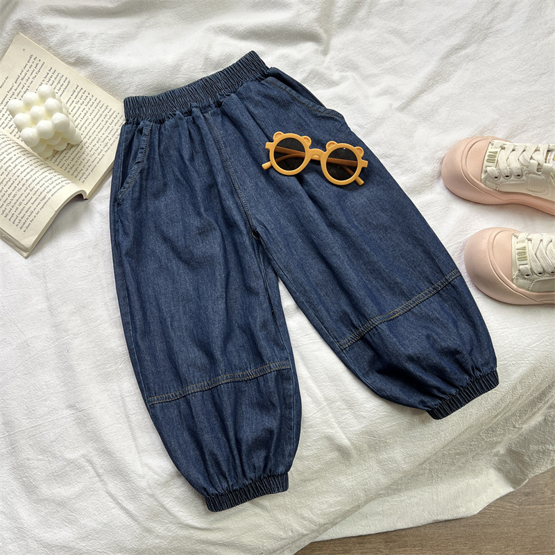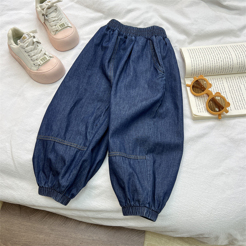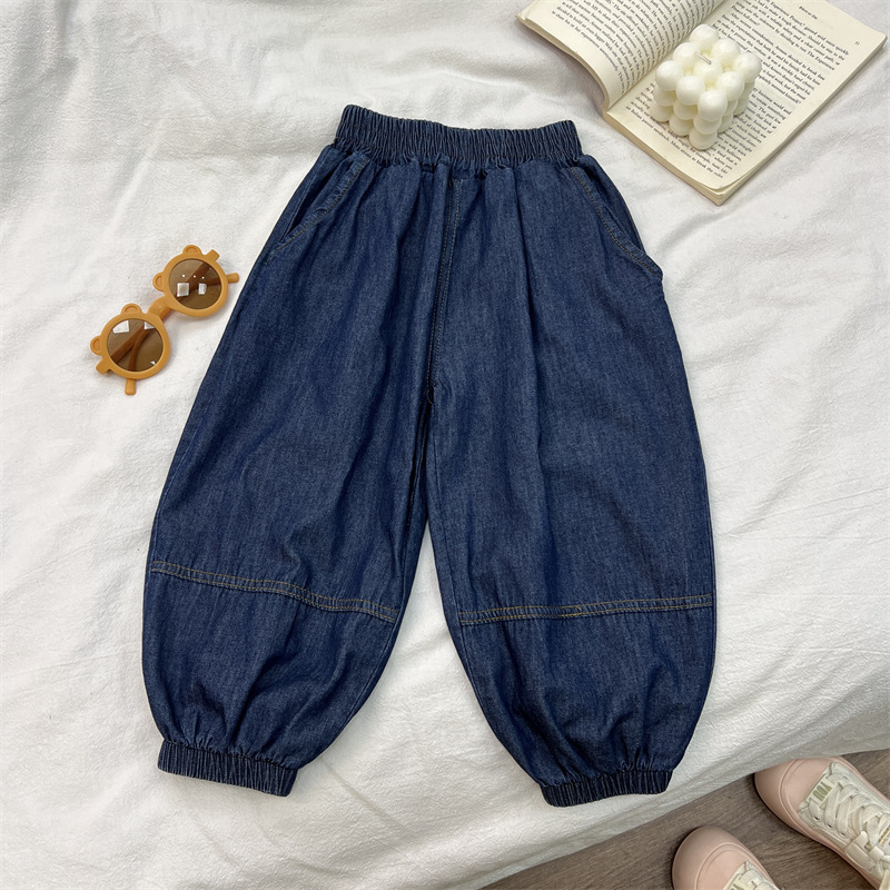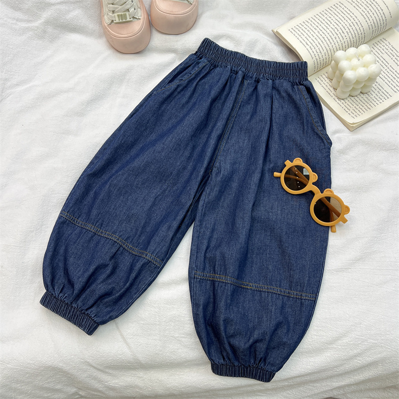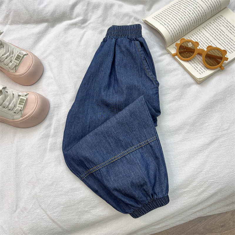 儿童牛仔裤夏季男女童纯棉水洗裤子宽松百搭薄款灯笼裤子裤束脚裤