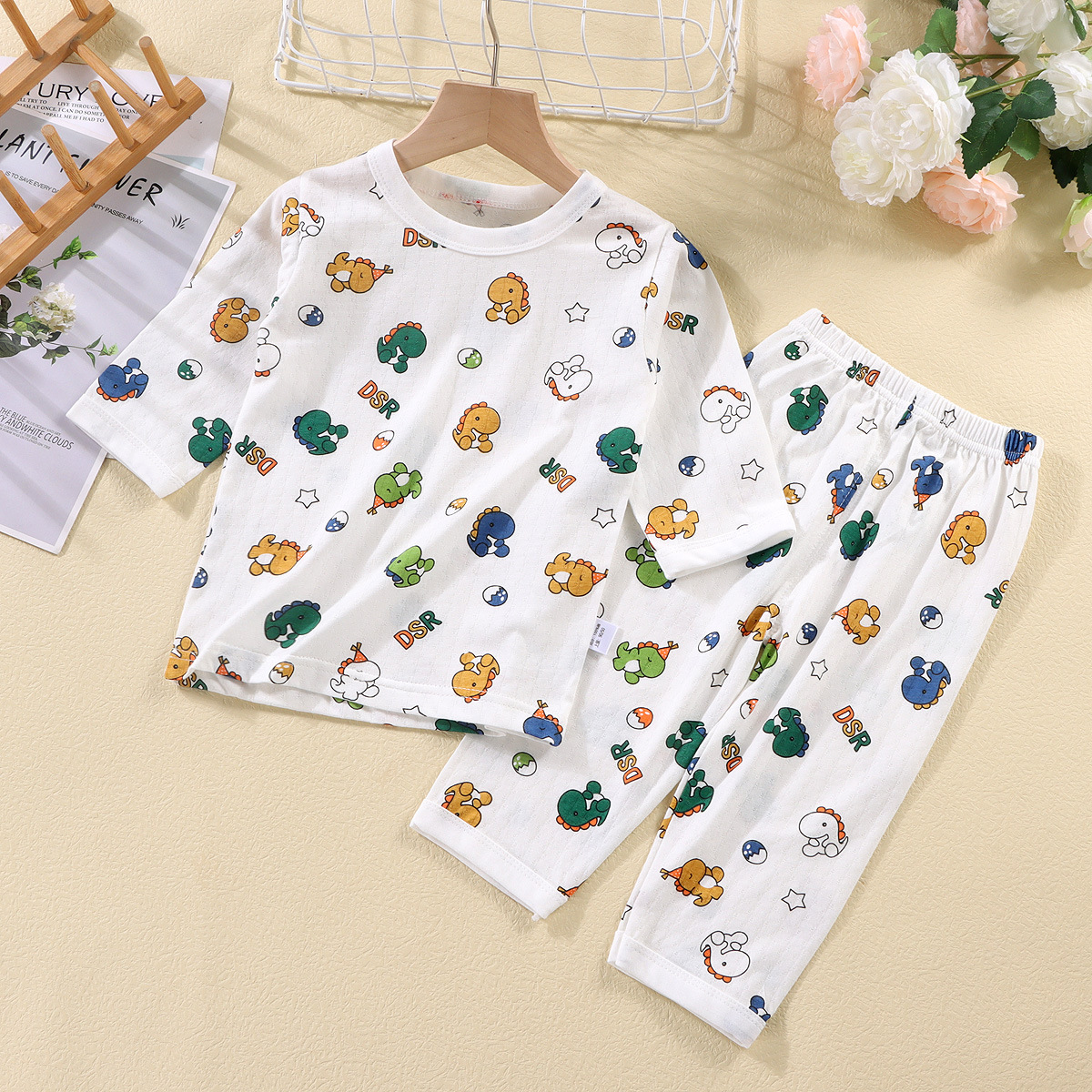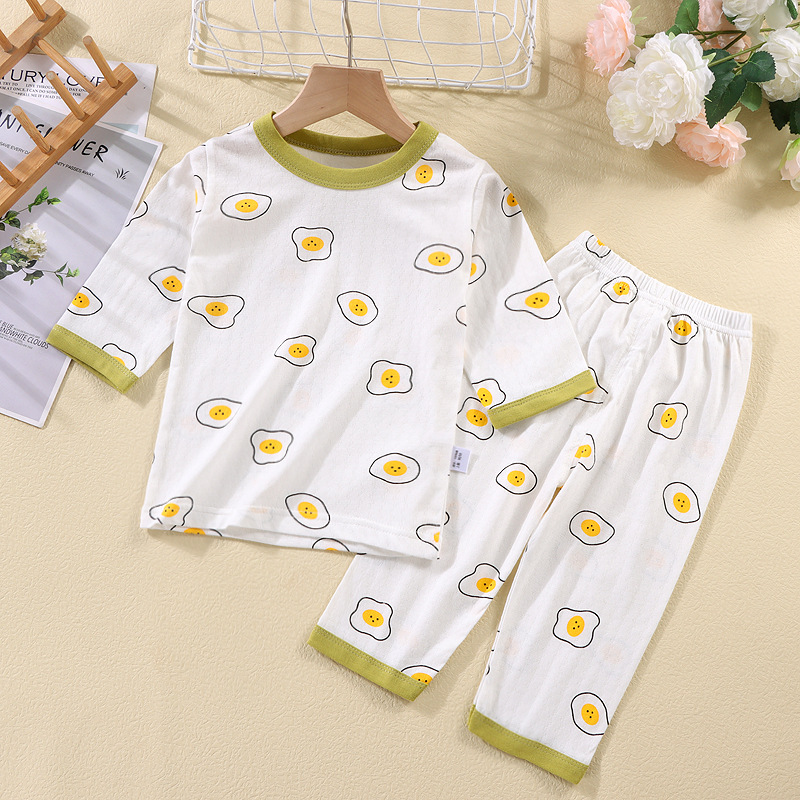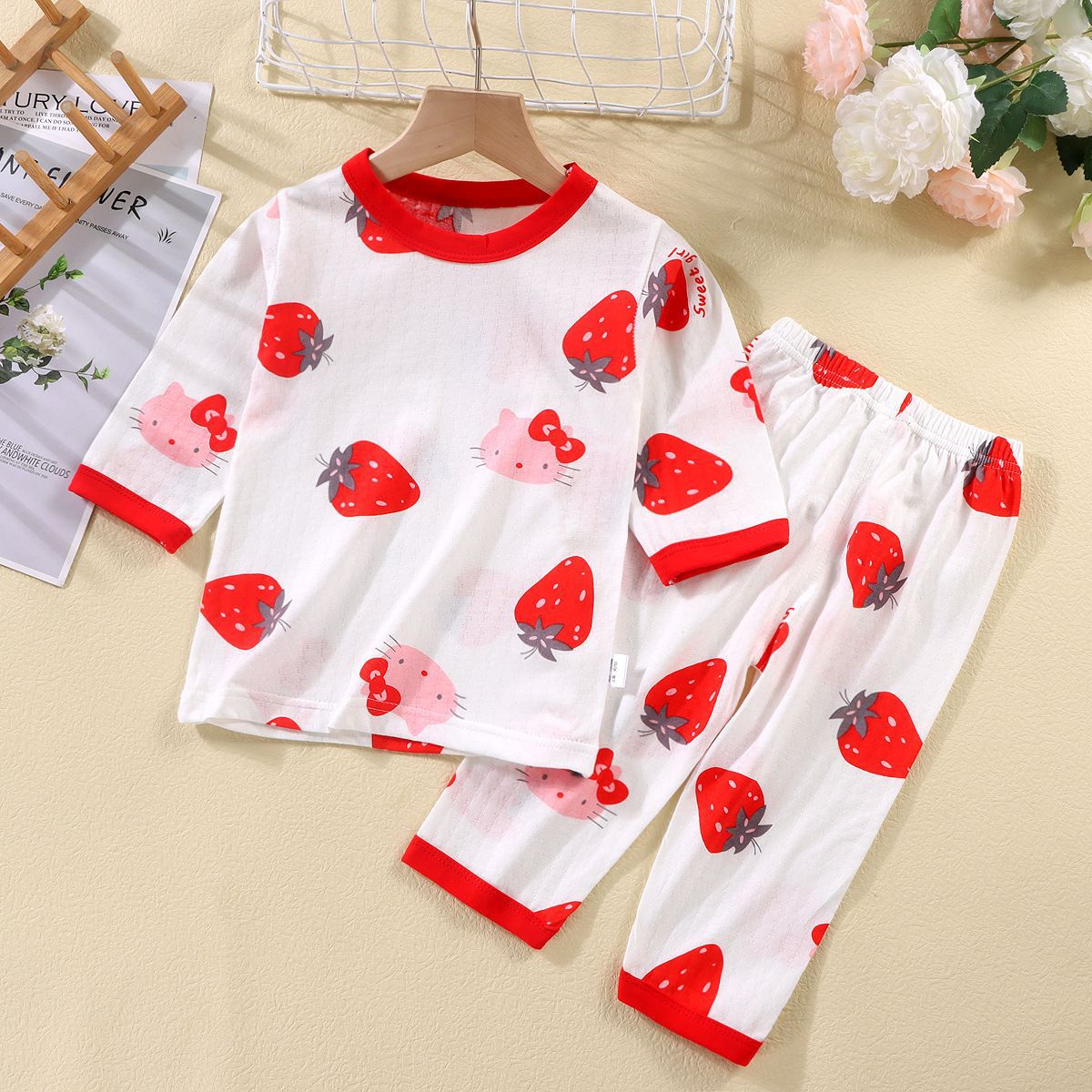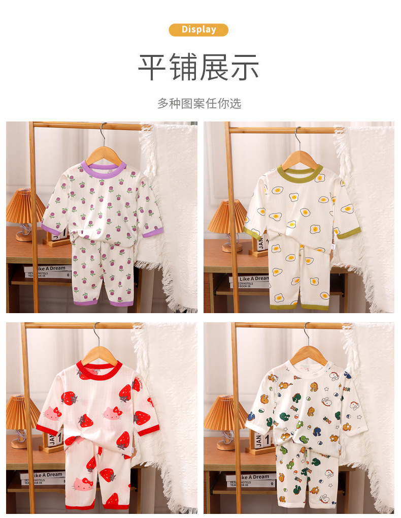 儿童家居服纯棉a类男童女童睡衣宝宝夏季空调服七分裤提花童套装