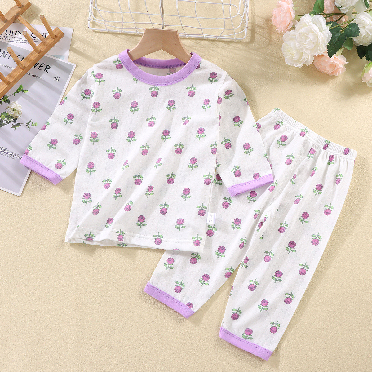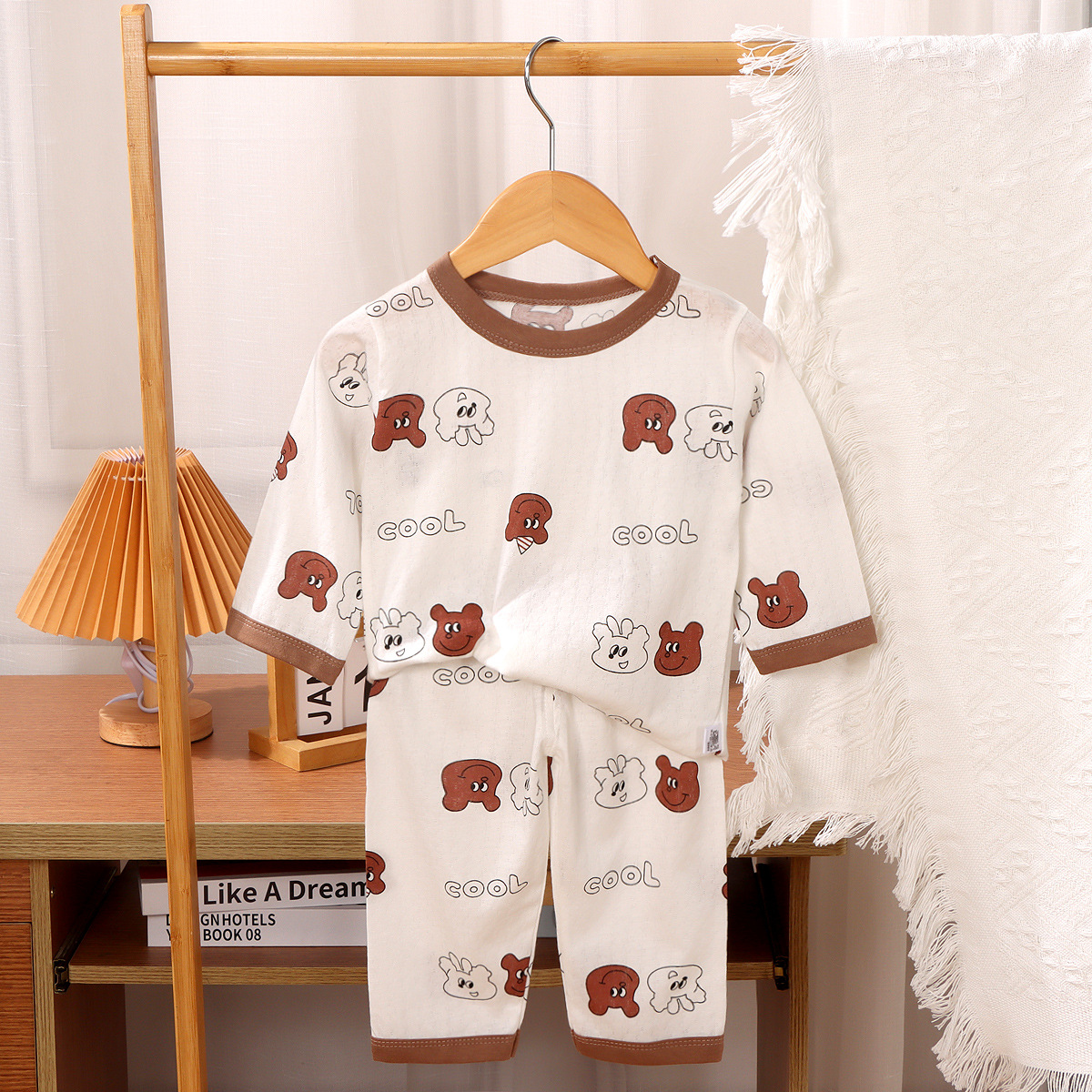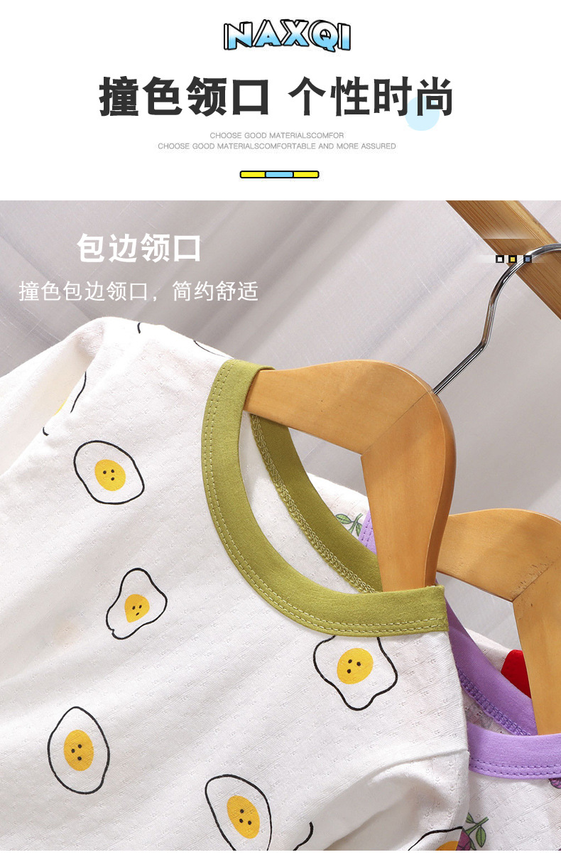儿童家居服纯棉a类男童女童睡衣宝宝夏季空调服七分裤提花童套装