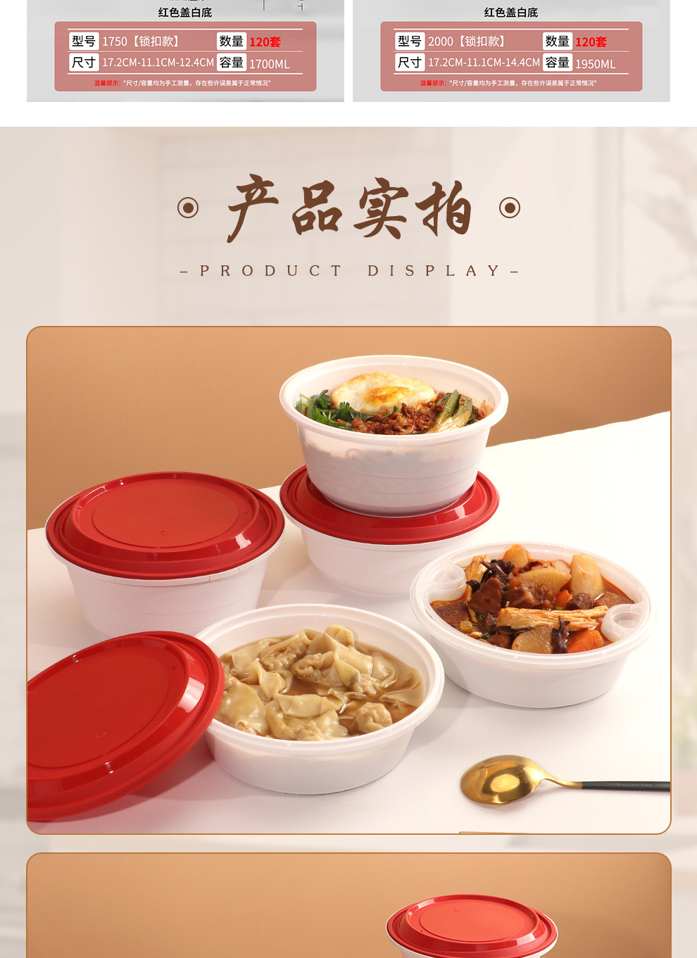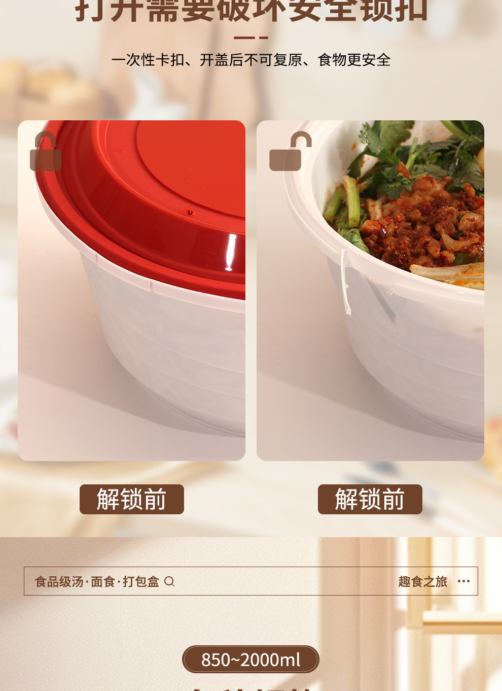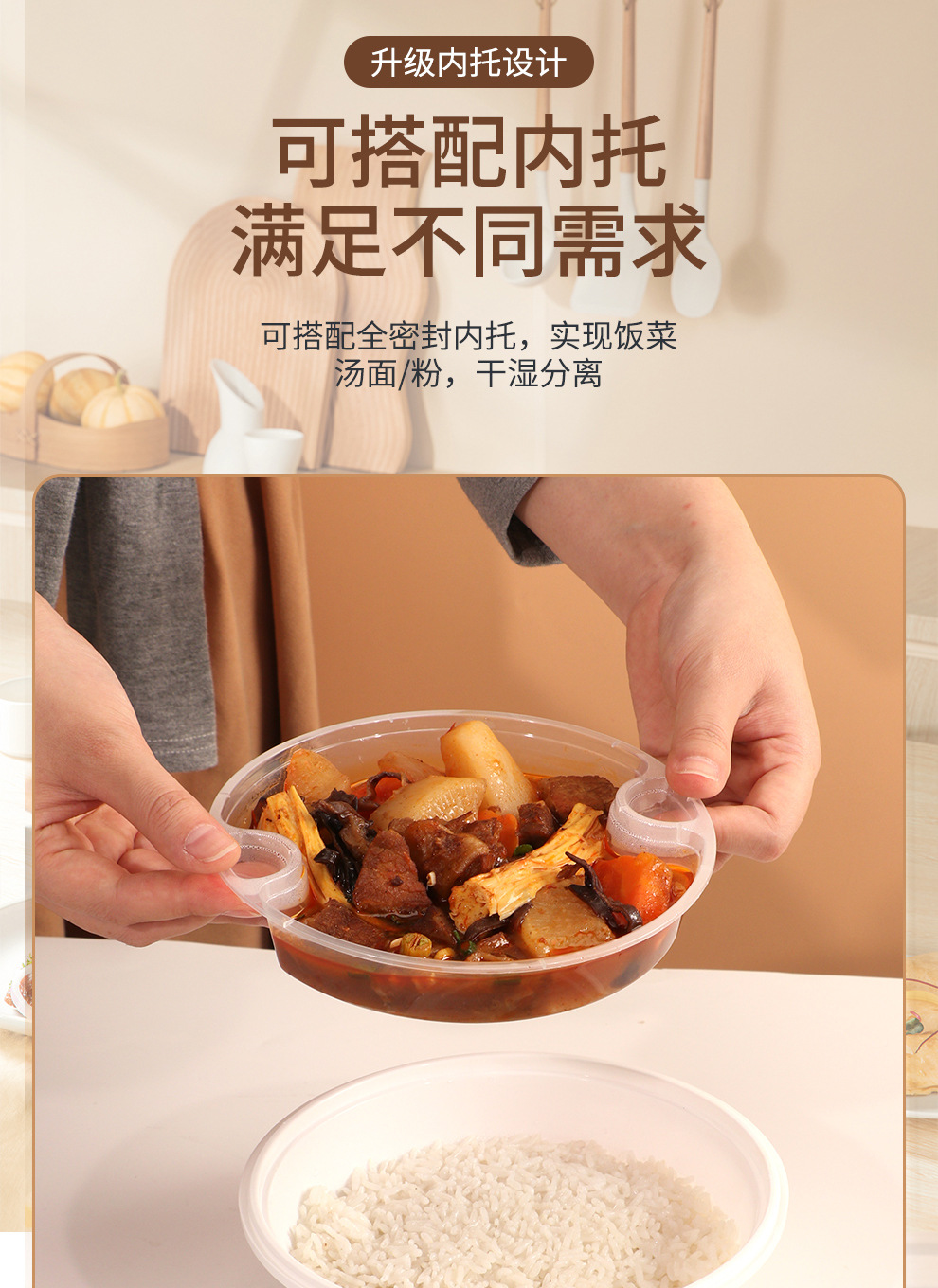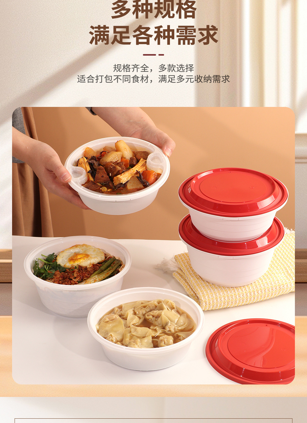 外卖锁扣饭盒打包盒带盖圆形防漏塑料饭盒可微波炉加热一次性餐盒