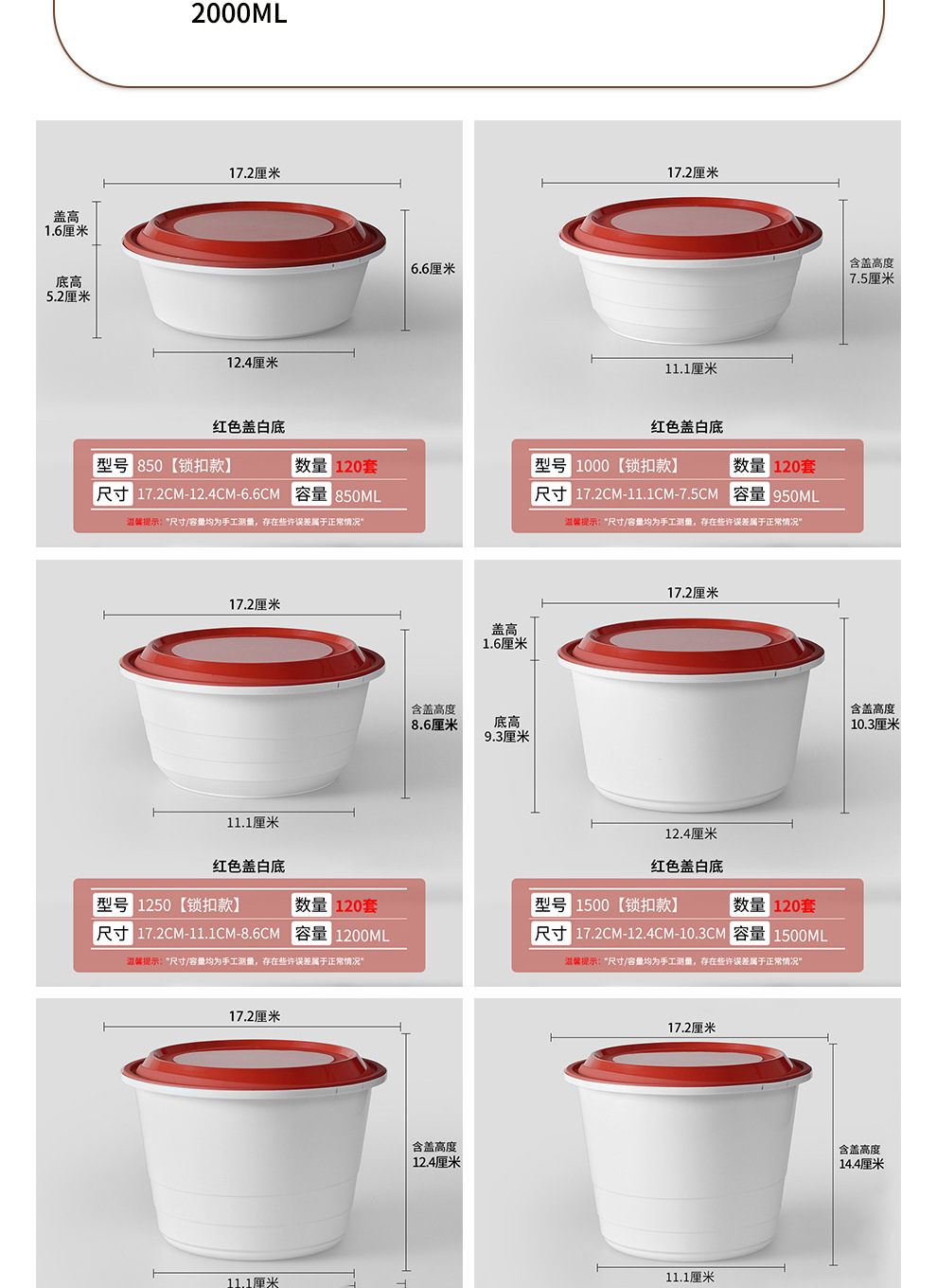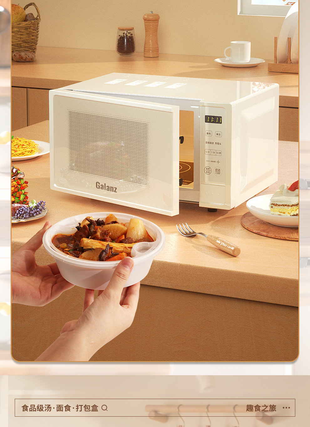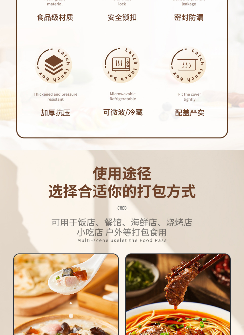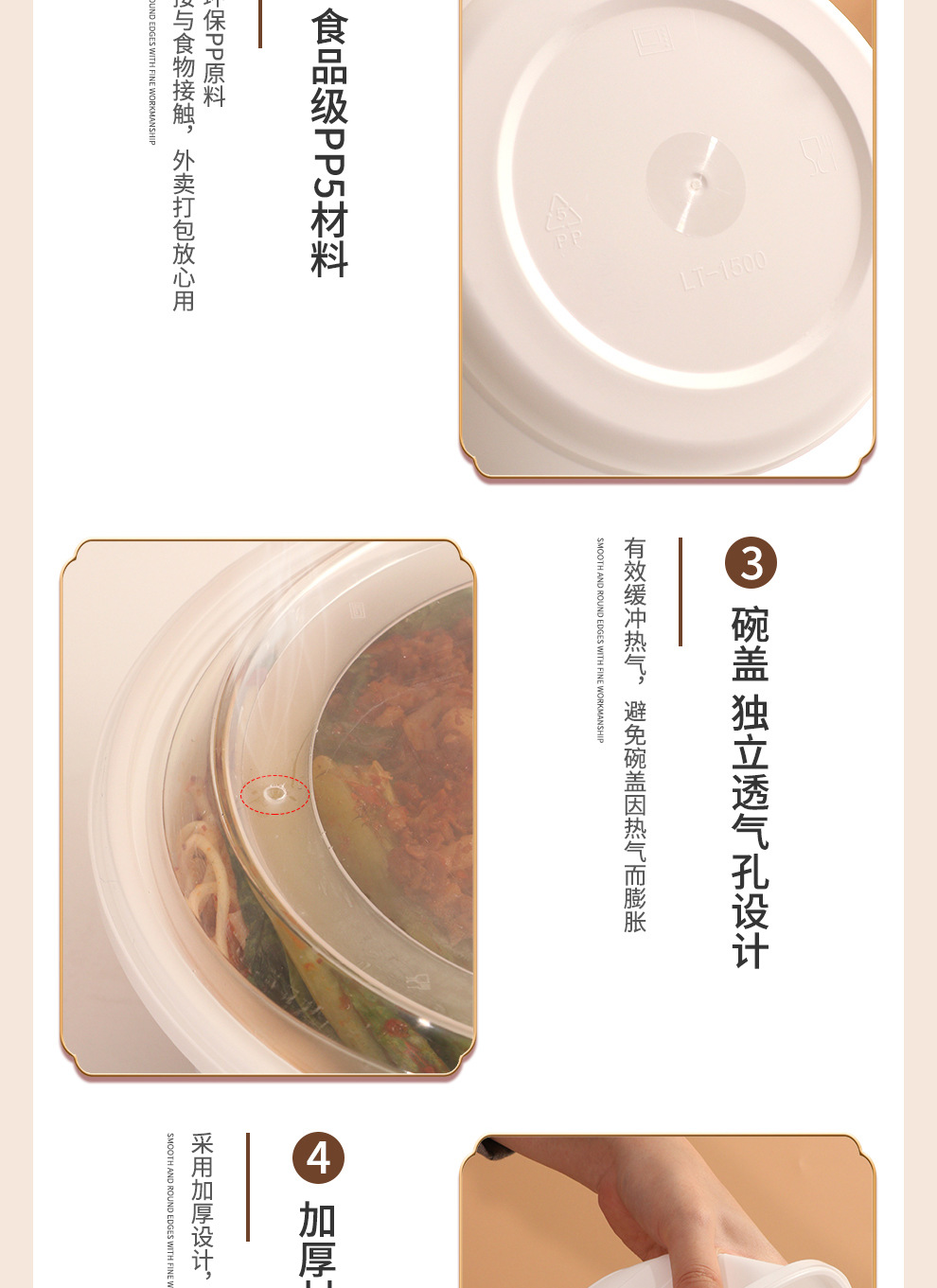 外卖锁扣饭盒打包盒带盖圆形防漏塑料饭盒可微波炉加热一次性餐盒