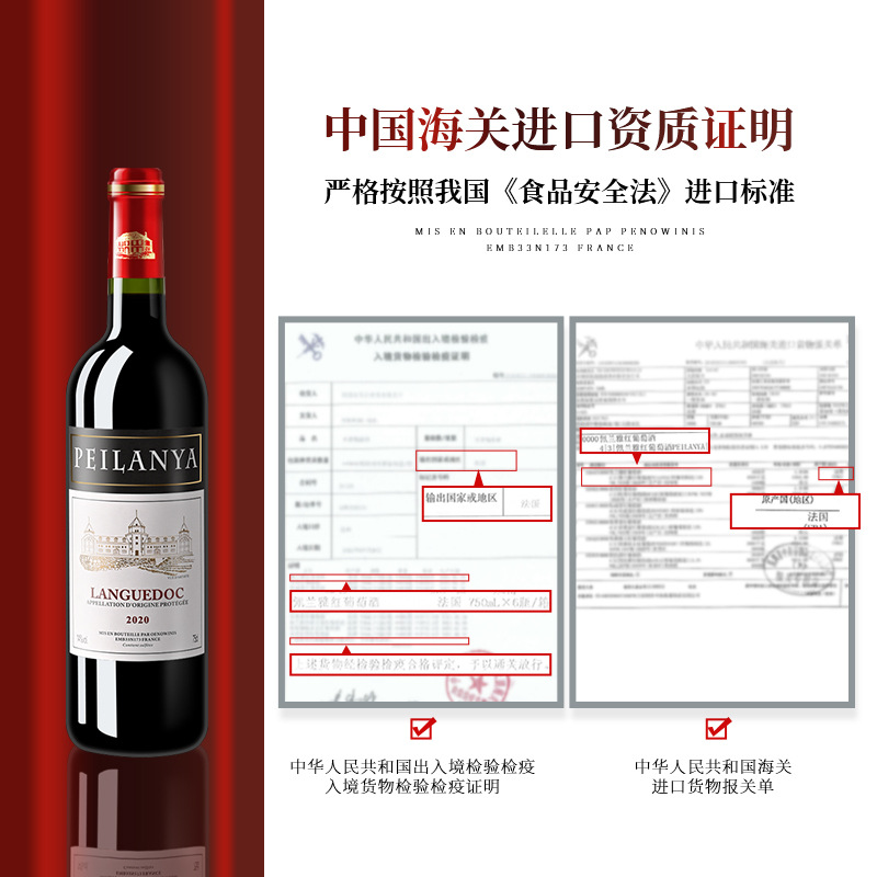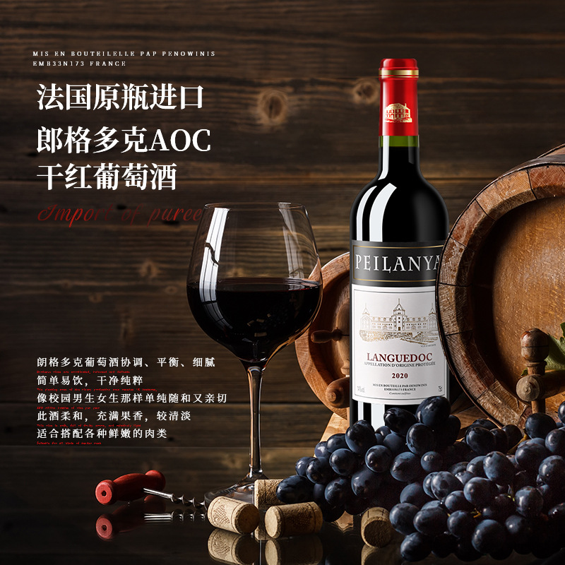法国原装原瓶进口红酒AOC混酿正品 干红葡萄酒14度750ml送礼批发