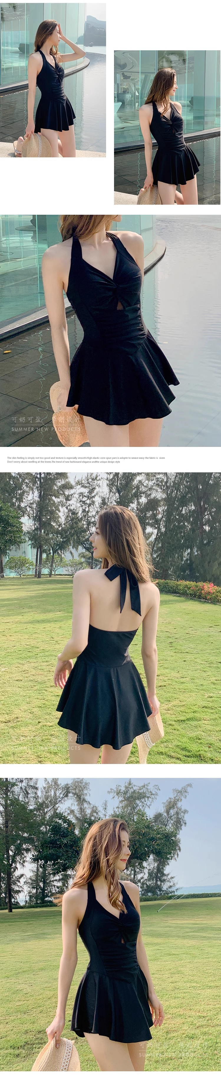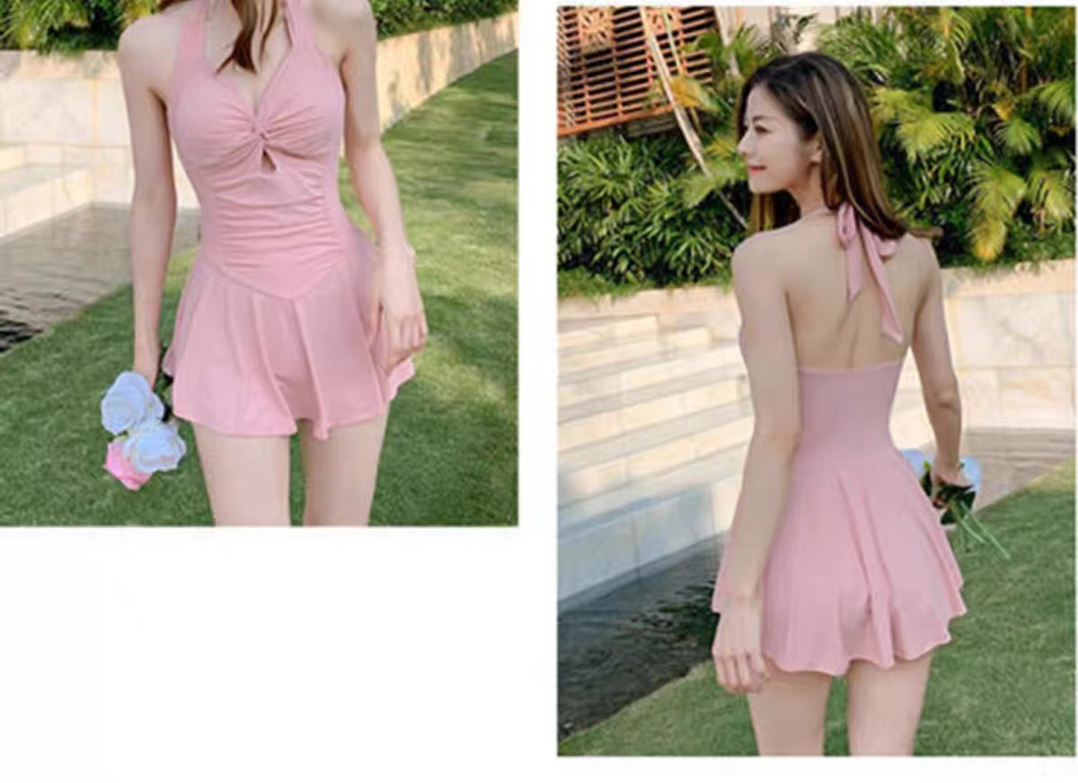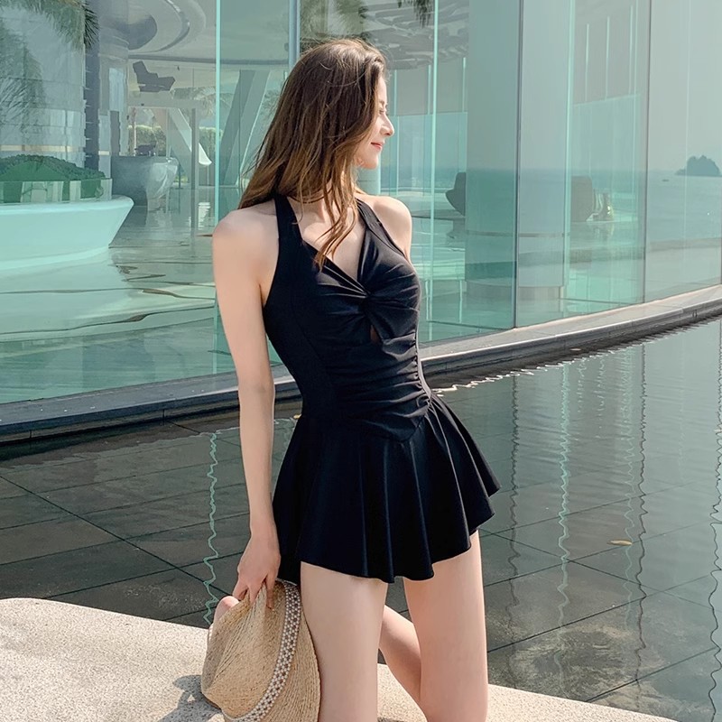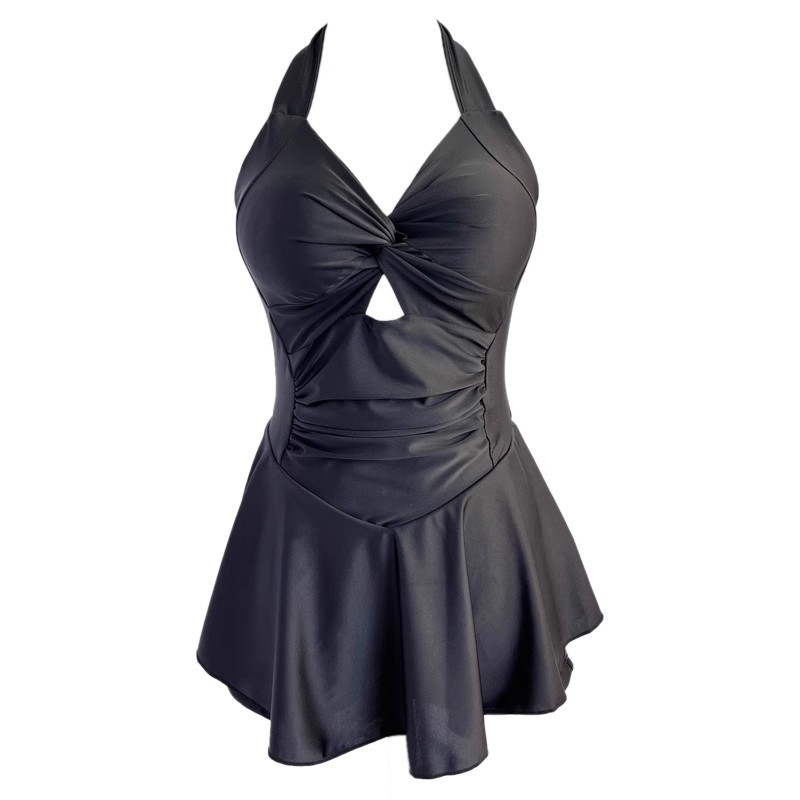挂脖高级感泳衣女连体保守裙式遮肚显瘦2025新款夏季泡温泉游泳馆