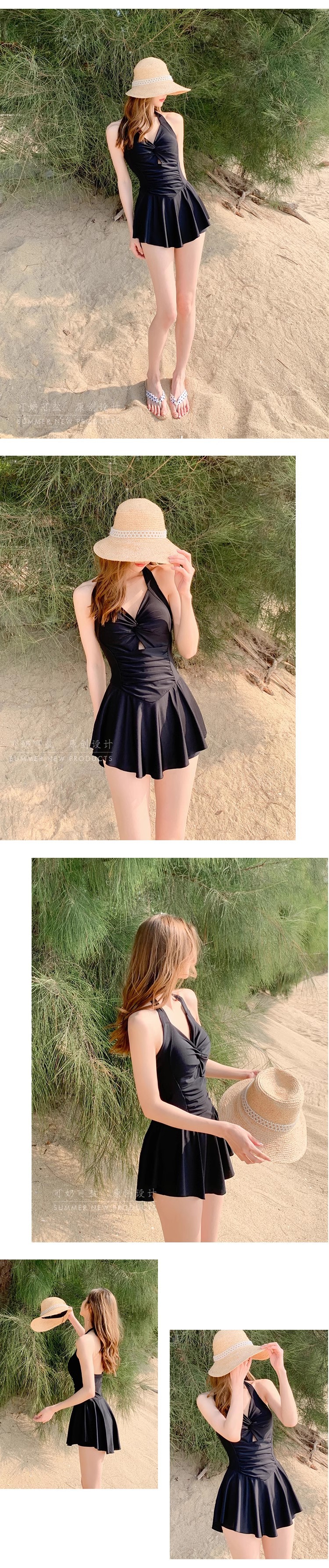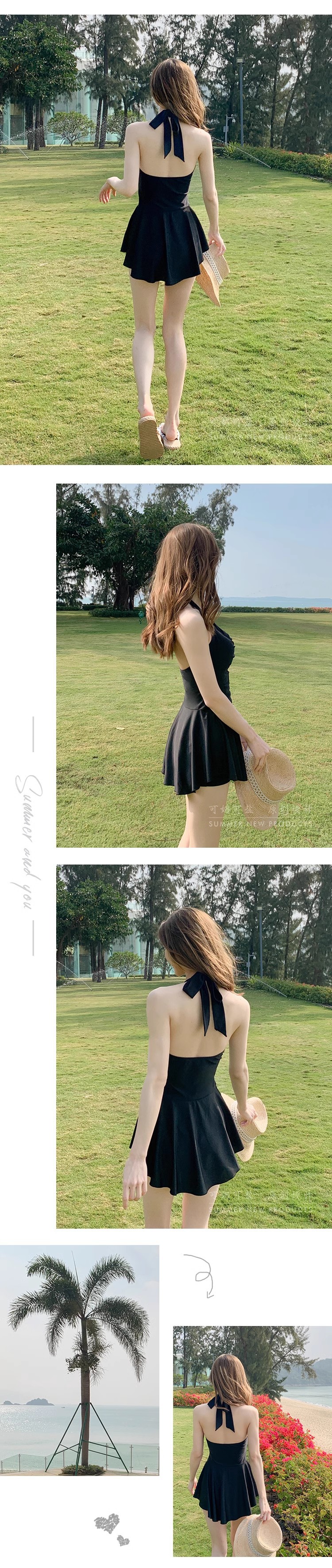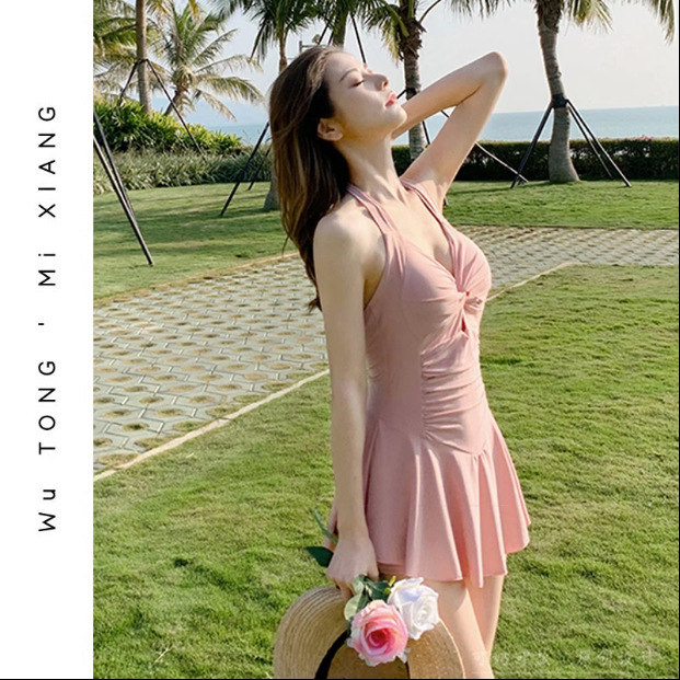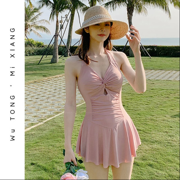 挂脖高级感泳衣女连体保守裙式遮肚显瘦2025新款夏季泡温泉游泳馆