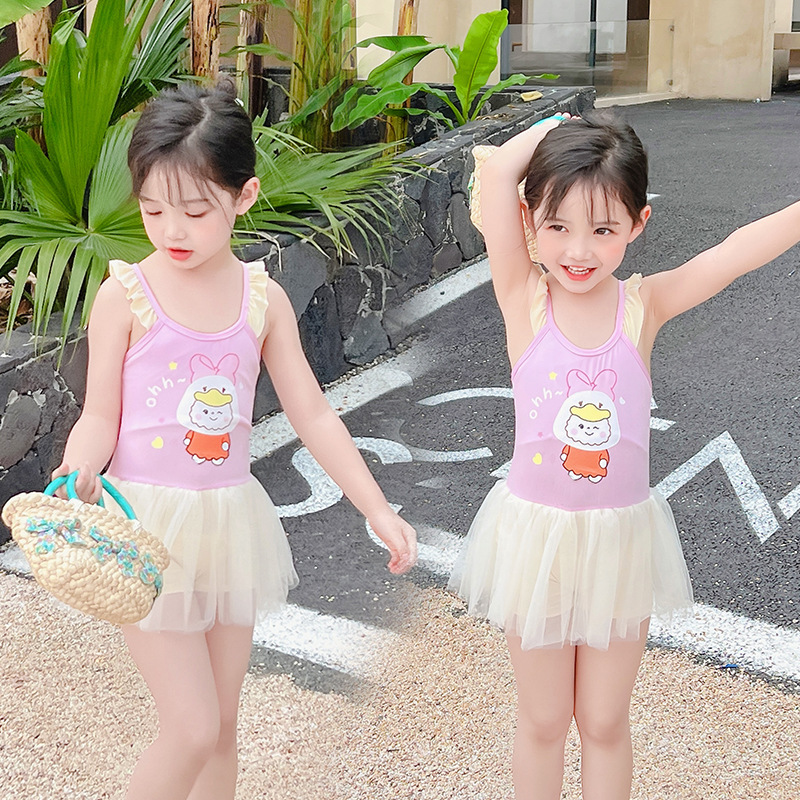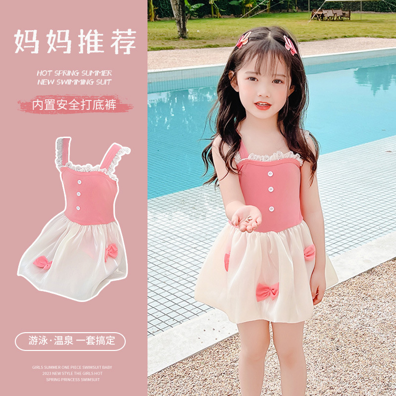 儿童泳衣女童连体中小童夏甜美可爱蓬蓬裙公主泡温泉宝宝泳衣套装