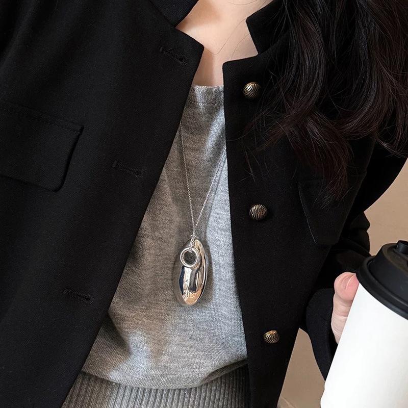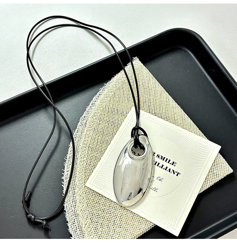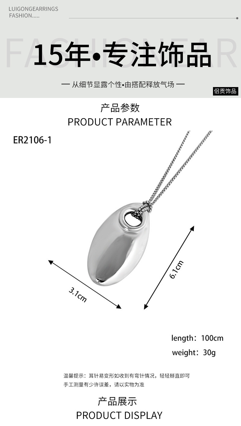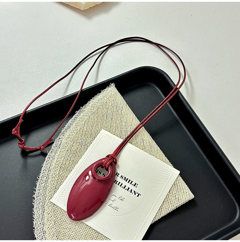 侣贡合金酒红色吊坠项链女高级感银色水滴长款气质毛衣链首饰批发