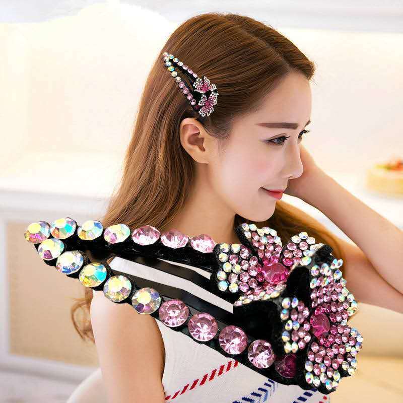 新款大号渐变BB夹刘海边卡夹水钻镶钻顶夹韩国成人碎发头饰水晶夹
