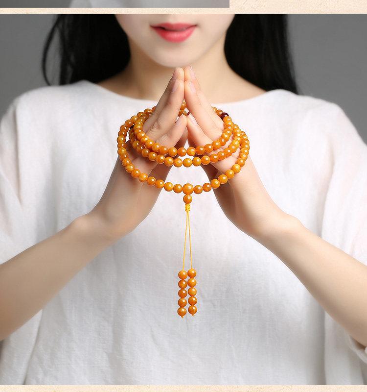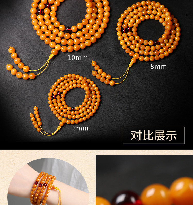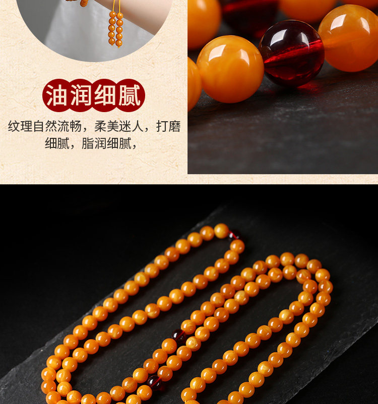 精选厂家批发缅甸蜜蜡多圈108颗佛珠蜜蜡琥珀毛衣项链男女款批发