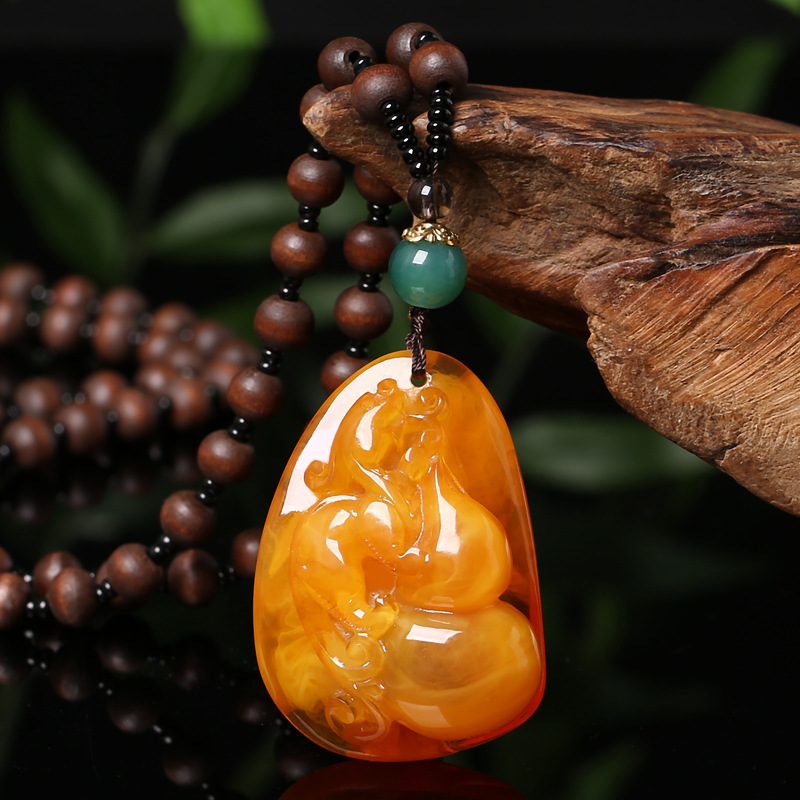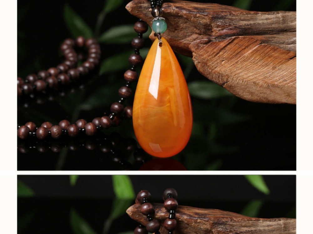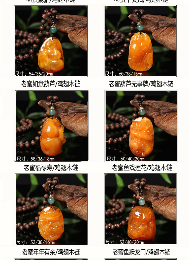 老蜜蜡吊坠毛衣链男女款鸡油黄蜜蜡鸡翅木项链二代民族风琥珀挂坠