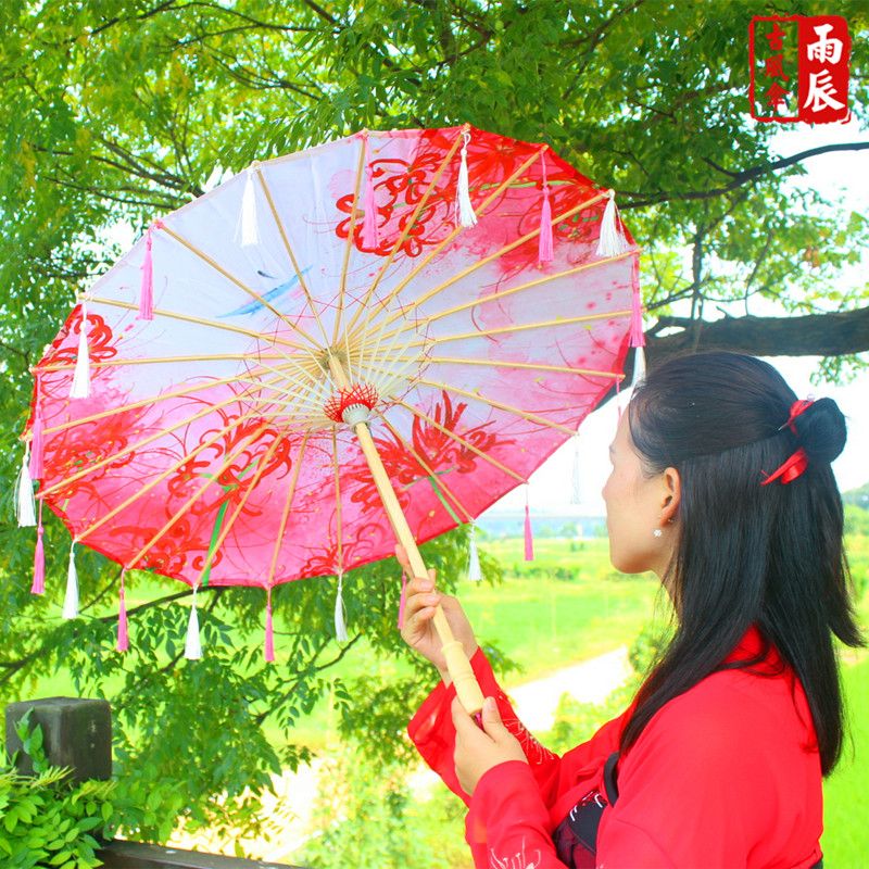 古风流苏绸布伞防雨古代汉服舞蹈伞装饰道具走秀演出跳舞油纸伞