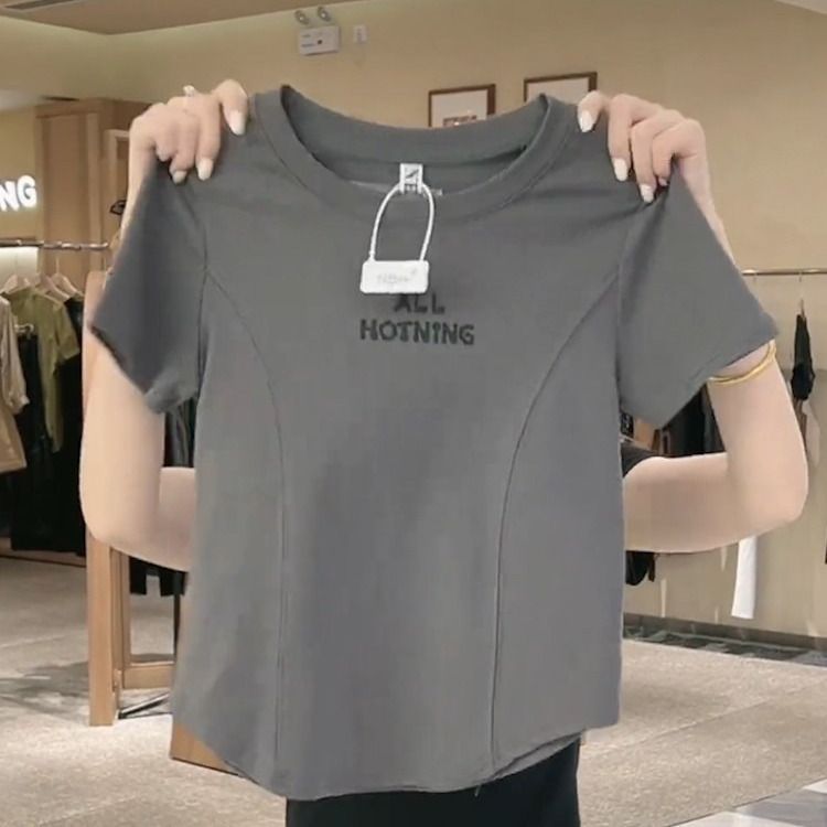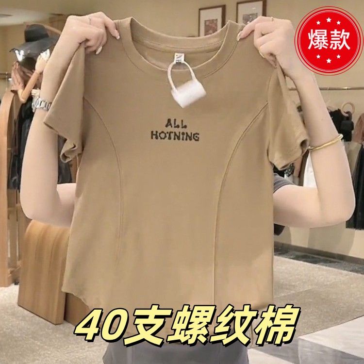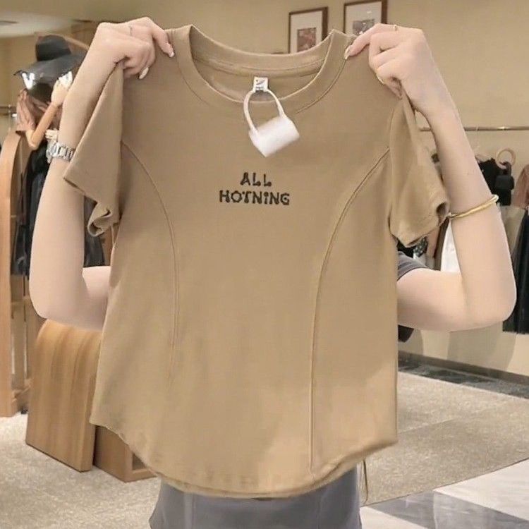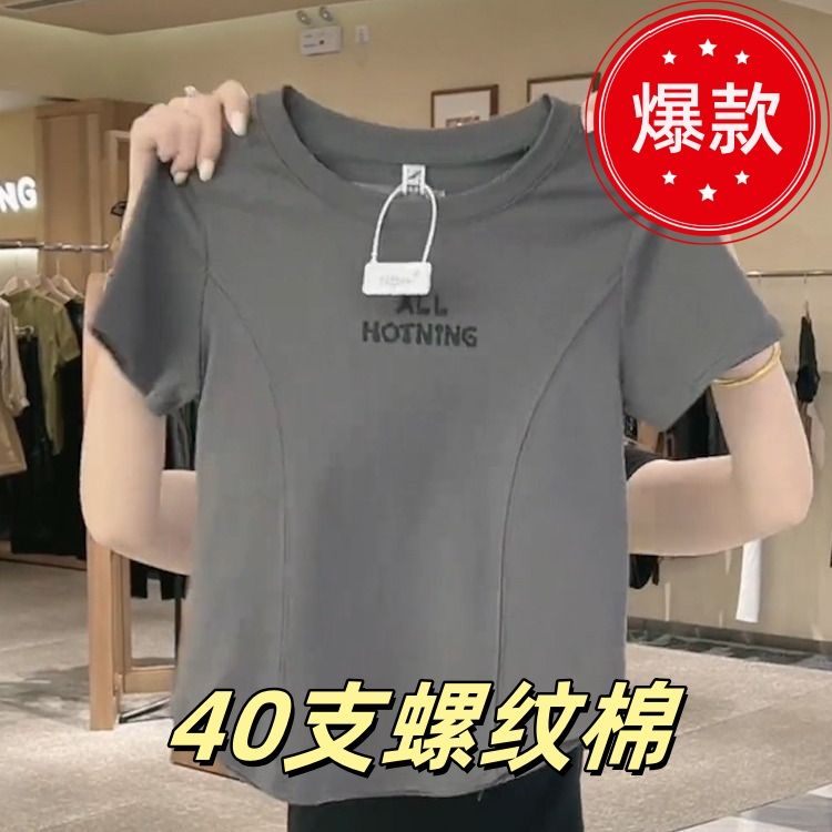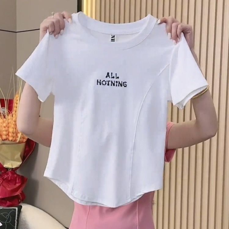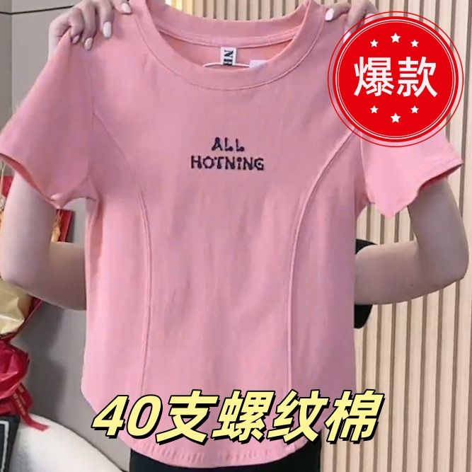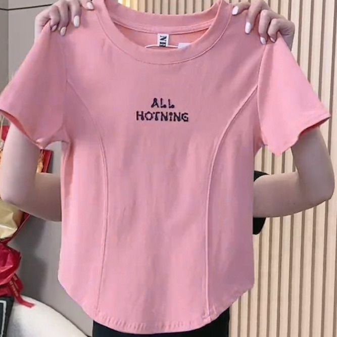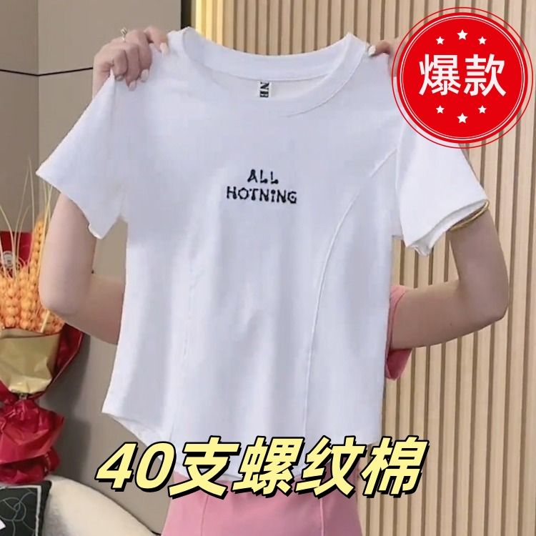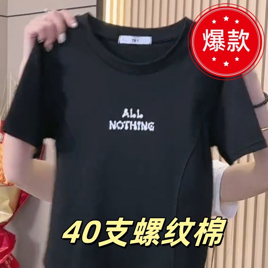 100%纯棉新款时尚网红圆领修身显瘦百搭字母休闲设计感上衣t恤