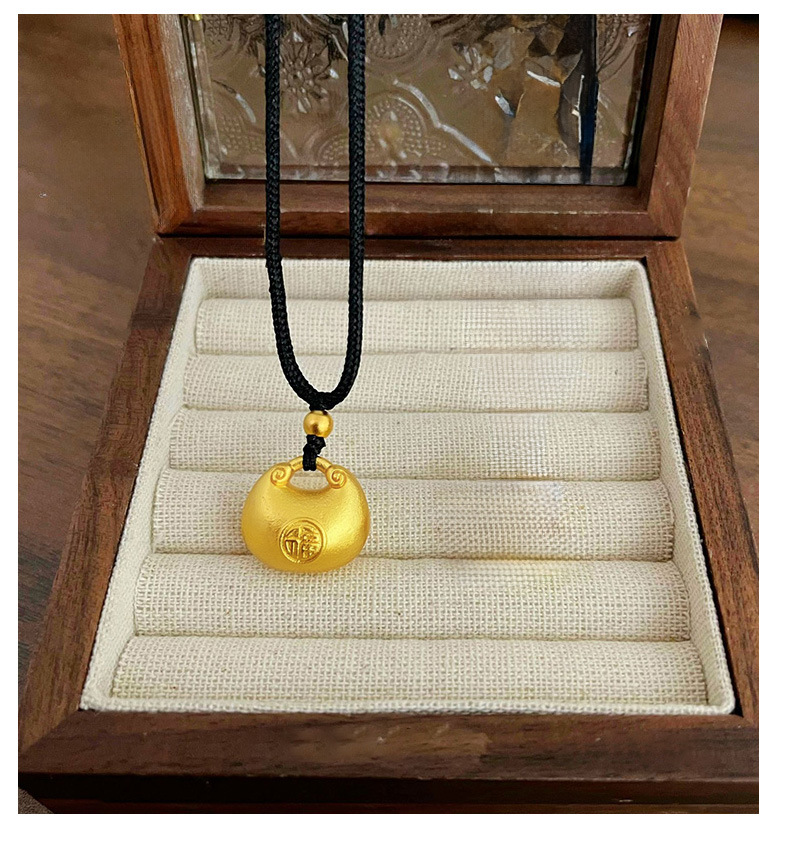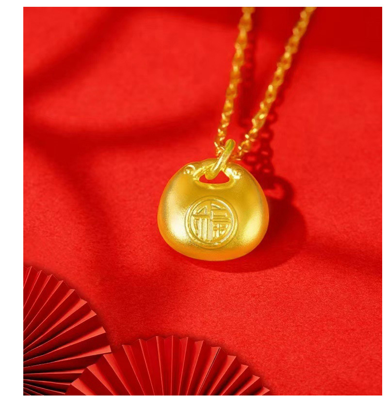 金店同款小金坨小胖福锁吊坠项链磨砂锁包简约气质锁骨链送女友礼