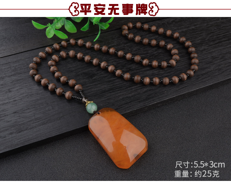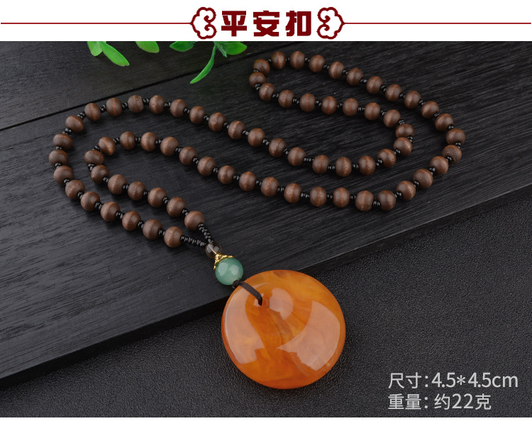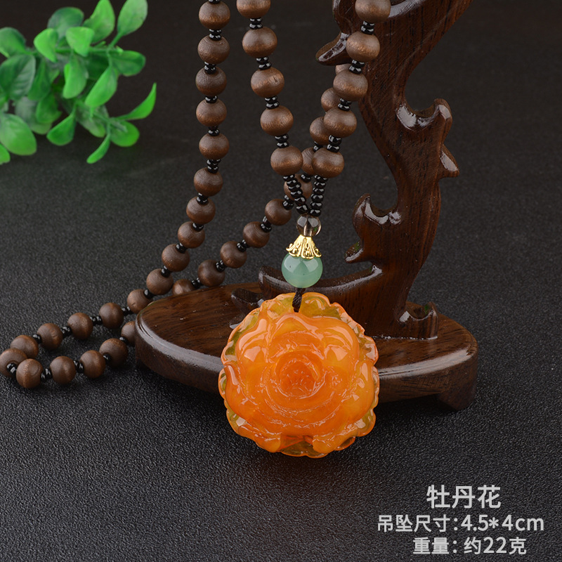 老蜜蜡水滴项链琥珀长款毛衣链平安扣牡丹花复古男女款鸡油黄挂坠