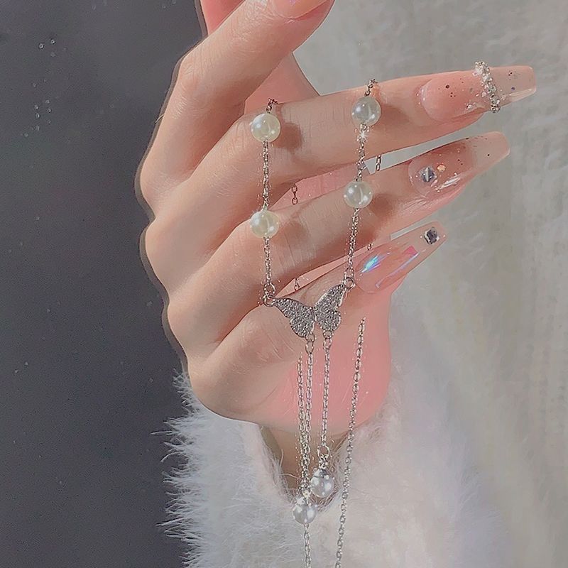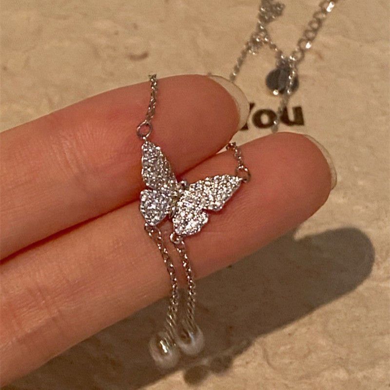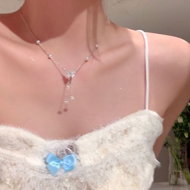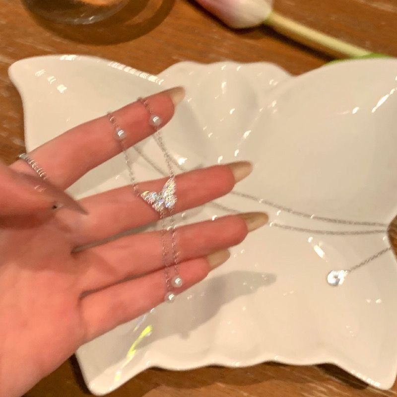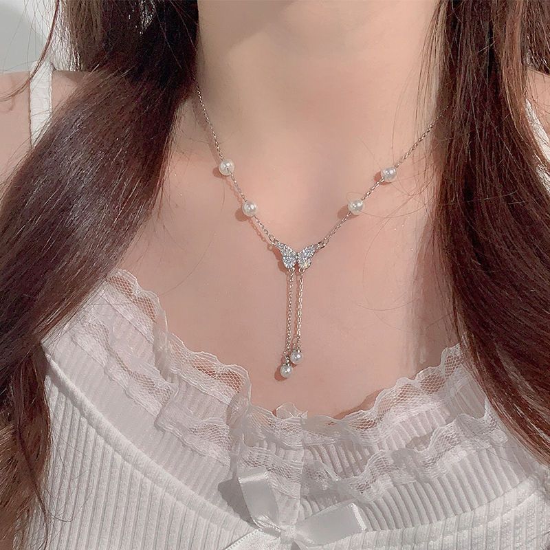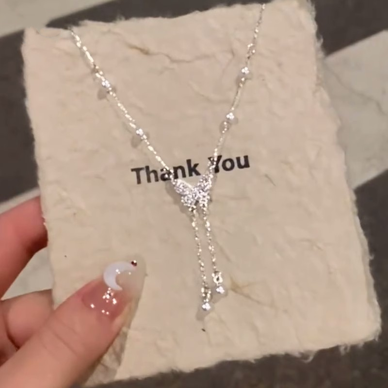 蝴蝶珍珠流苏项链女ins925银高颜值温柔精致毛衣链气质百搭锁骨链