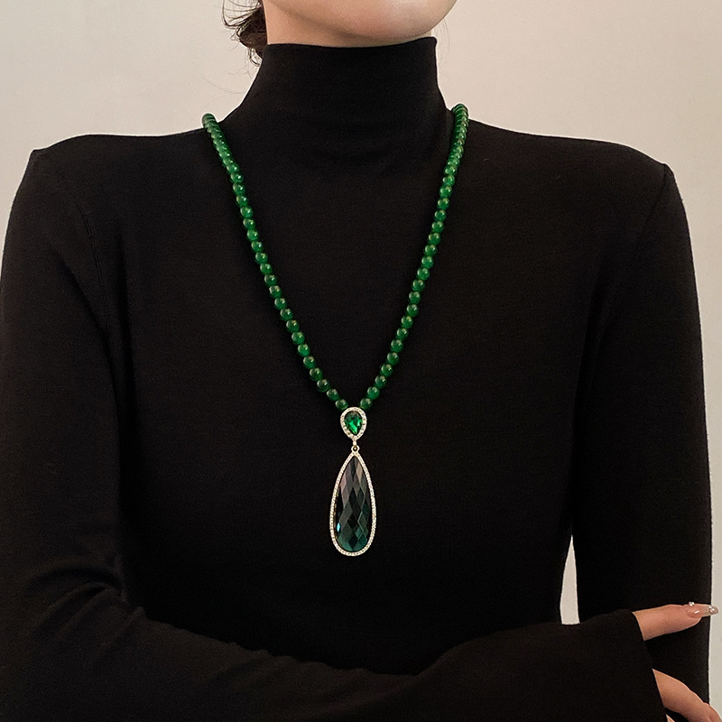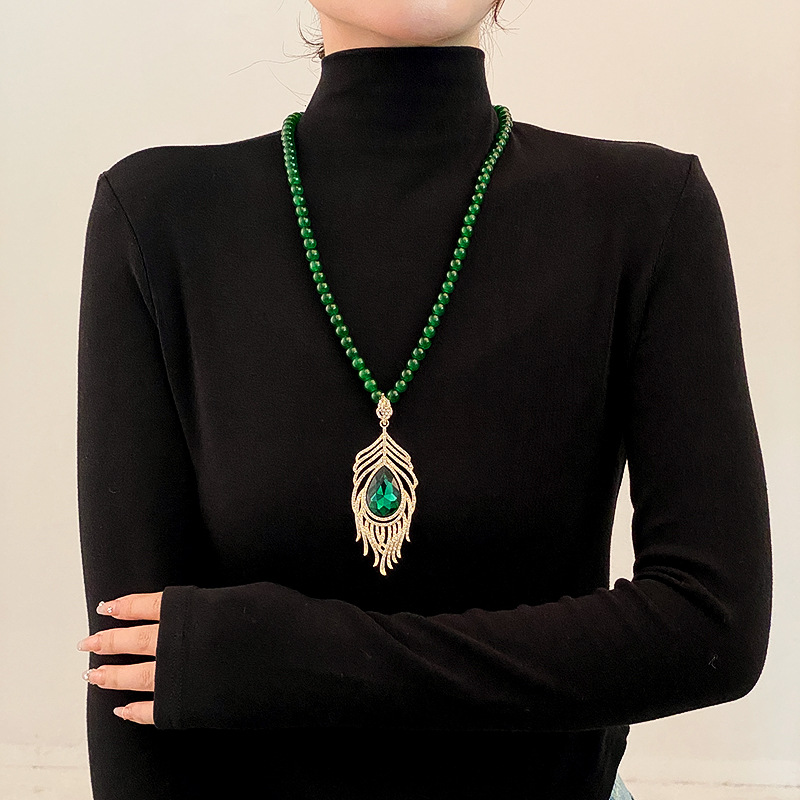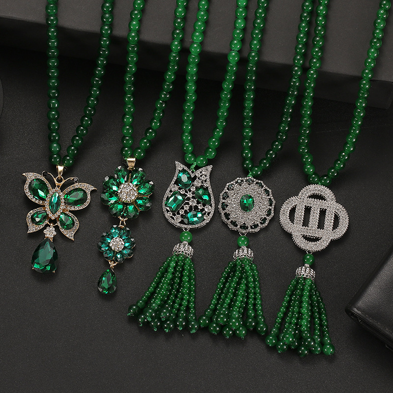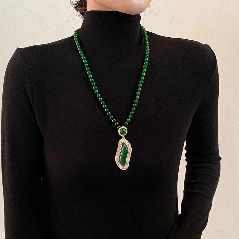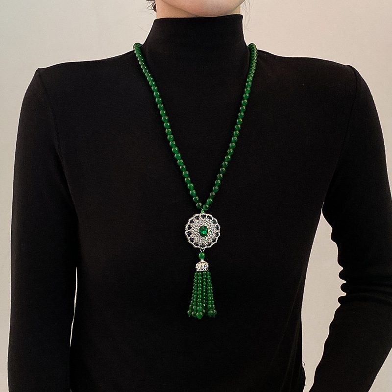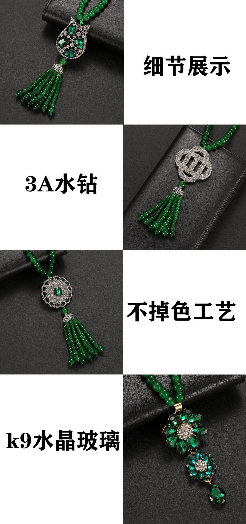 高端绿如意毛衣链女秋冬长款项链气质轻奢高级毛衣链衣服配饰挂件