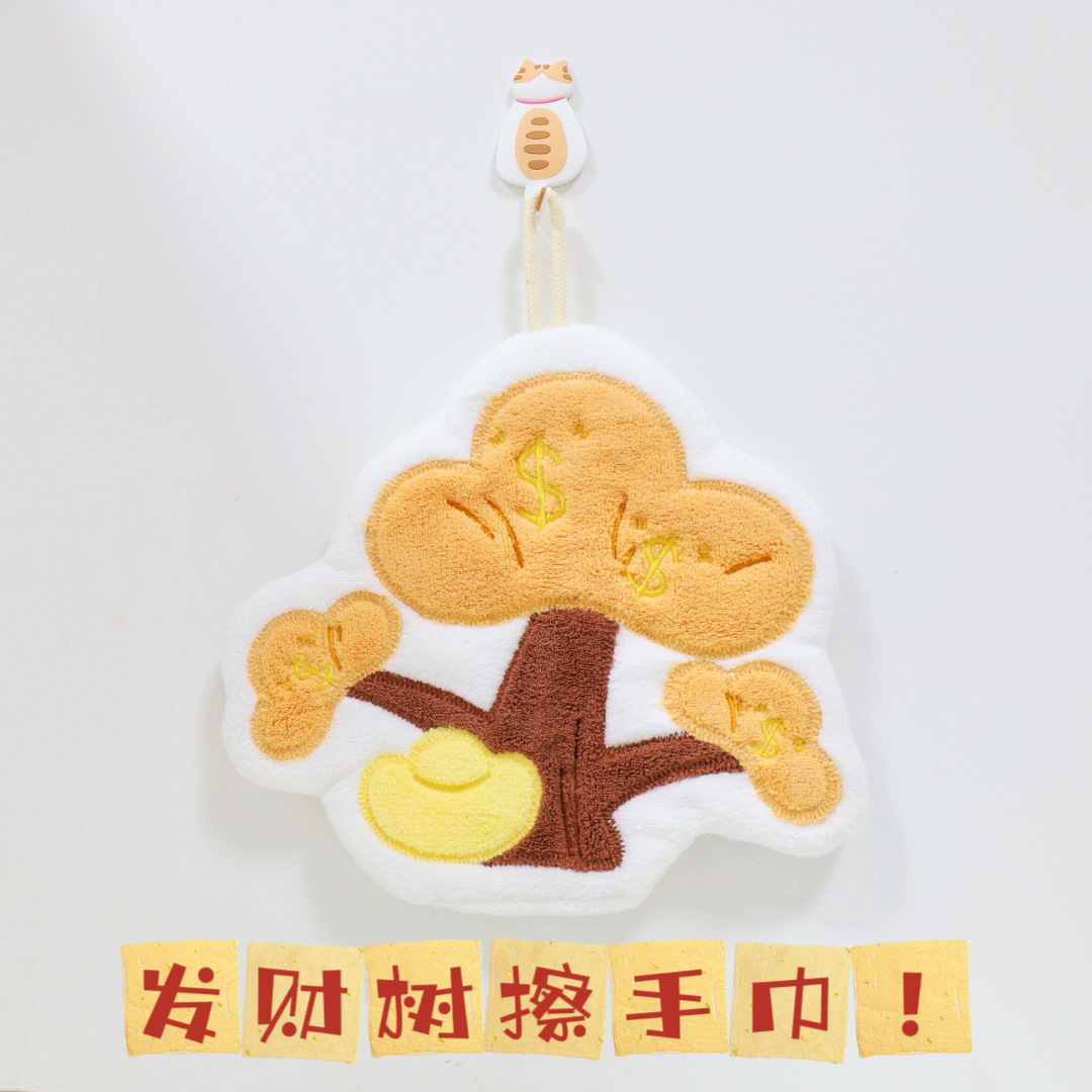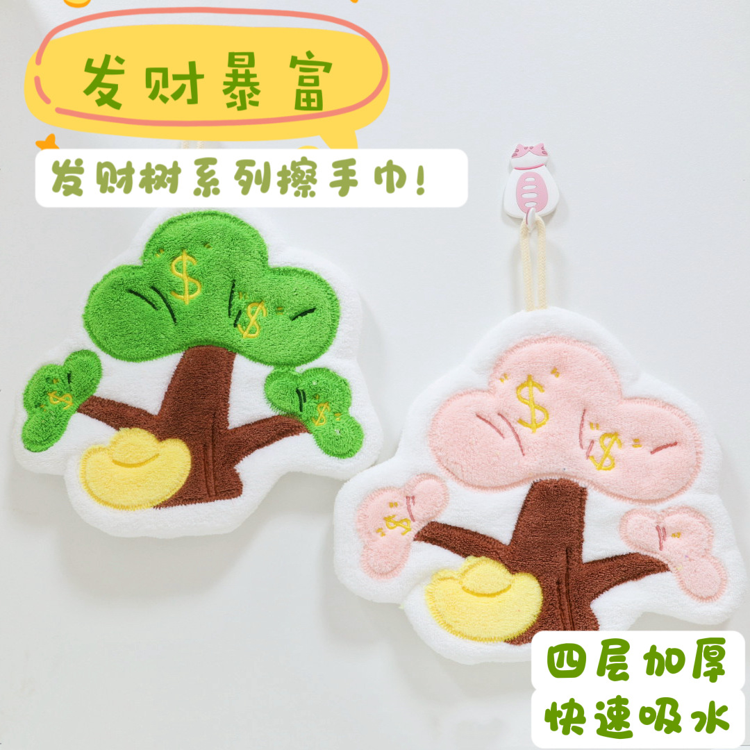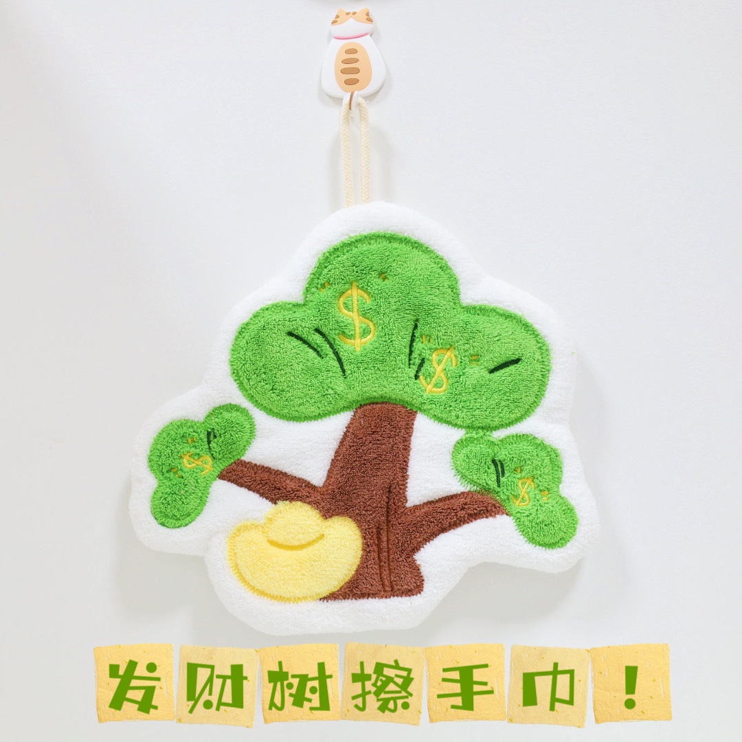 新款大发财树擦手巾挂式毛巾强力吸水厨房家用儿童擦手帕挂巾