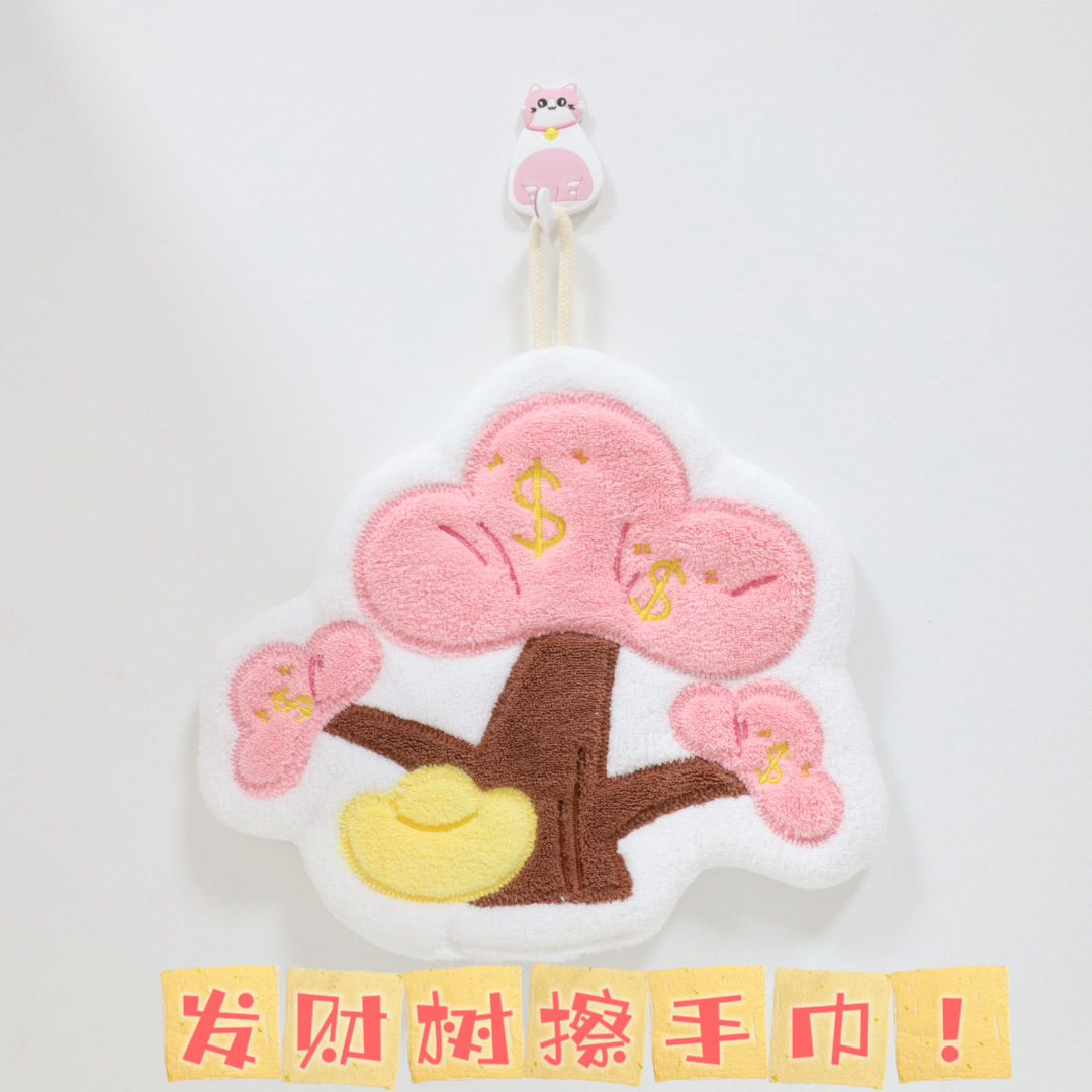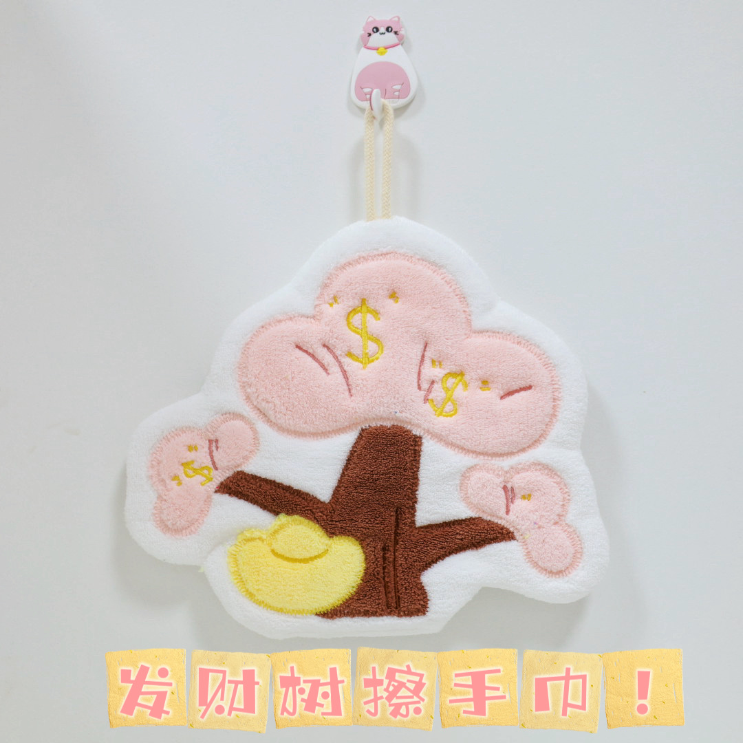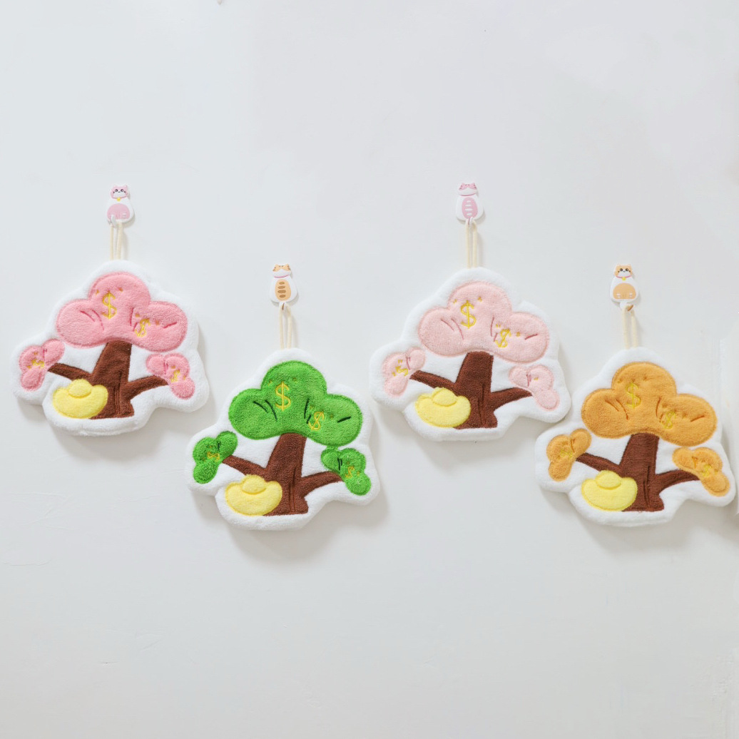 新款大发财树擦手巾挂式毛巾强力吸水厨房家用儿童擦手帕挂巾