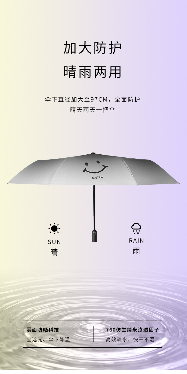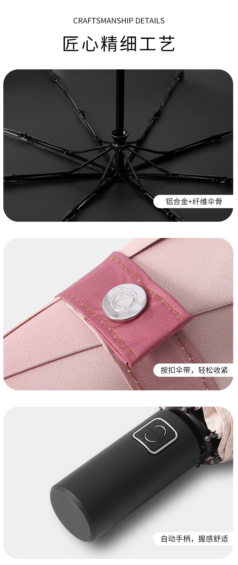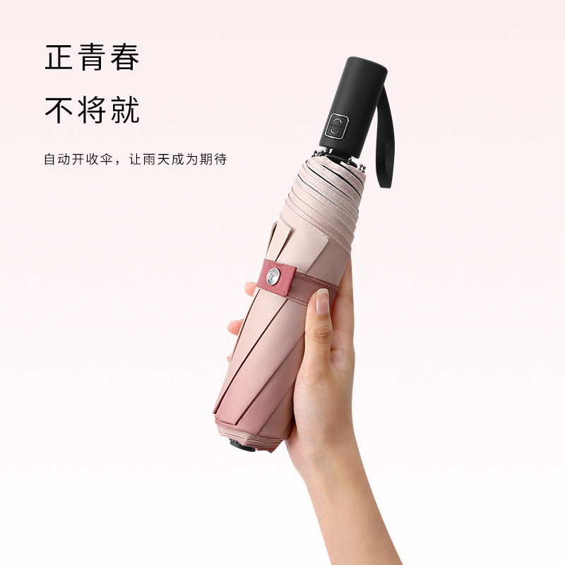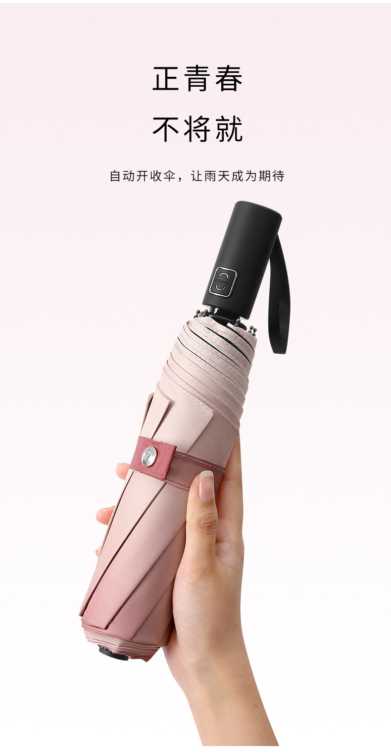 全自动三折渐变小清晰晴雨伞防晒防紫外线纯色黑胶ins风遮阳伞女