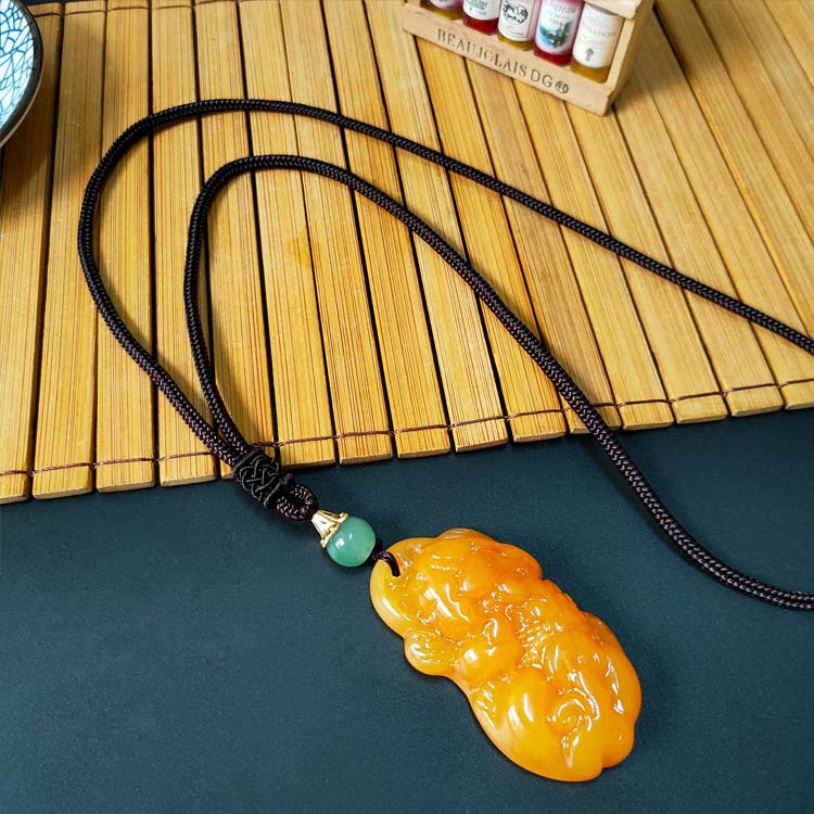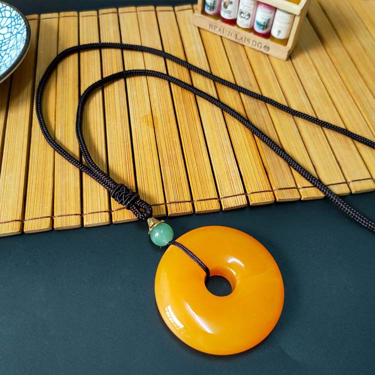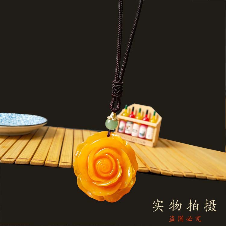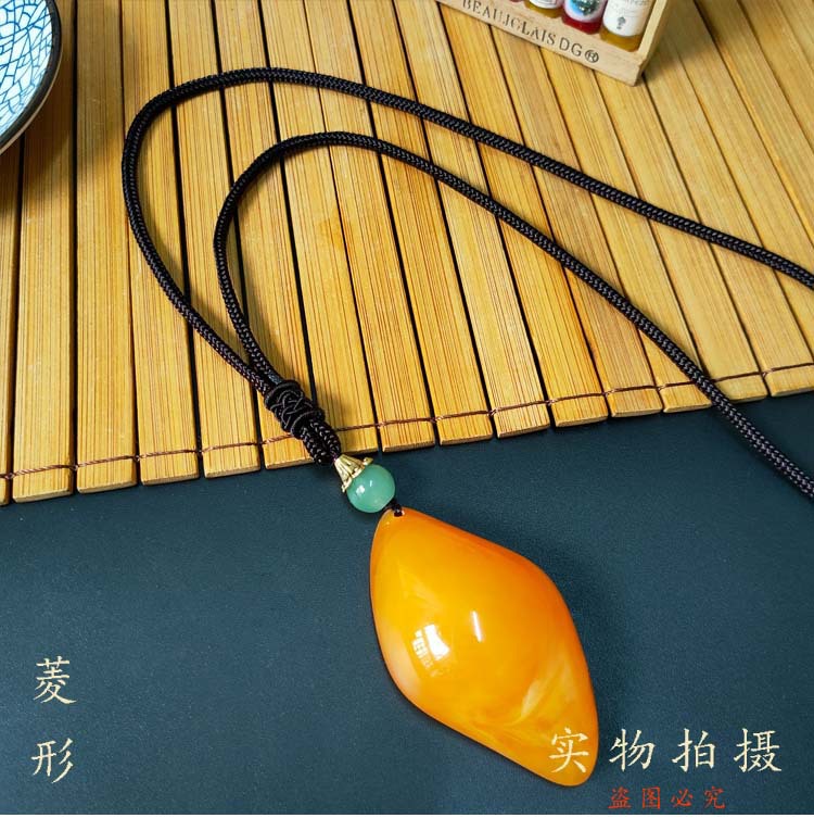 现货厂家直销新款民族仿蜜蜡水滴毛衣链棉麻服饰配饰长款项链女