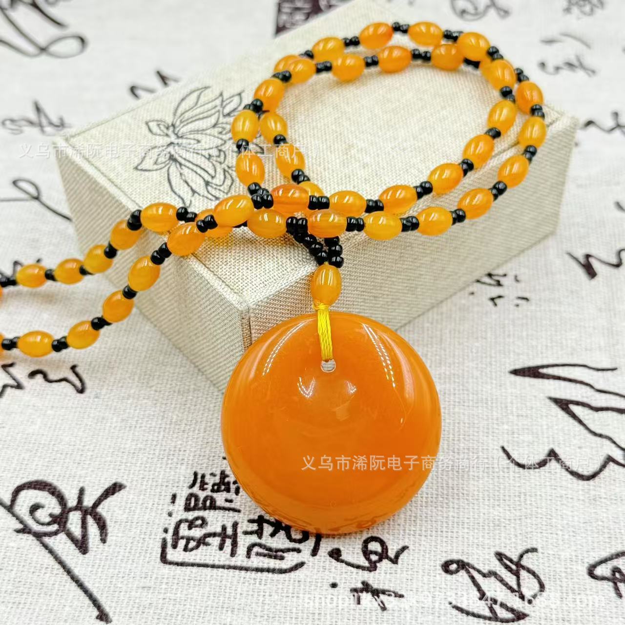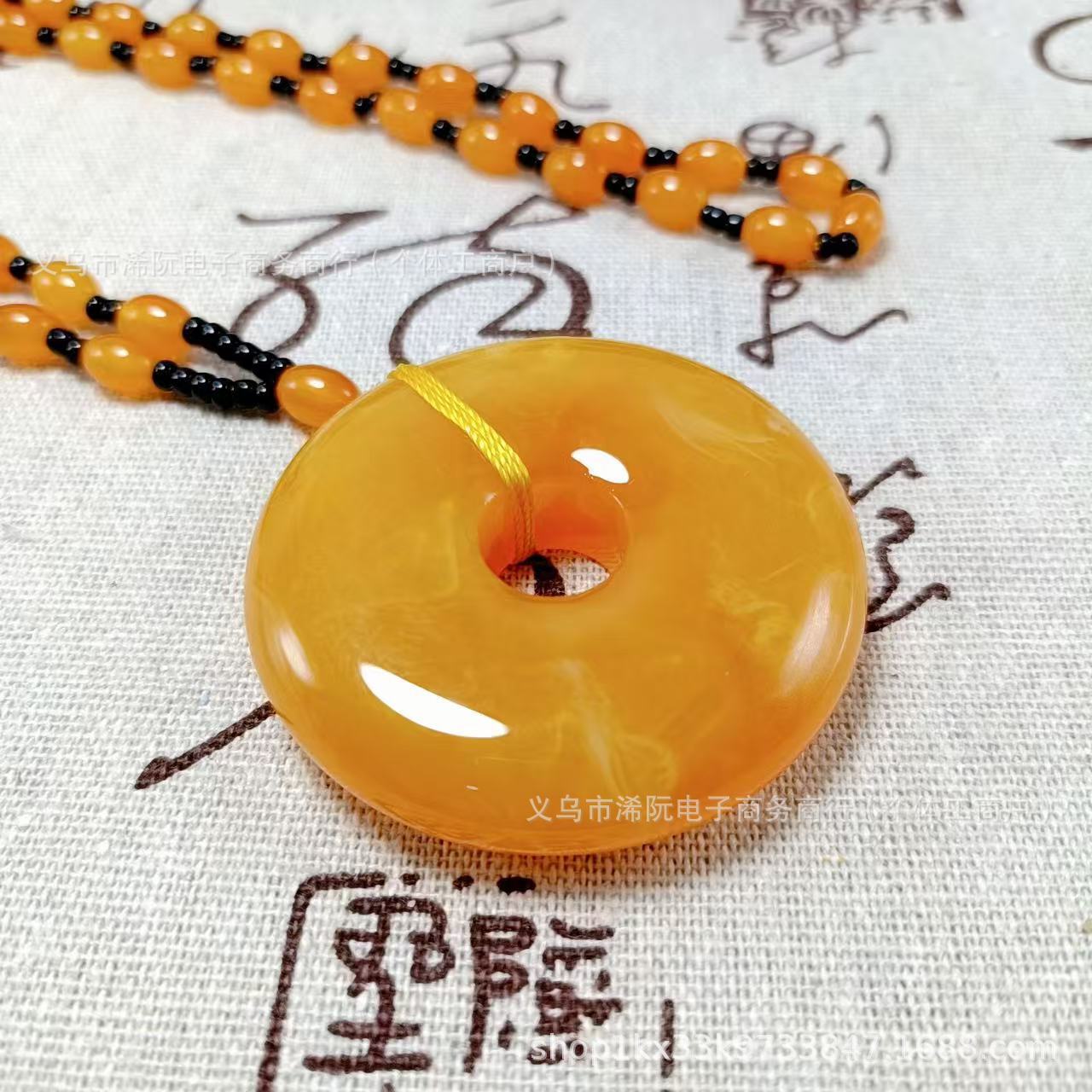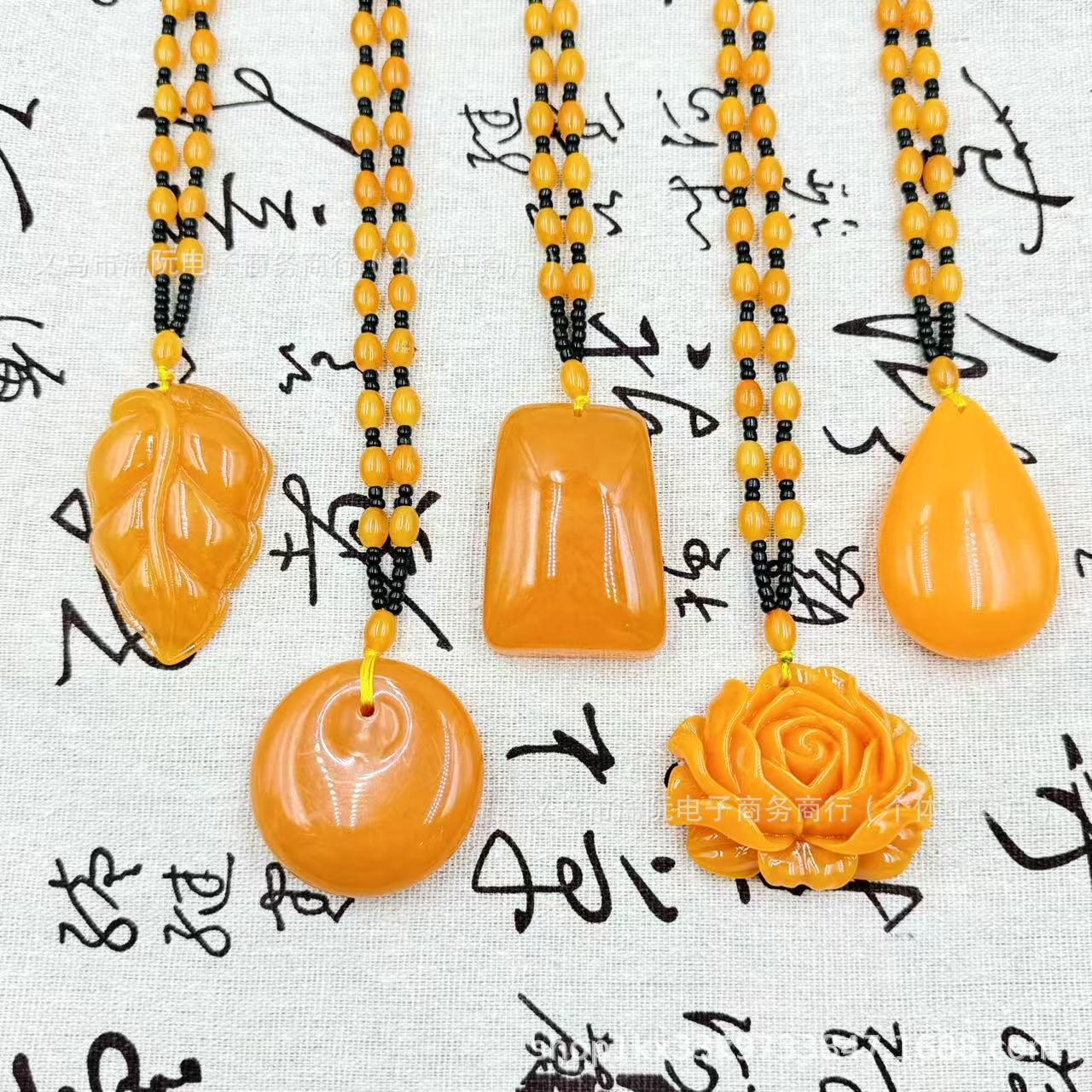 厂家直销仿蜜蜡吊坠蜜蜡水滴无事牌平安扣民族风款百搭毛衣链项链