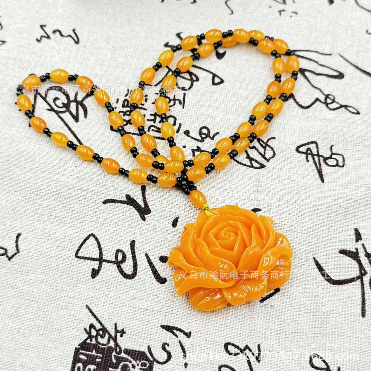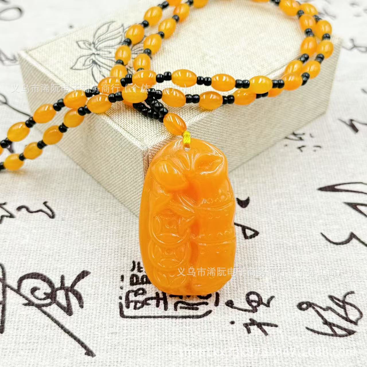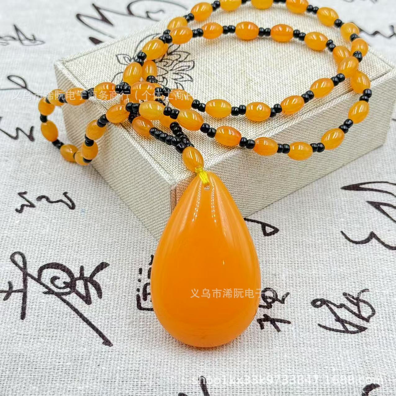 厂家直销仿蜜蜡吊坠蜜蜡水滴无事牌平安扣民族风款百搭毛衣链项链