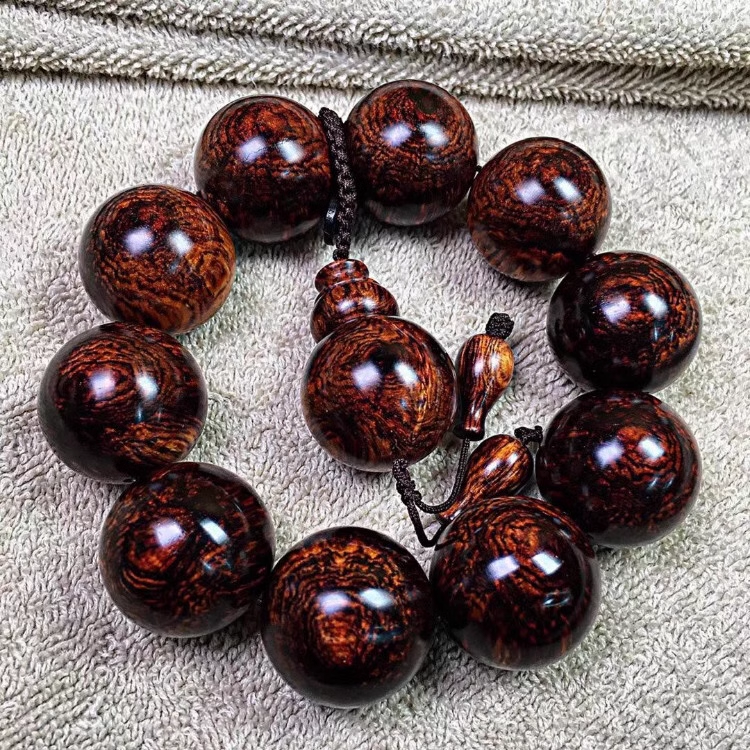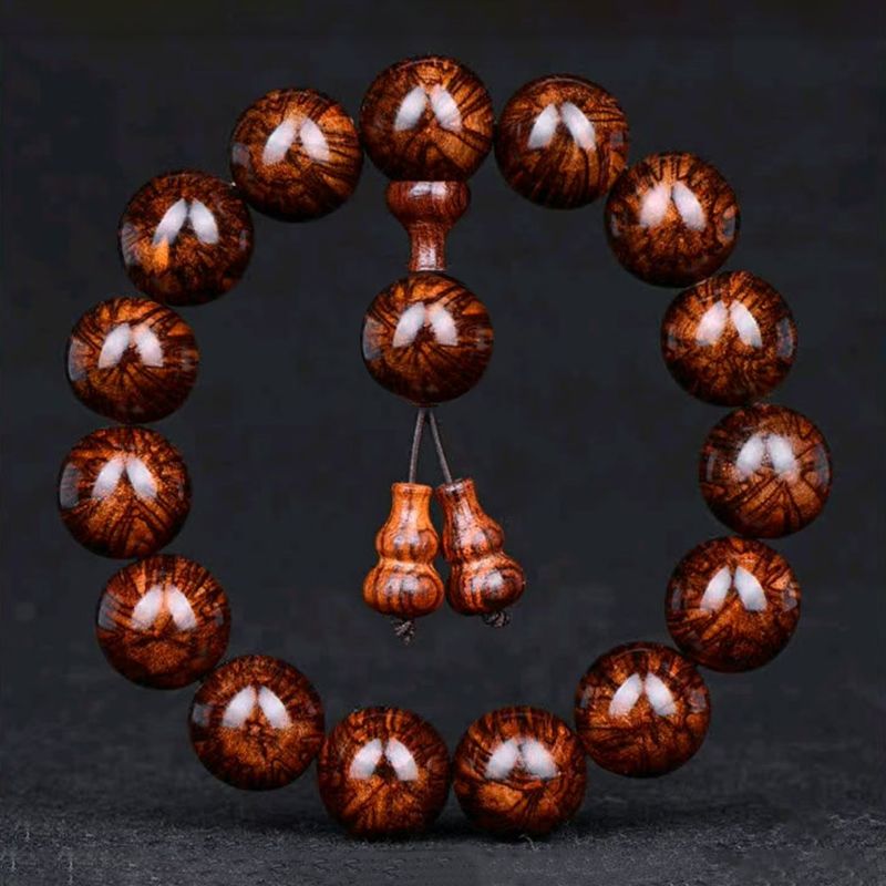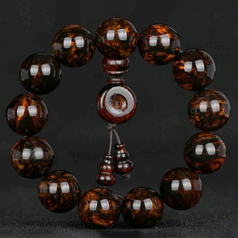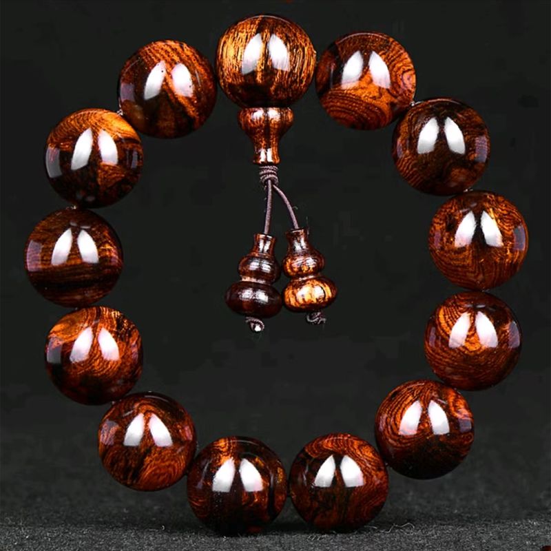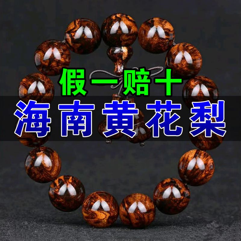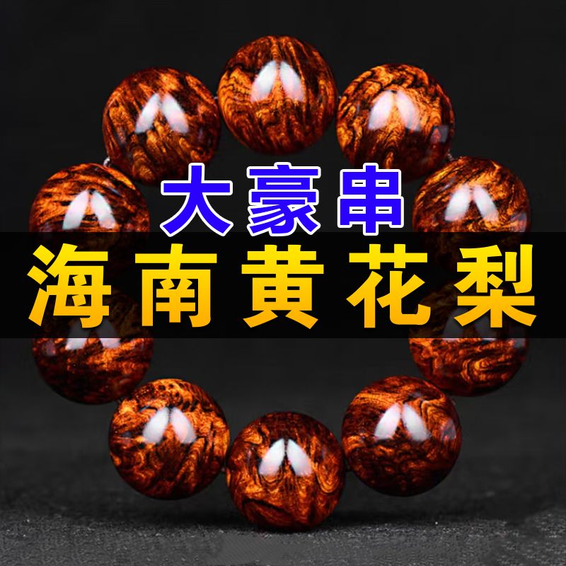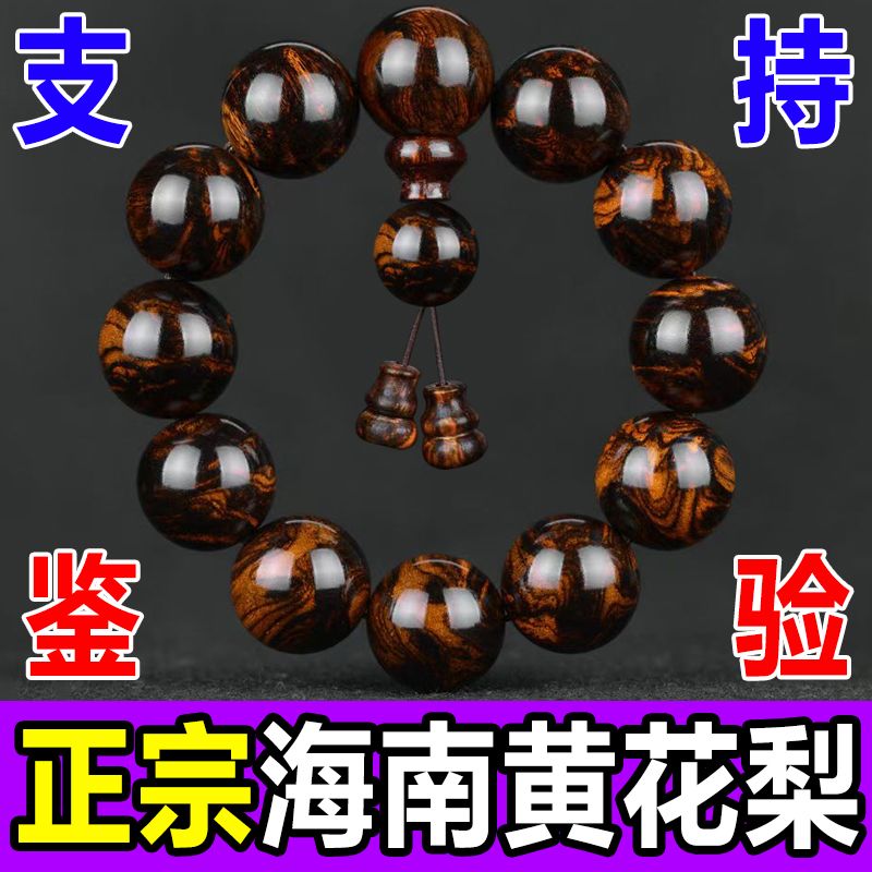 【国检质检】正宗海南黄花梨手串爆满瘤疤鬼眼对眼老料真品佛珠