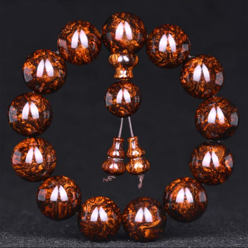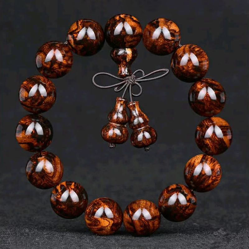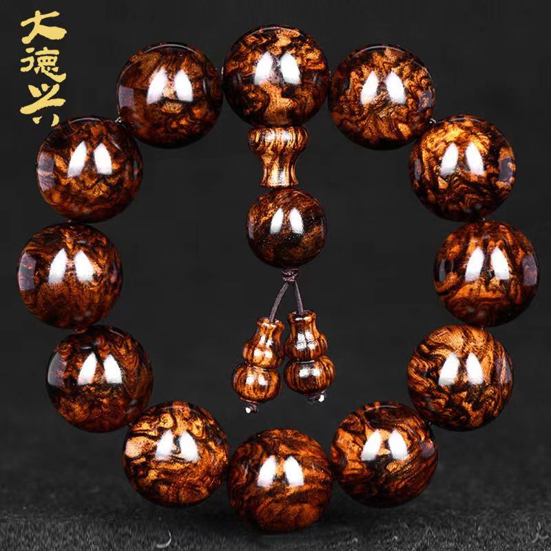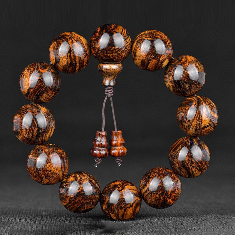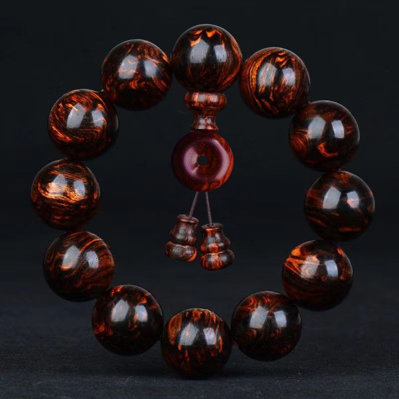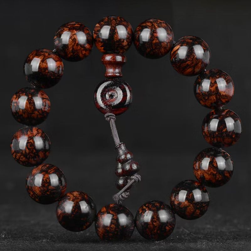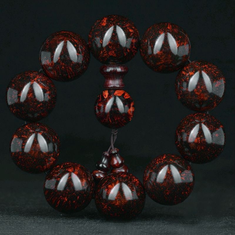 【国检质检】正宗海南黄花梨手串爆满瘤疤鬼眼对眼老料真品佛珠