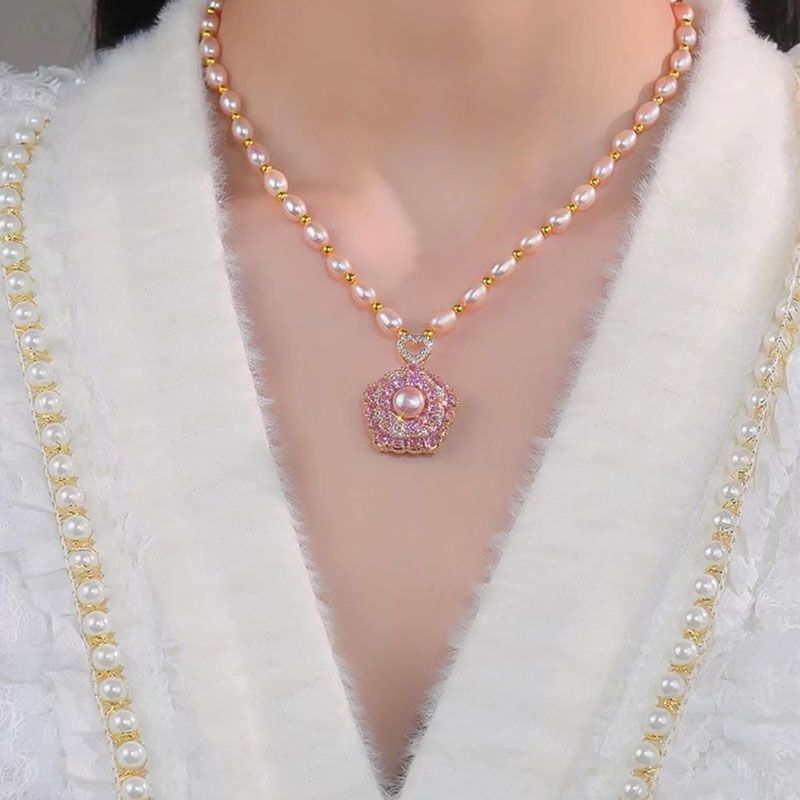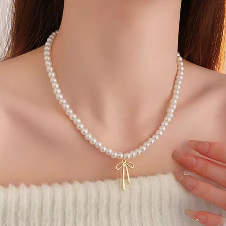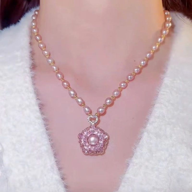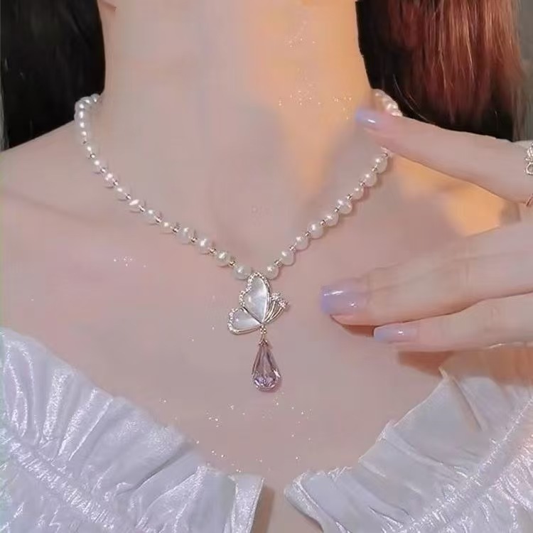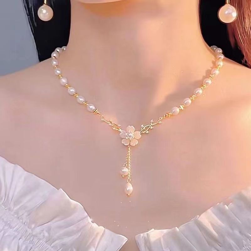 网红旋转珍珠项链女蝴蝶花步步生莲吊坠锁骨链山茶花毛衣链服饰挂