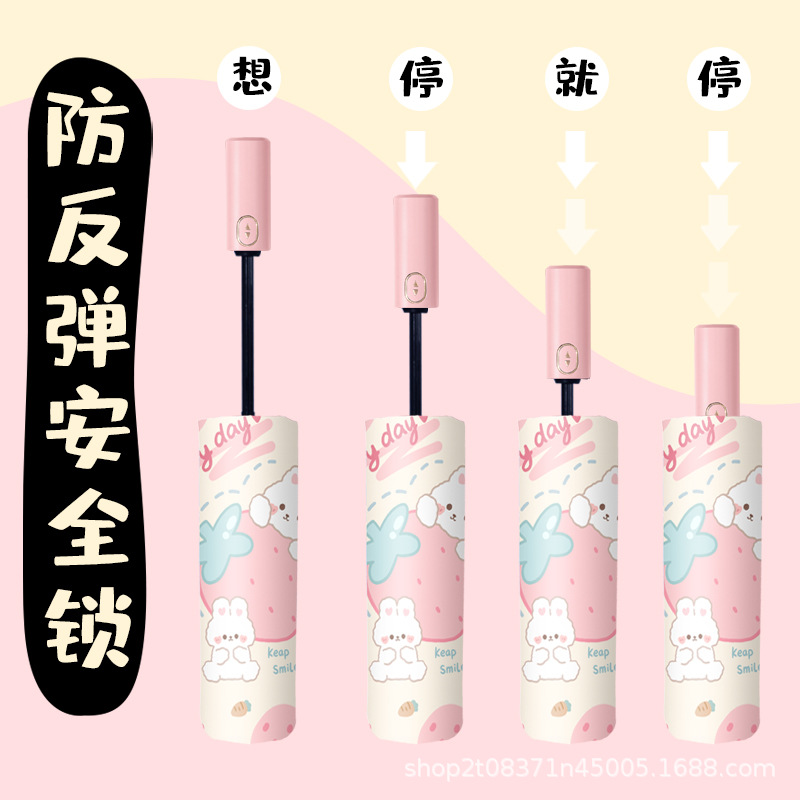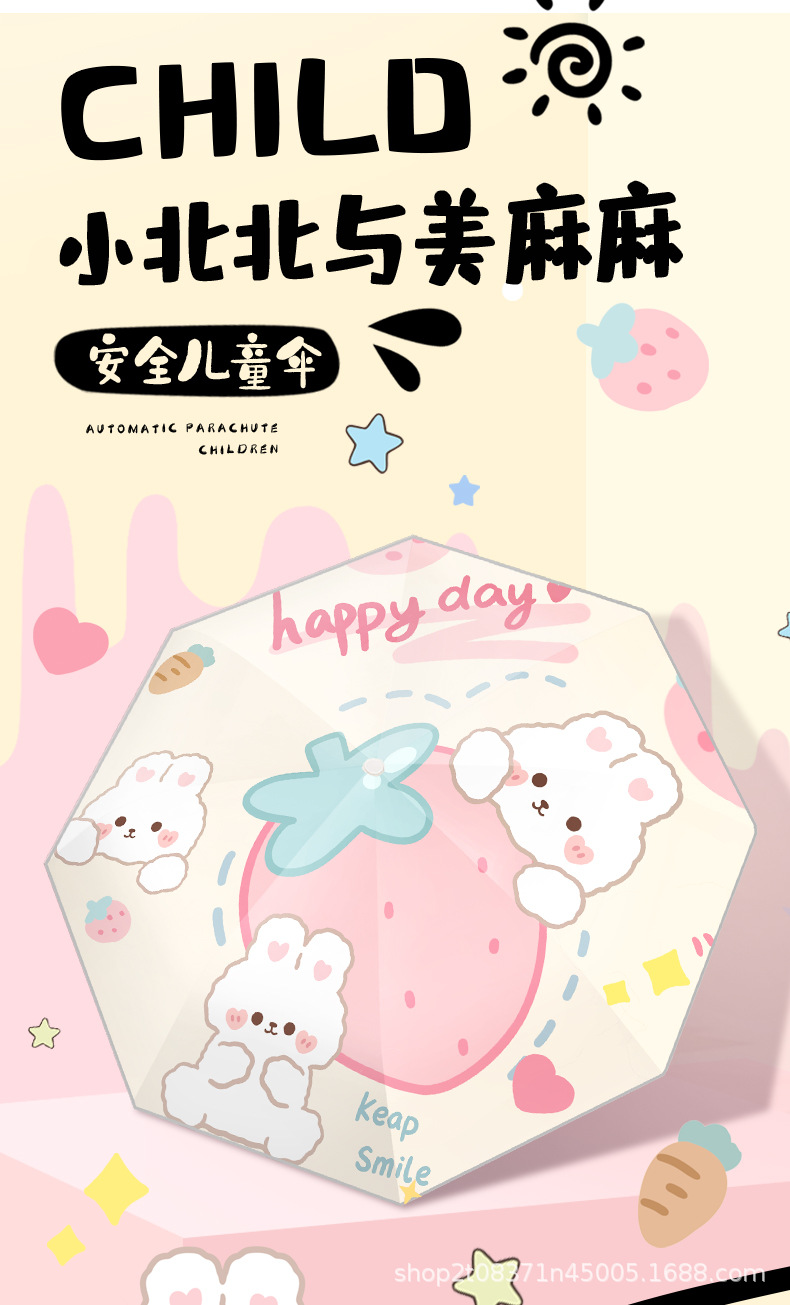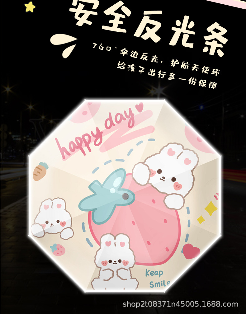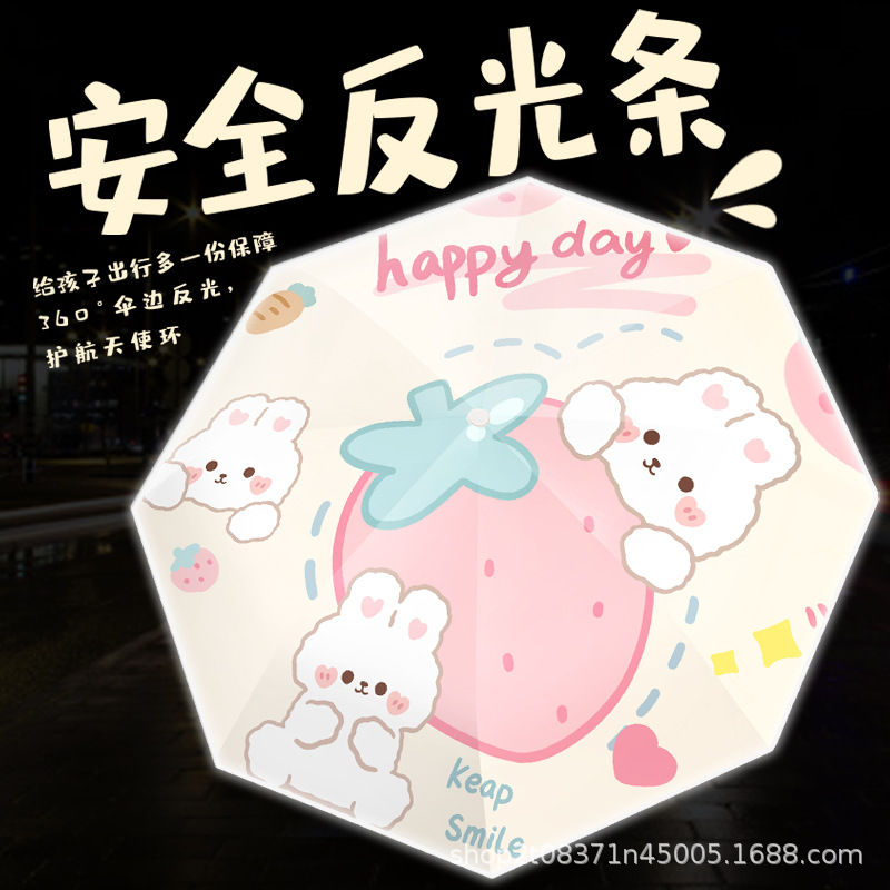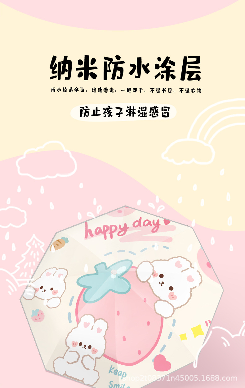 草莓兔安全防回弹儿童晴雨伞女小学生晴雨两用上学专用折叠自动伞