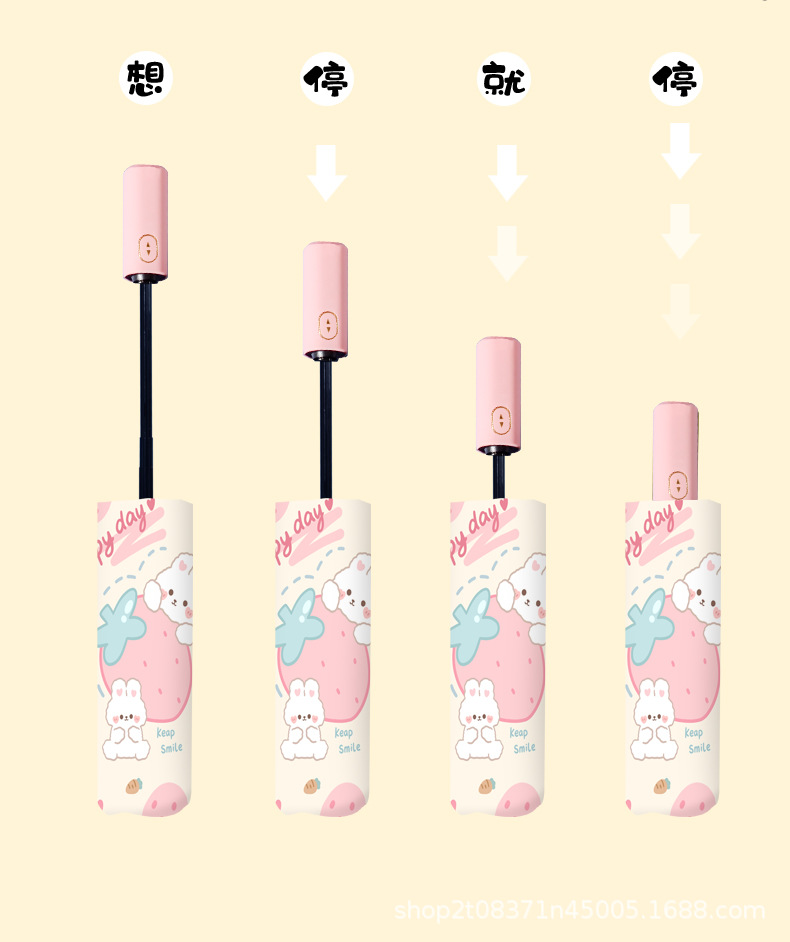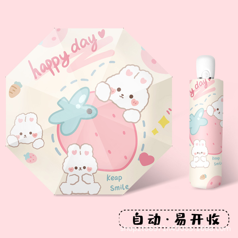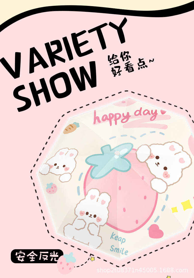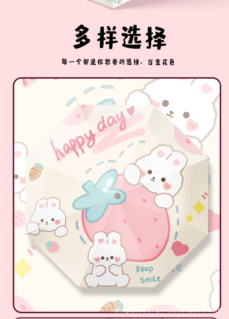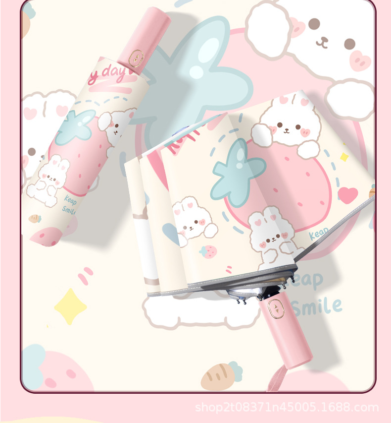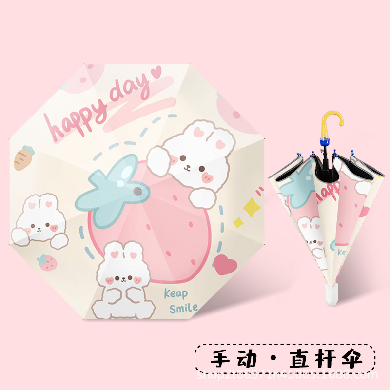 草莓兔安全防回弹儿童晴雨伞女小学生晴雨两用上学专用折叠自动伞