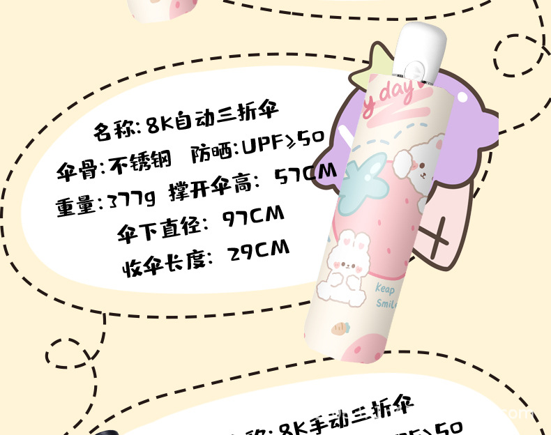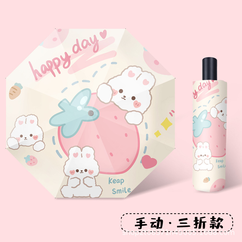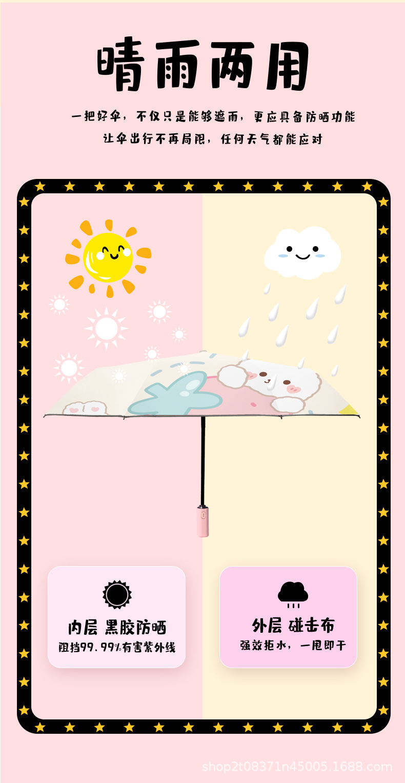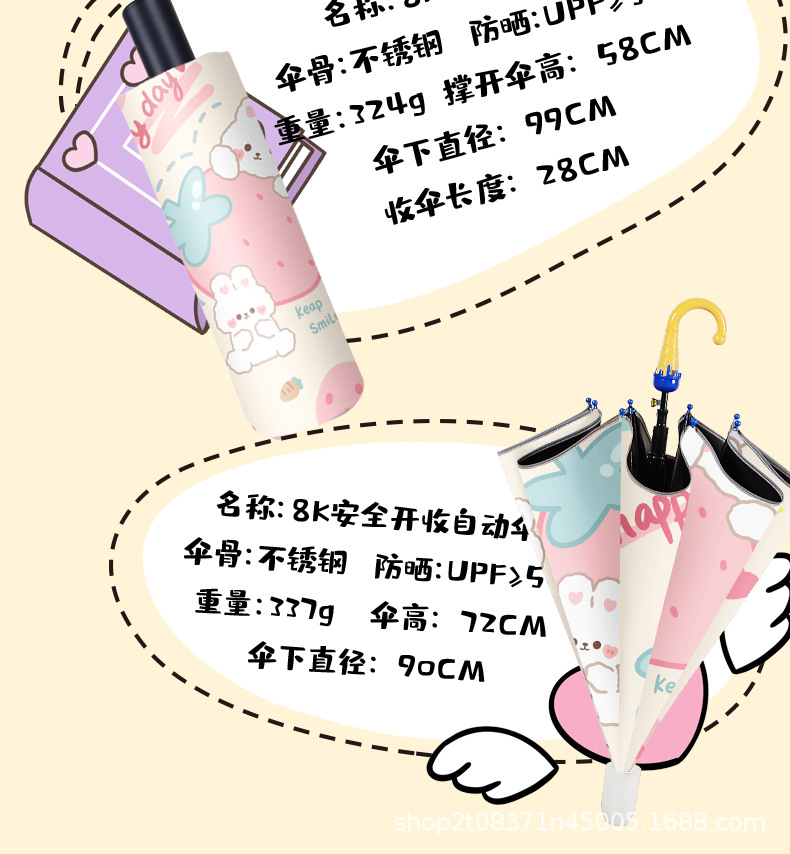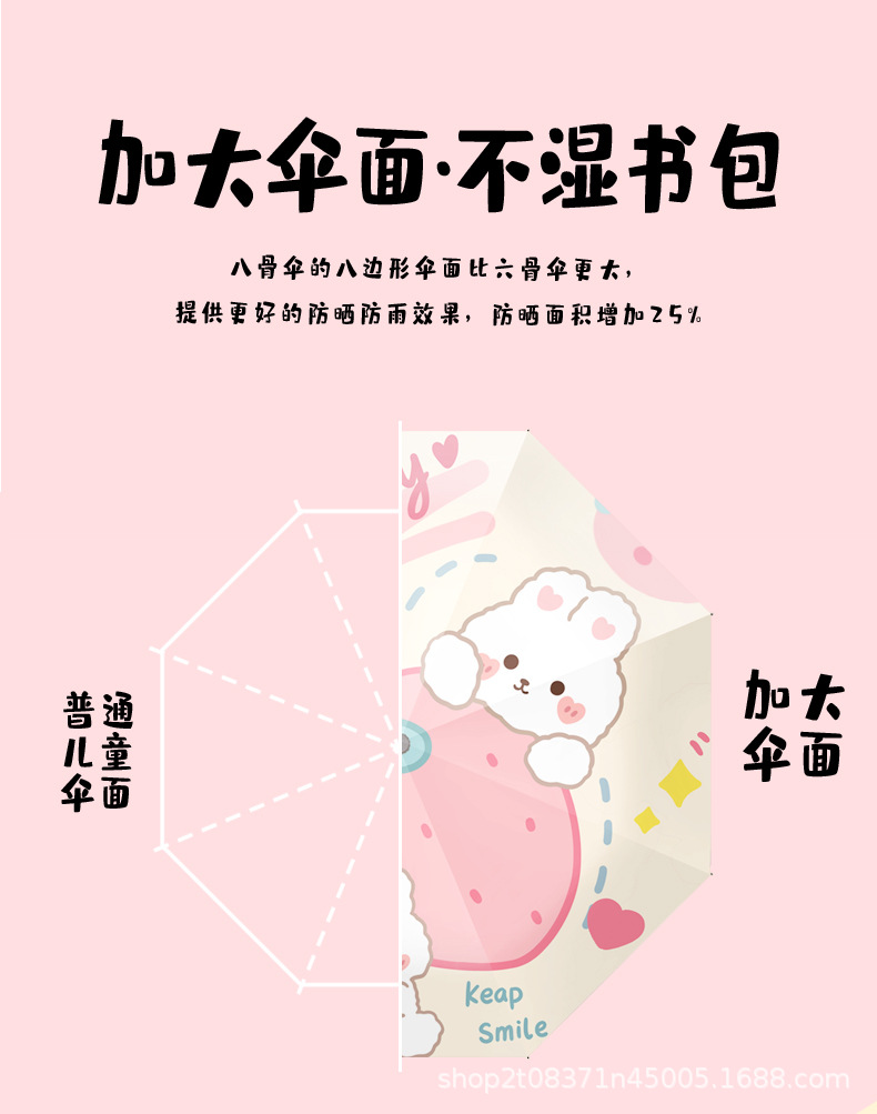 草莓兔安全防回弹儿童晴雨伞女小学生晴雨两用上学专用折叠自动伞