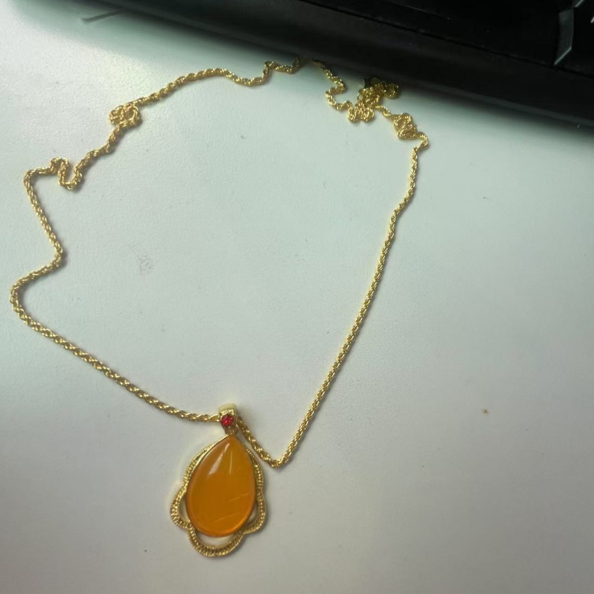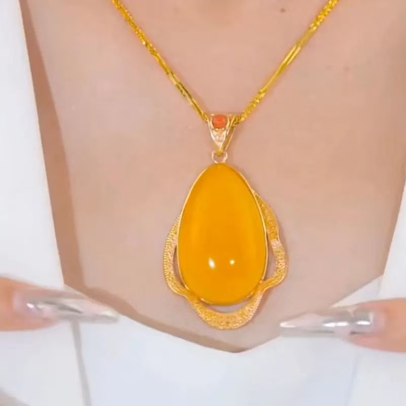 抖音爆款新中式防蜜蜡色海洋之心吊坠小众百搭时尚四季项链配饰