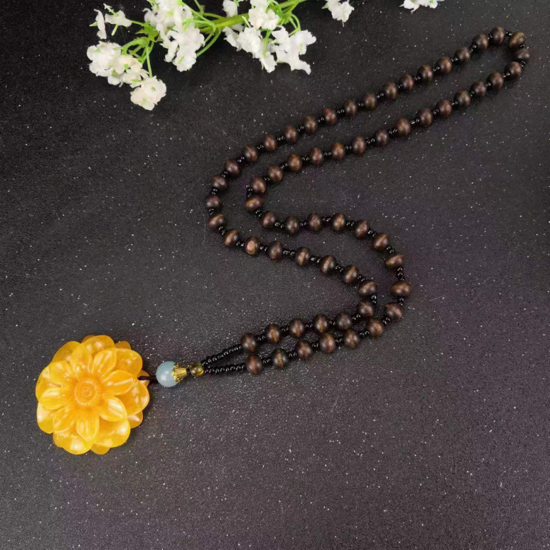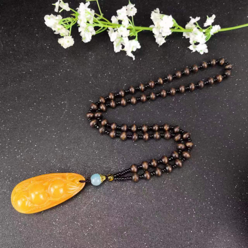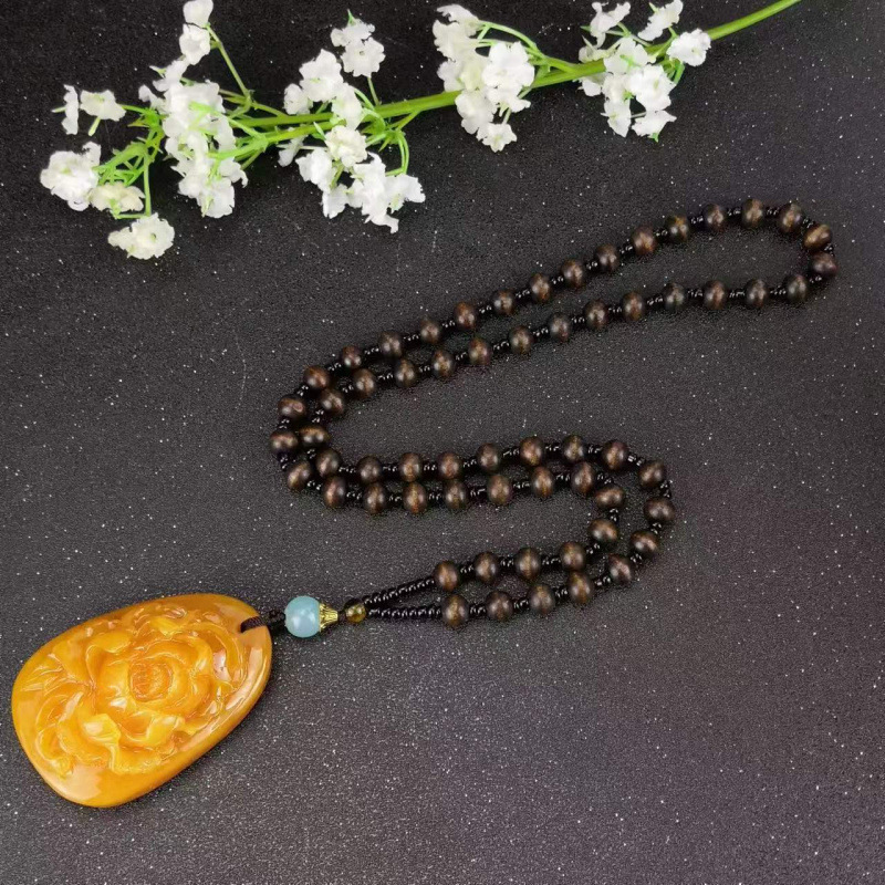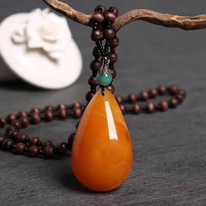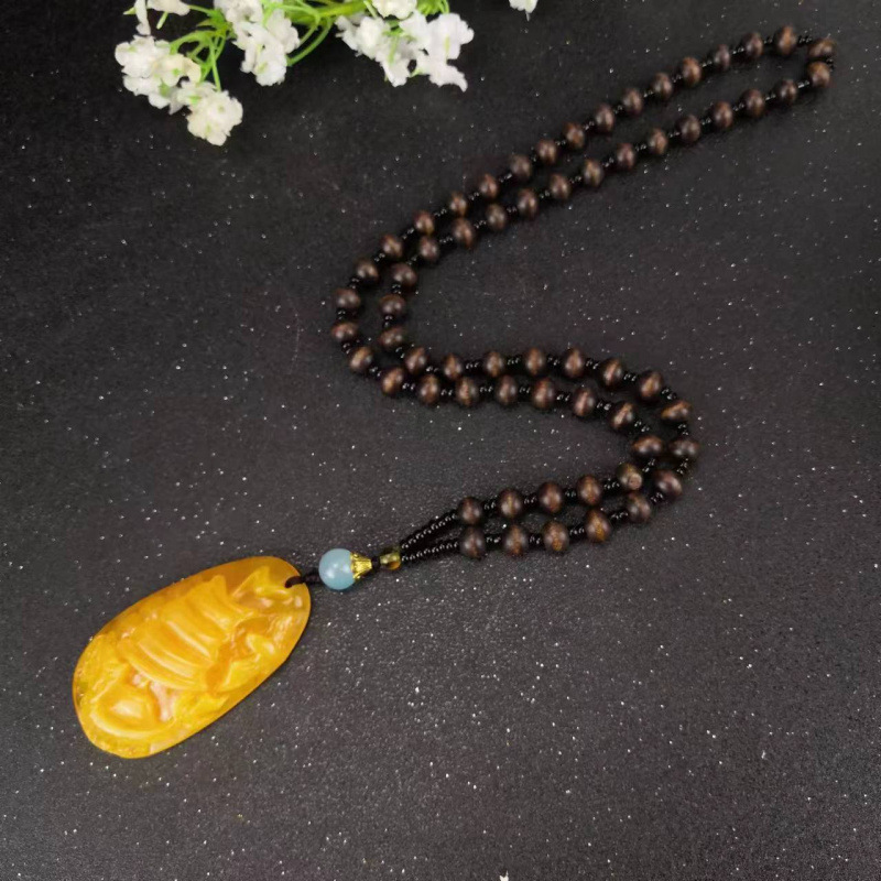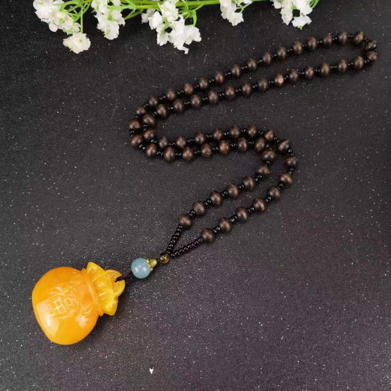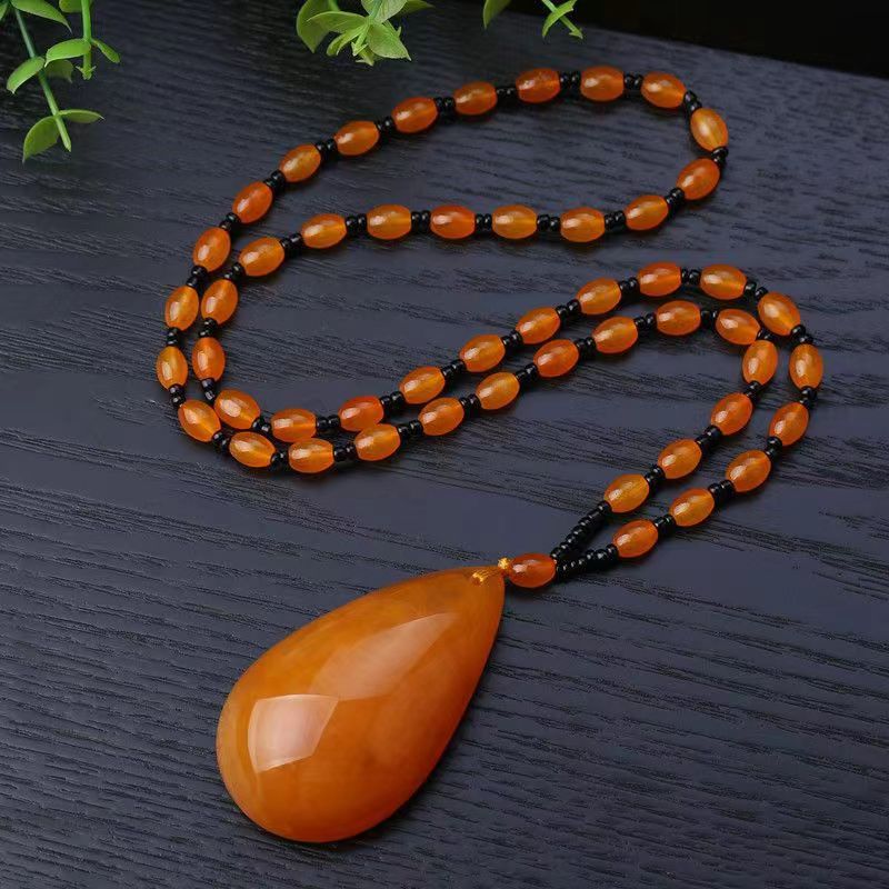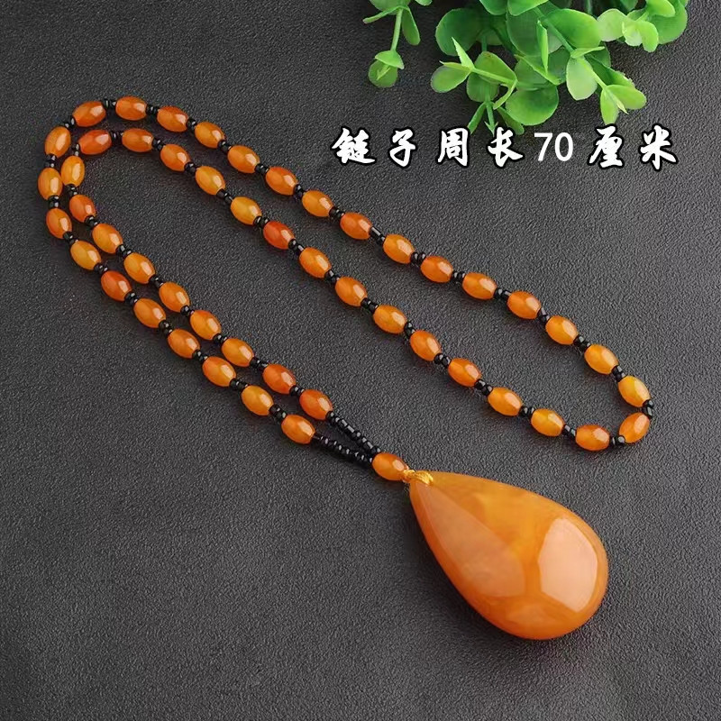 秋冬毛衣链复古长款休闲百搭仿蜜蜡民族风项链配饰女士衣服装饰品