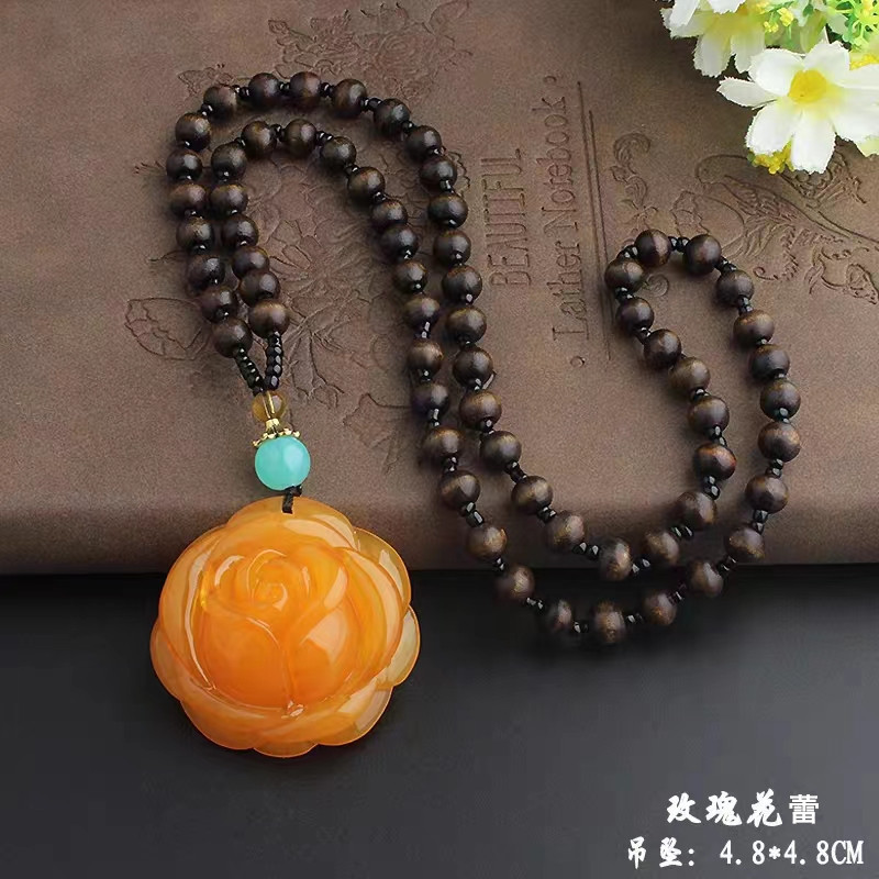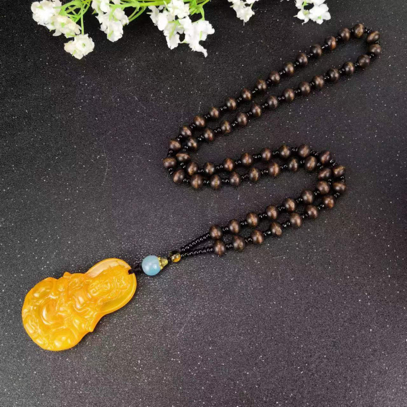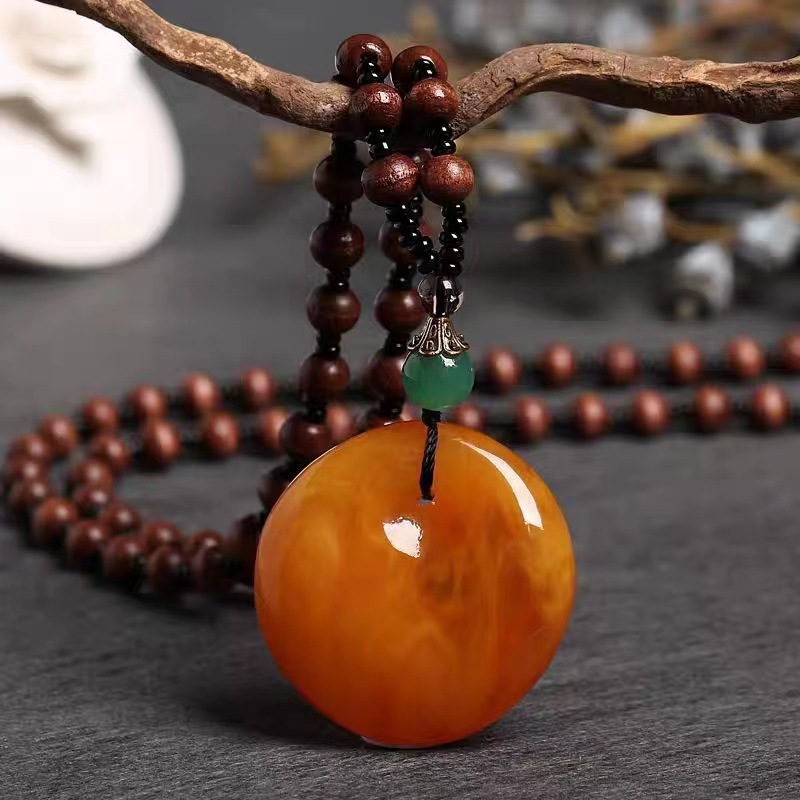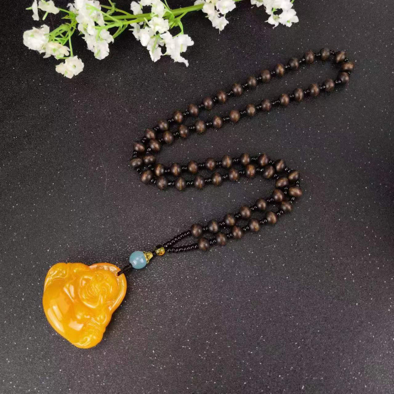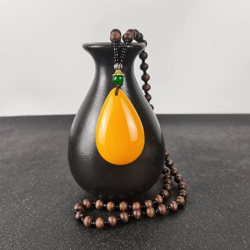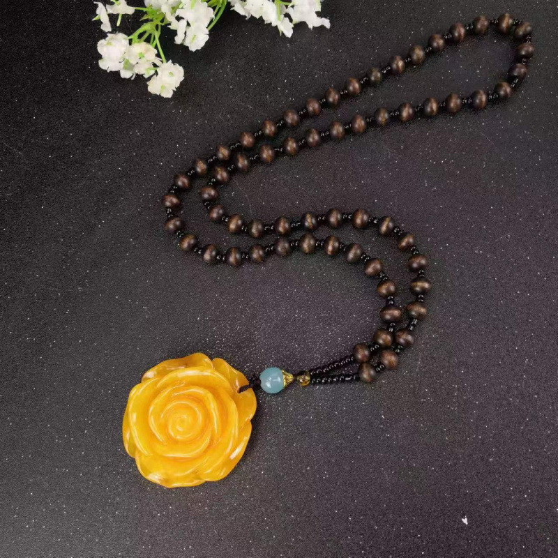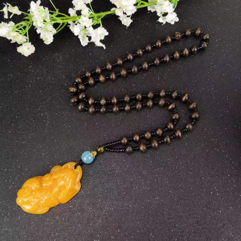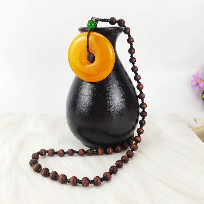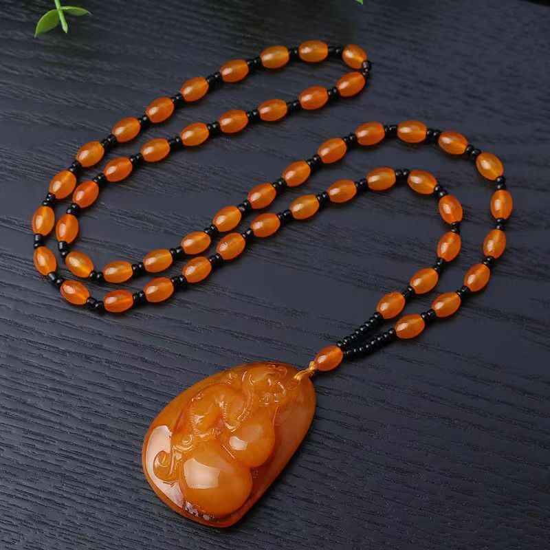 秋冬毛衣链复古长款休闲百搭仿蜜蜡民族风项链配饰女士衣服装饰品