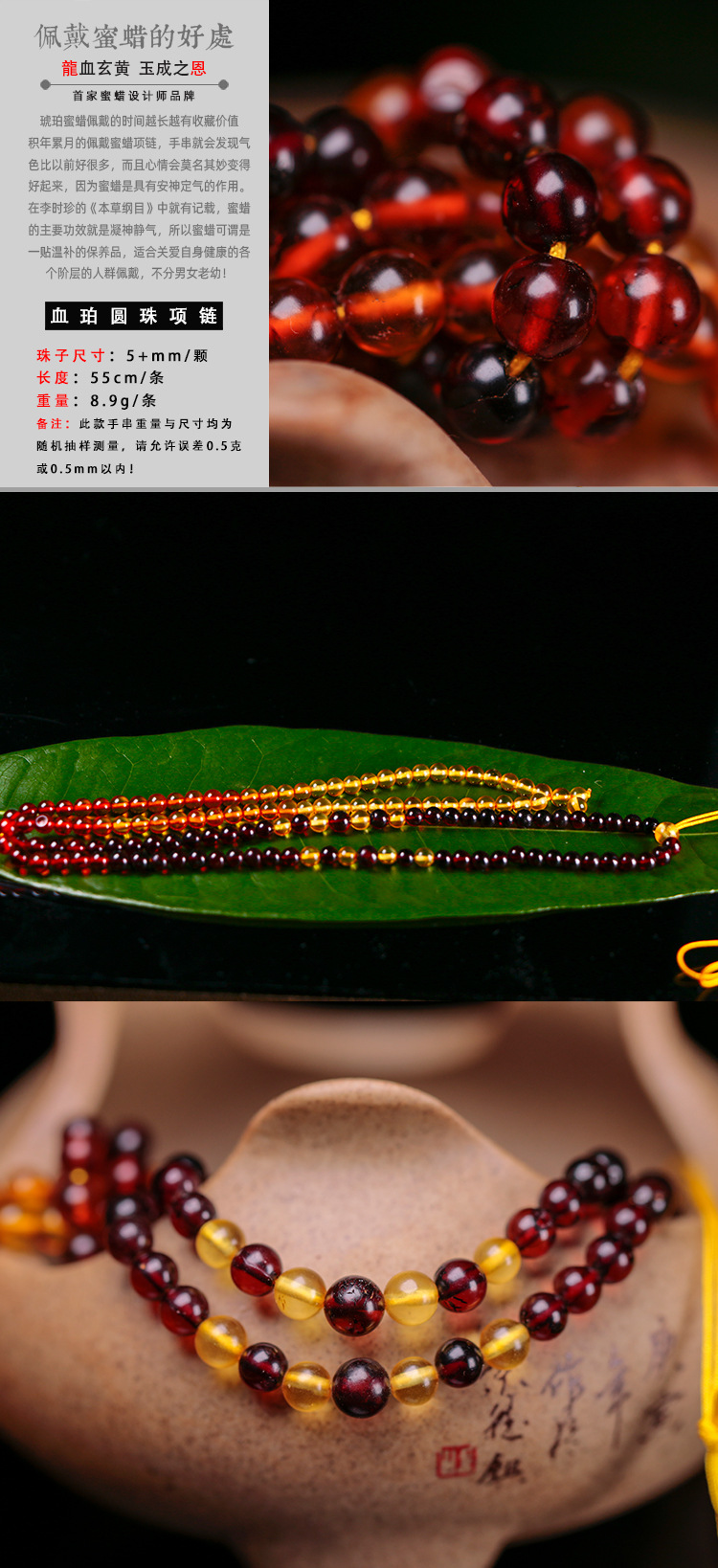 爆款批发蜜蜡血珀金珀圆珠项链高级感配链首饰天然真货跨境专供